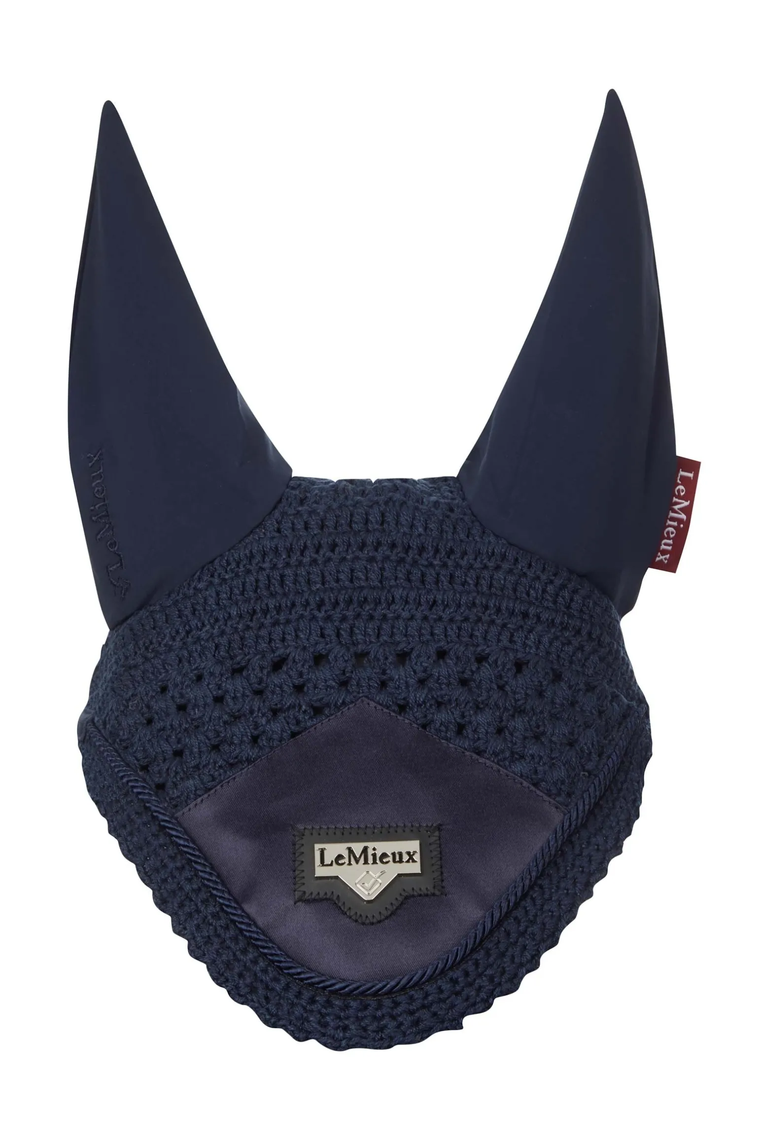 Wunderschön gearbeitet, aus dreifach gestrickter Häkelarbeit mit luxuriösem Satin vorn und Ohren aus Softstretch-Lycra.
