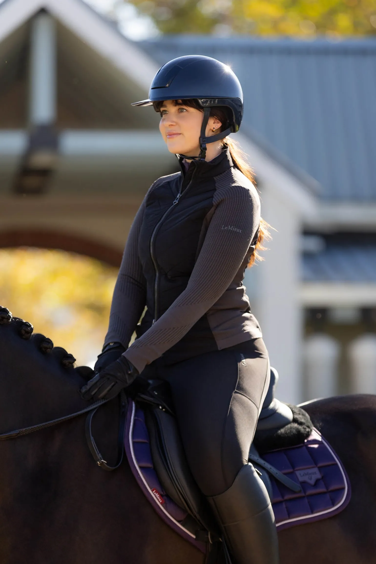 Ein Zwei-Wege-Reißverschluss mit auffälligem Metallschieber bietet vielseitige Styling-Optionen und das dezente LeMieux Logo für jede Menge Stil.