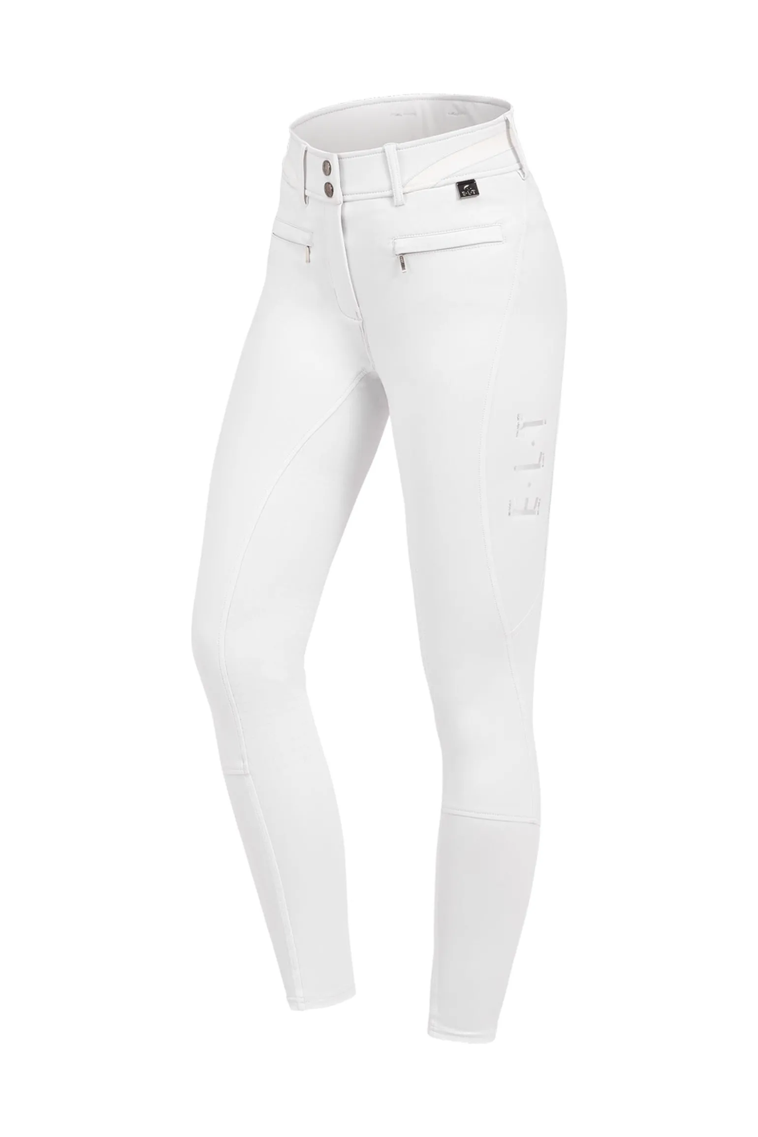 Diese Reithose verfügt über einen Silikon-Vollbesatz mit unterschiedlichen Grip-Zonen für optimale Stabilität und Komfort. Das Logo-Silikonprint ist im Besatz integriert, während das gebondete Material hoch elastisch, formstabil, atmungsaktiv und weich auf der Innenseite ist. Der bi-elastische Stoff sorgt für eine figurformende Passform mit einem Kompressionseffekt. Weitere Merkmale sind dekorative Paspeltaschen auf der Rückseite, eine Handy-Einschubtasche, nahtverdeckte Reißverschlusstaschen auf der Vorderseite sowie hochwertige E·L·T-Metall-Details, einschließlich des dekorativen E·L·T-Schriftzugs am linken Oberschenkel.