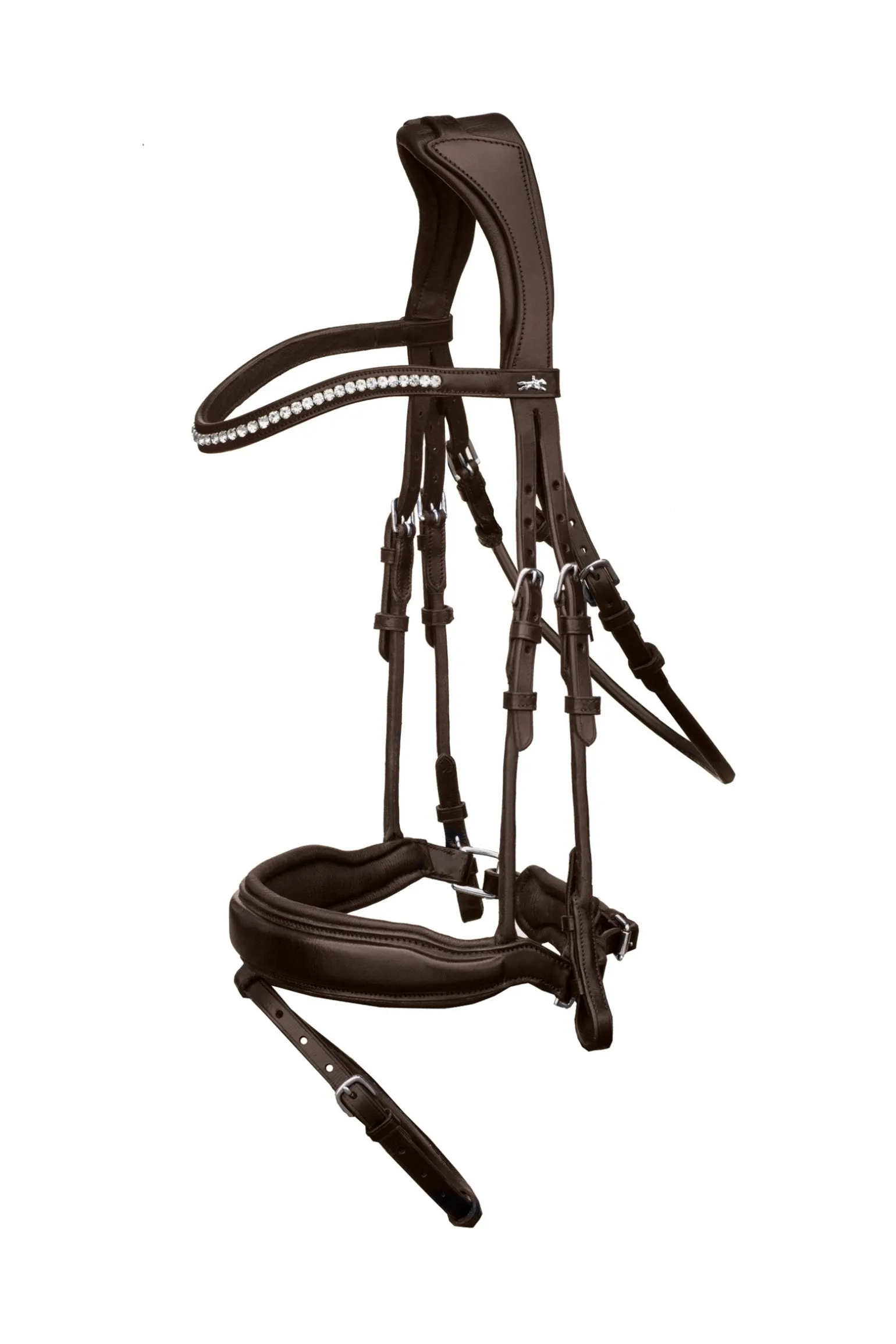 MALIBU ist eine edle halb- rundgenähte Dressur-Trense mit einem anatomisch geformten Spezial-Reithalfter, sowie einzigartigem Genickstück, das speziell an die Anatomie des Pferdes angepasst ist. Der Druck wird in den empfindlichen Zonen wie Jochbein und Genick deutlich gemindert, während gleichzeitig ein uneingeschränktes Ohrenspiel ermöglicht wird. Der Komfort für das Pferd wird dadurch erheblich maximiert.