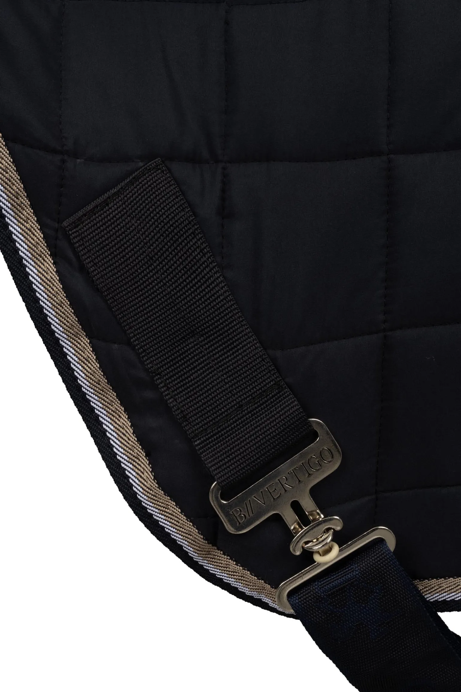 Hülle dein Pferd in unsere hochwertige B Vertigo Mason Führanlagendecke. Der weiche Kunstfellkragen und die elegante Steppung sorgen für einen stylischen Look und sind außerdem super bequem. Die Decke kann sicher mit Frontverschlüssen und Kreuzbegurtung befestigt werden. Eine kleine Stickerei an der Hinterseite bringt dieser Decke einen Hauch Glamour.