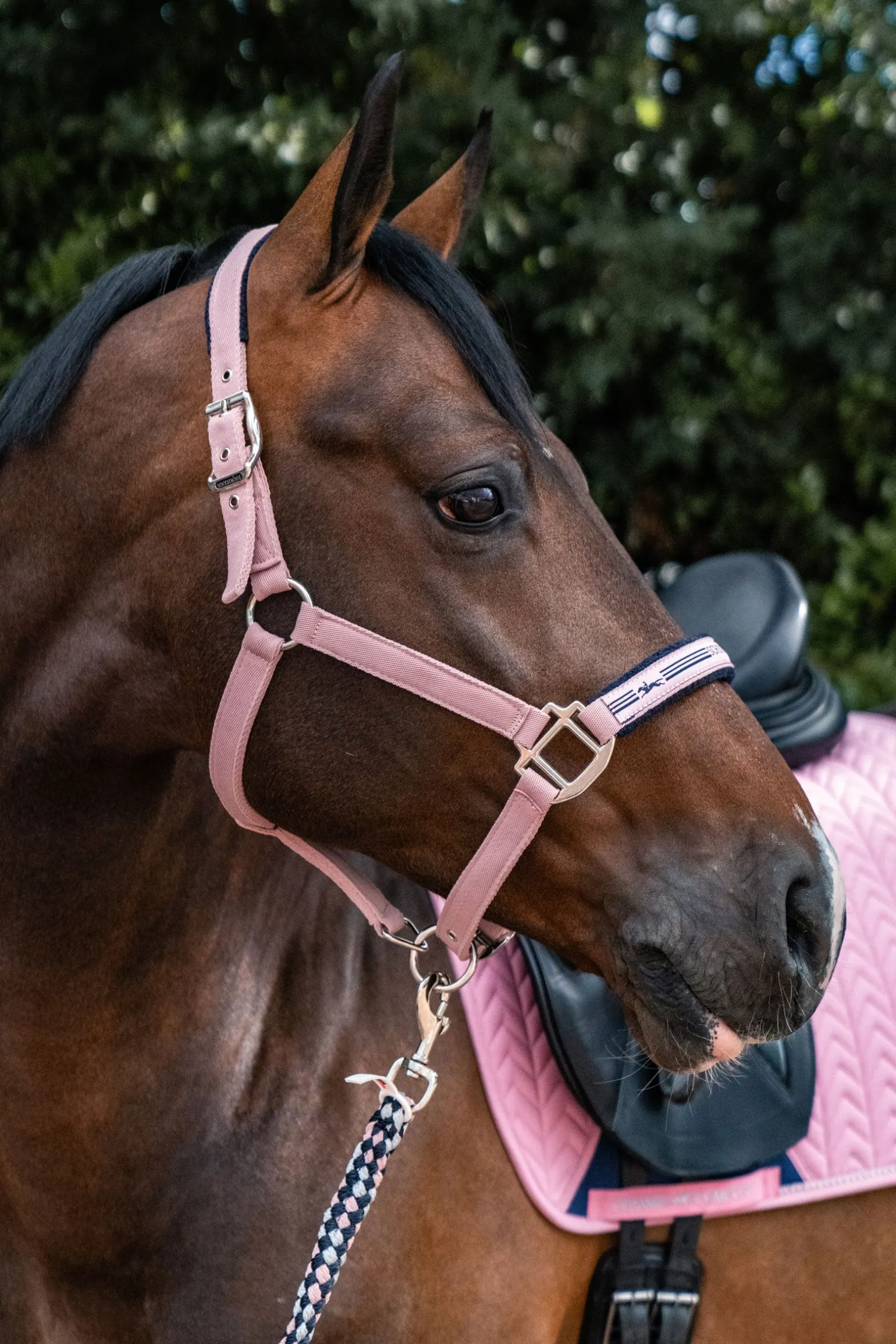 Das Memphis II Halfter verbindet Funktionalität und Stil für moderne Pferdebesitzer. Dieses sportliche Halfter besteht aus Softnylon und sorgt für Langlebigkeit und Komfort. Das Kopfstück und der Nasenriemen sind mit weichem Fleece unterfüttert, um zusätzlichen Komfort zu bieten und Scheuerstellen zu vermeiden. Mit einem Logo-Weblabel auf dem Nasenband und einem gummierten Logo-Label auf dem Backenstück zeigt dieses Halfter seine Qualität und sein ansprechendes Design.