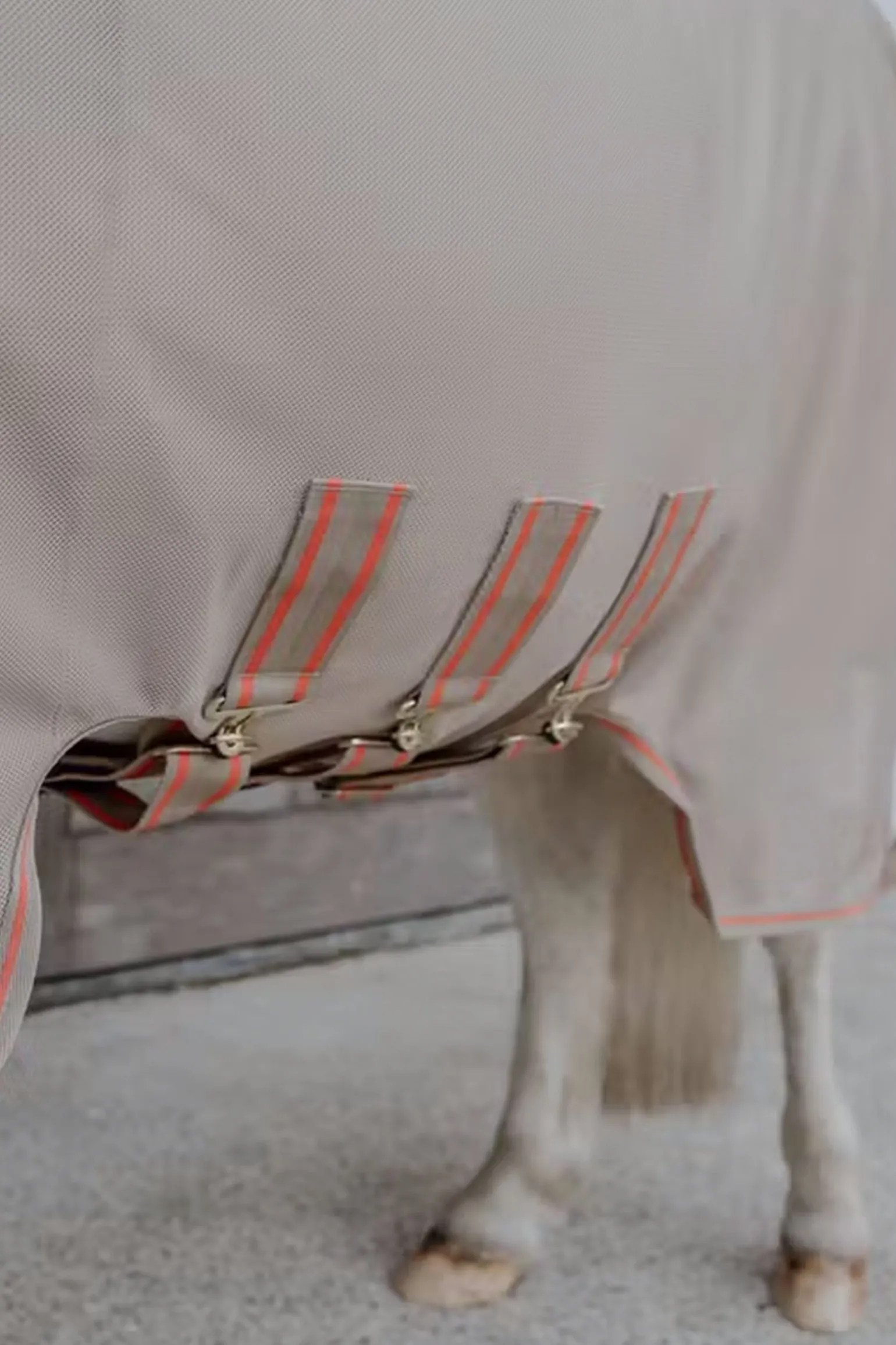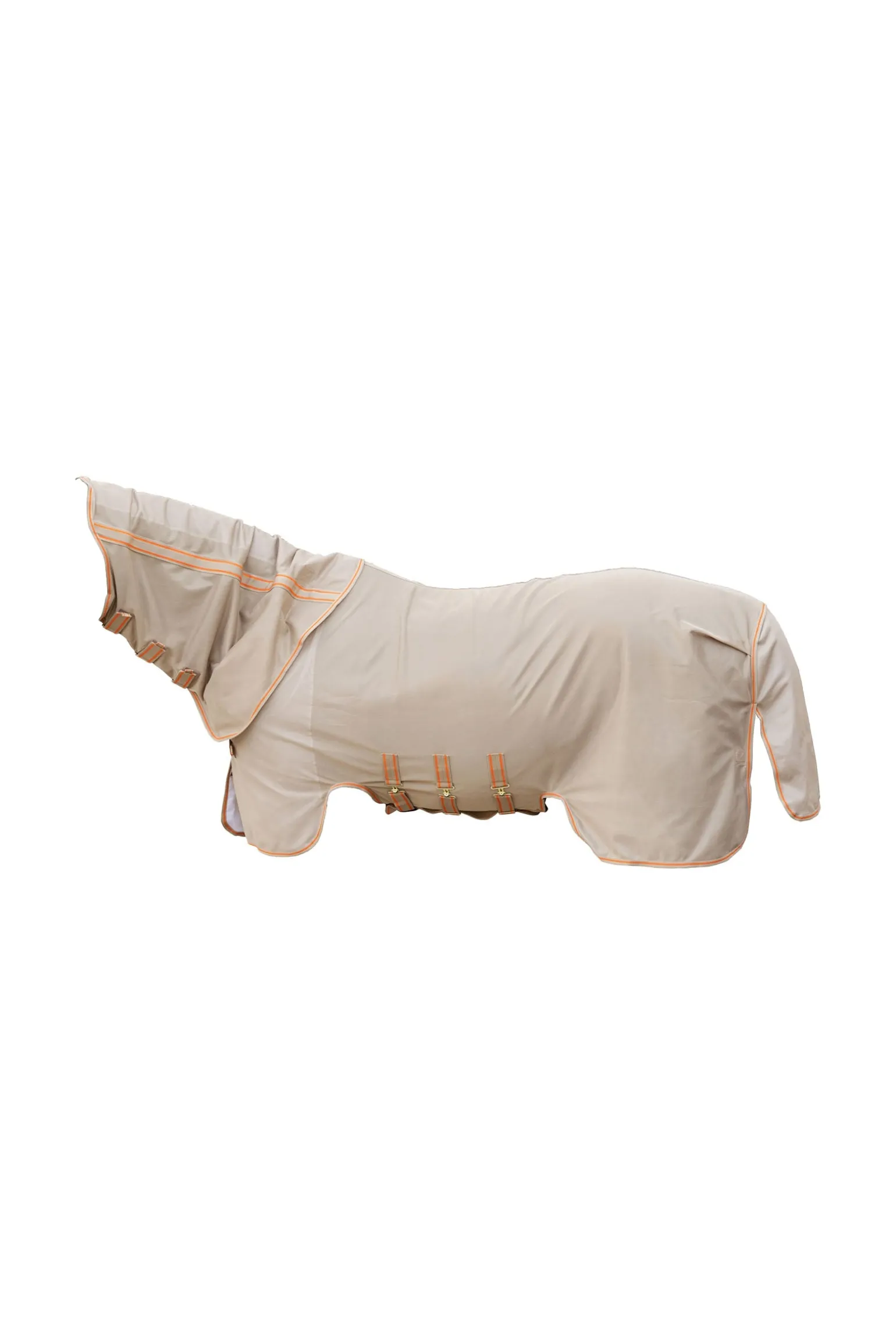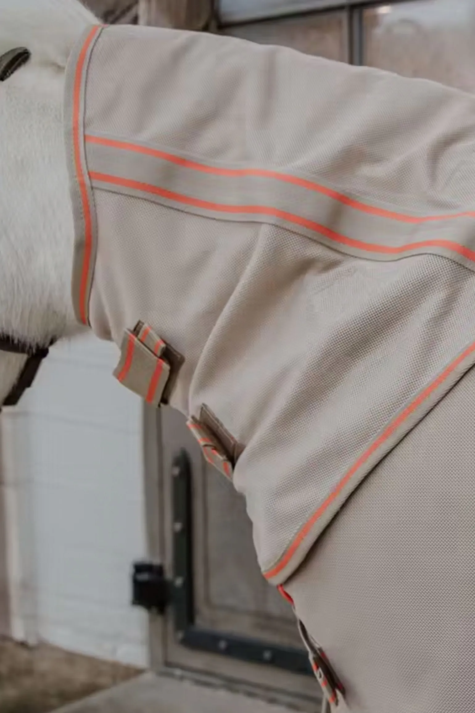 Die Fliegendecke Comfort bietet höchsten Schutz vor Insekten und ist daher ideal für Pferde mit sehr empfindlicher Haut. Der Comfort-Verschluss sorgt dafür, dass kein Druck entsteht, was die Decke beim Grasen besonders angenehm macht. Für zusätzlichen Komfort und Schutz ist ein abnehmbares Halsstück enthalten. Die Decke besteht aus einem dicht gewebten Mesh-Stoff, der die meisten Insekten abhält. Das Mesh ist extrem strapazierfähig und wird dein Pferd über viele Sommer begleiten. Die Innenseite ist glatt und weich, sodass keine Haare an der Decke kleben bleiben. Durch die helle Farbe reflektiert die Decke die Sonnenstrahlen und nimmt keine Wärme auf. Das feine
