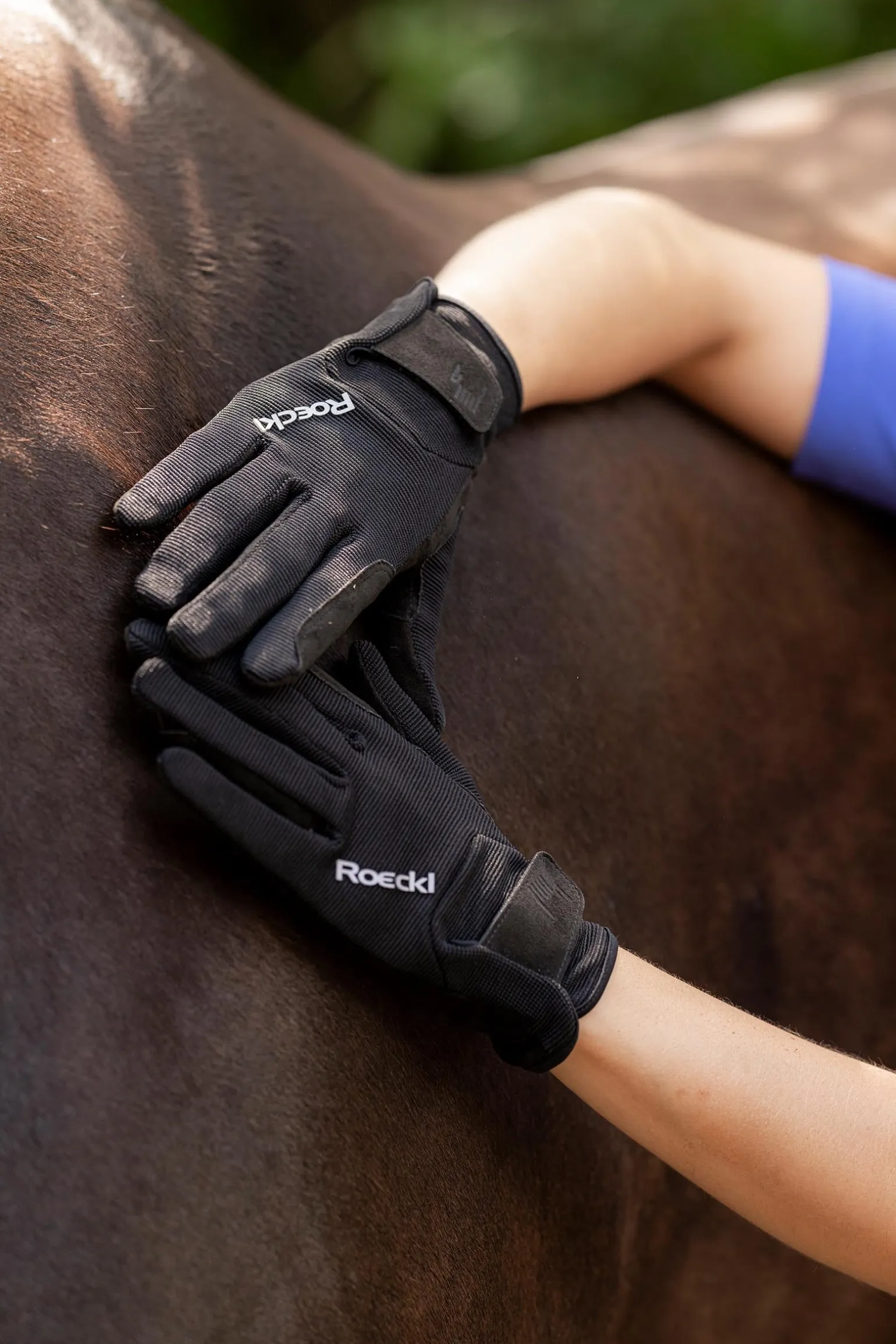 MEURA ist ein echter Allrounder für alles rund ums Pferd. Der extrem elastische Two-Way-Spandex auf dem Handrücken sorgt für maximale Flexibilität und uneingeschränkte Bewegungsfreiheit der Hände und Finger – sowohl im Sattel als auch bei der Stallarbeit. Ein sicherer und zuverlässiger Griff an den Zügeln für eine präzise und feinfühlige Kommunikation mit dem Pferd wird durch die vollständig aus ECO.SENSE® gefertigte Handfläche gewährleistet. Dieses weiche, taktile und dennoch äußerst strapazierfähige Synthetikmaterial sieht aus und fühlt sich an wie echtes Wildleder, besteht jedoch aus einer Materialmischung mit einem hohen Anteil an recycelten Fasern. Die speziellen COMFORT-CUT-Nähte am Zeigefinger perfektionieren den ohnehin hohen Tragekomfort des MEURA, ganz ohne zusätzliche Verstärkungen. Dieses Modell ist besonders für den Einsatz mit Gummizügeln geeignet.