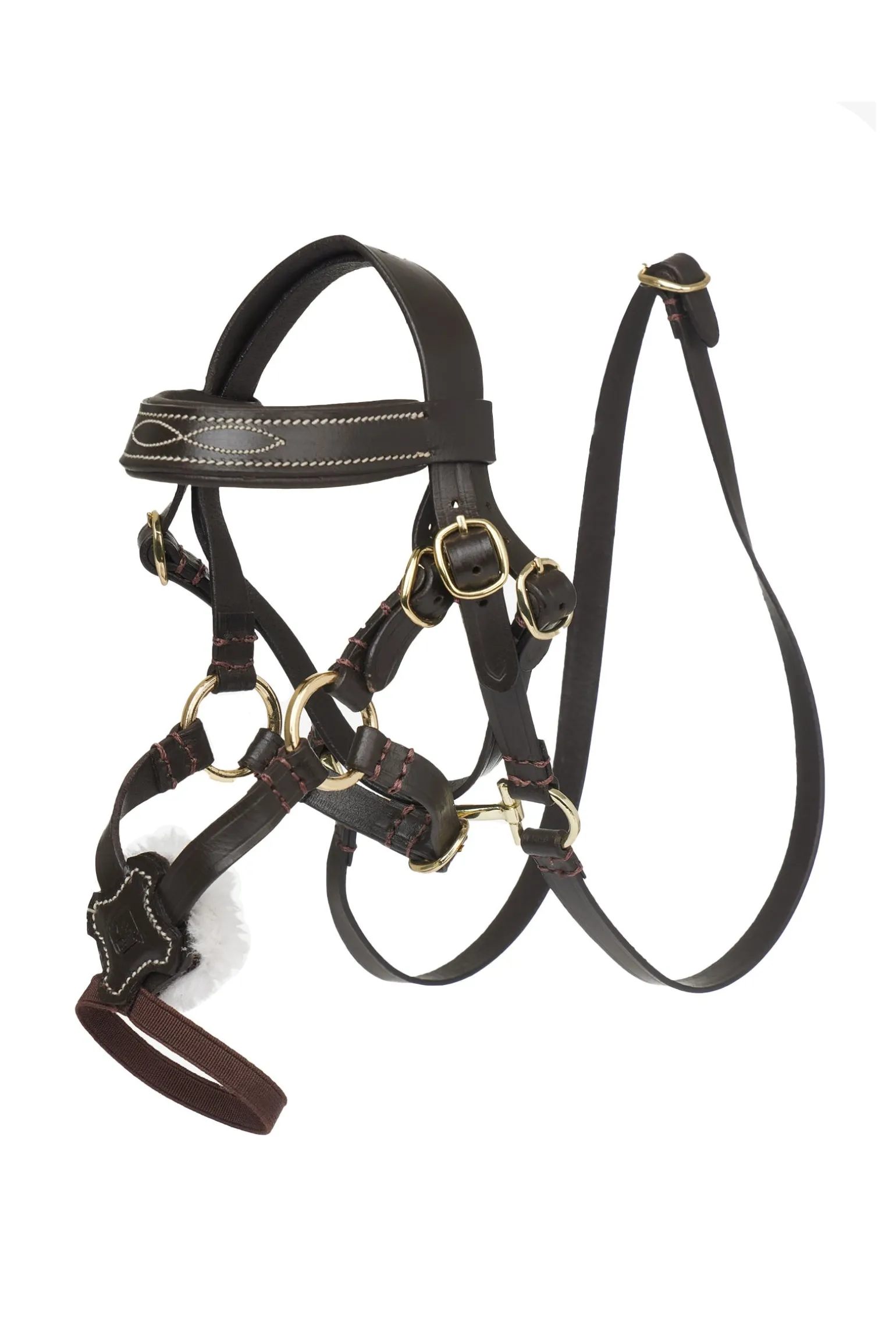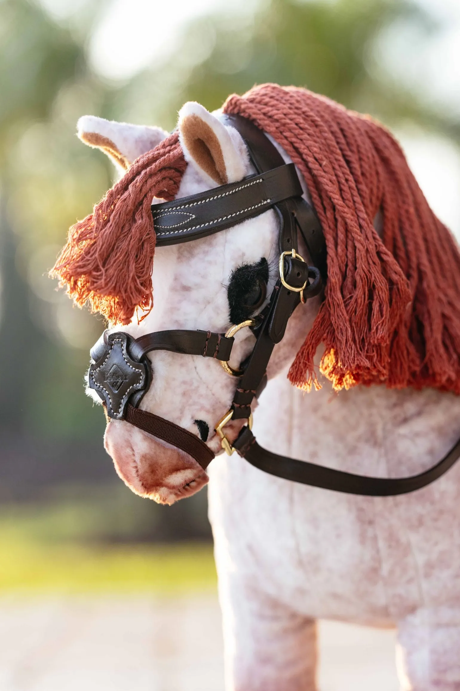 Realistische Trense, inspiriert von Trensen für echte Pferde, mit Stickerei, D-Ring-Gebiss, funktionalen Schnallen und gepolstertem Nasenriemen. Ein großer Auftritt für kleine Steckenpferde.