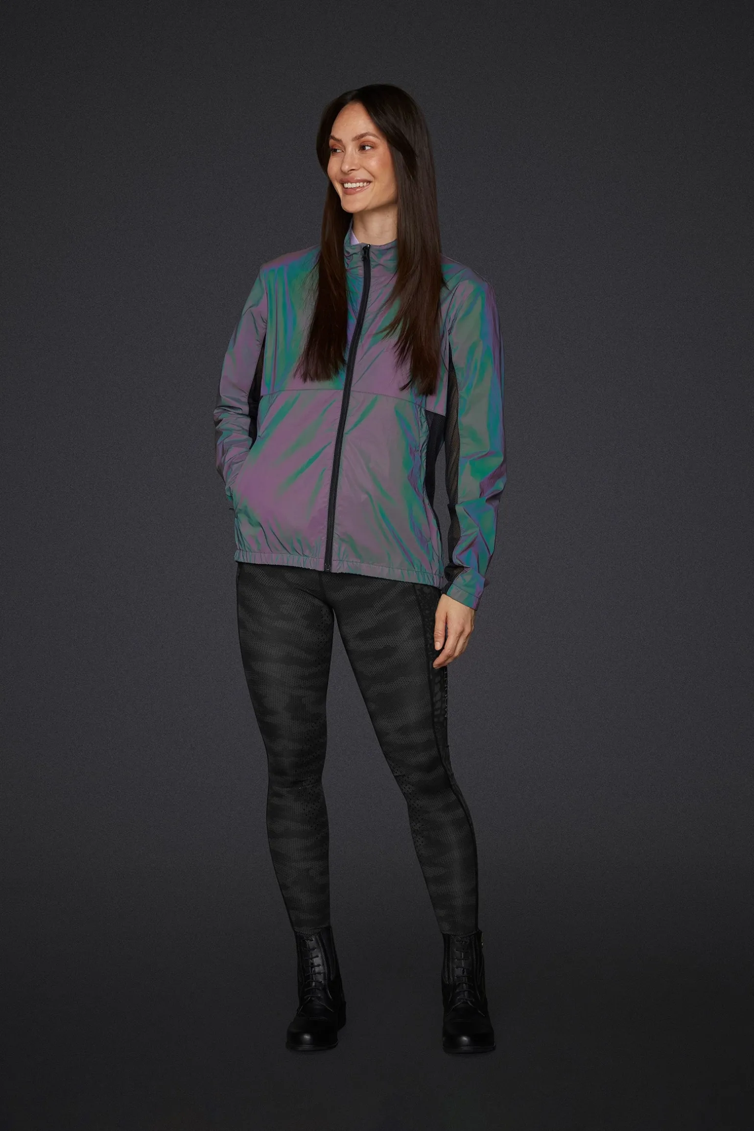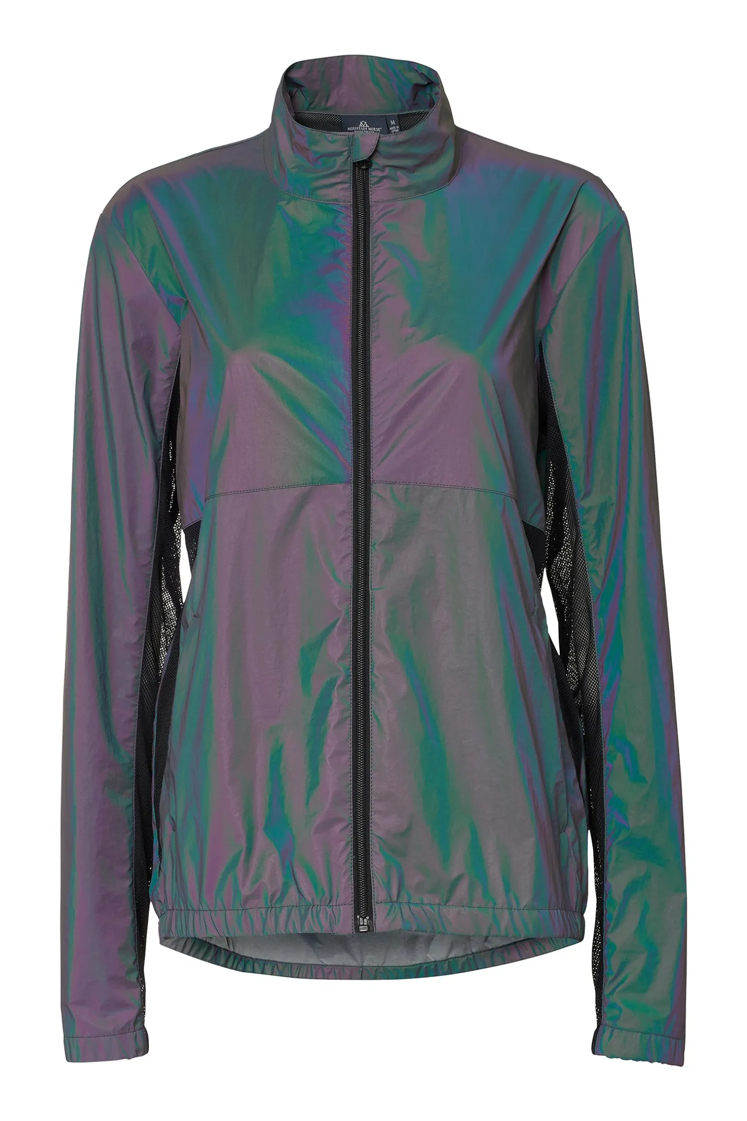 Leichte, reflektierende Jacke. Mesh-Ventilationsabschnitte an der Rückenpasse, an der Seite und am Ärmel.