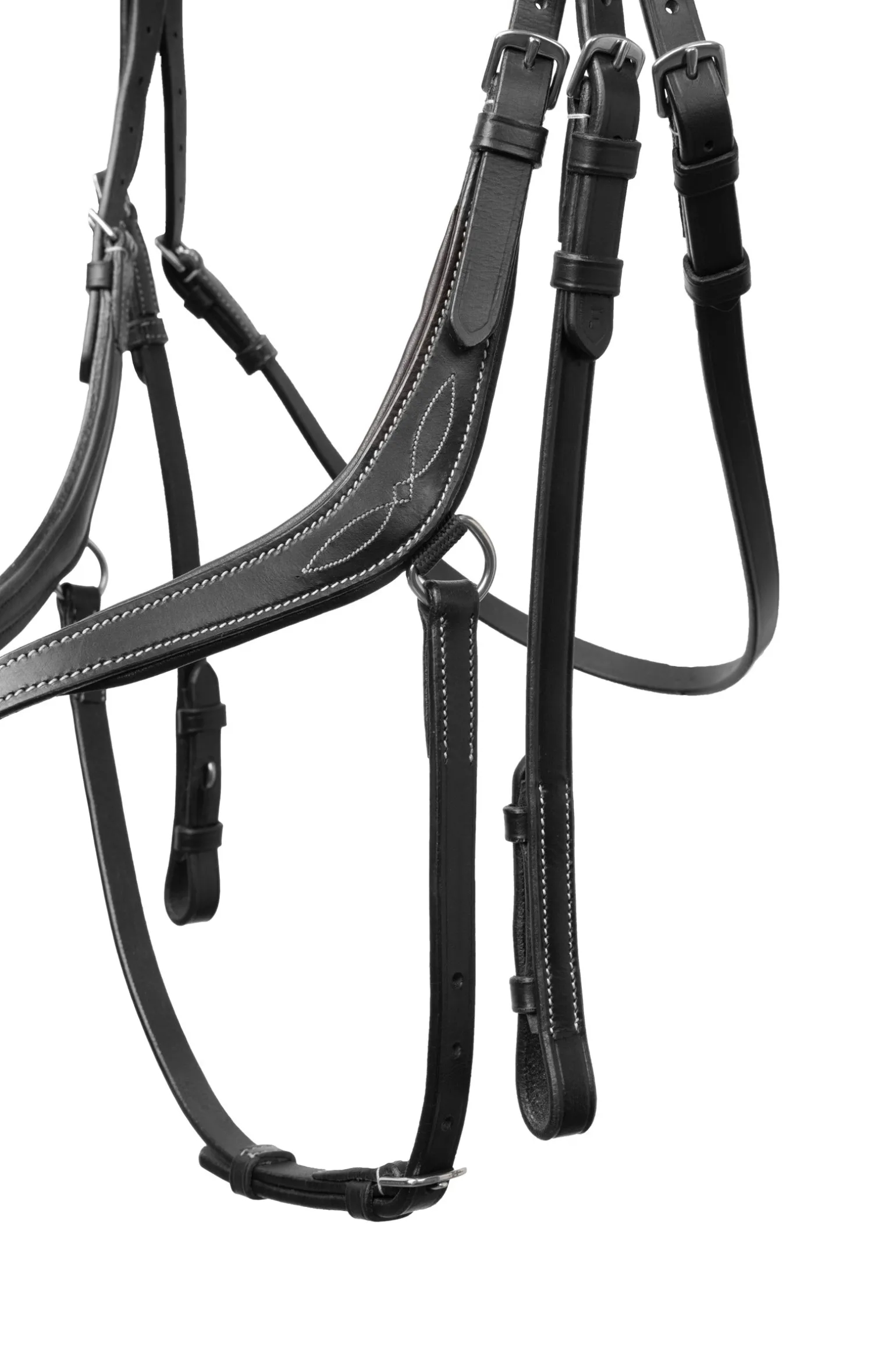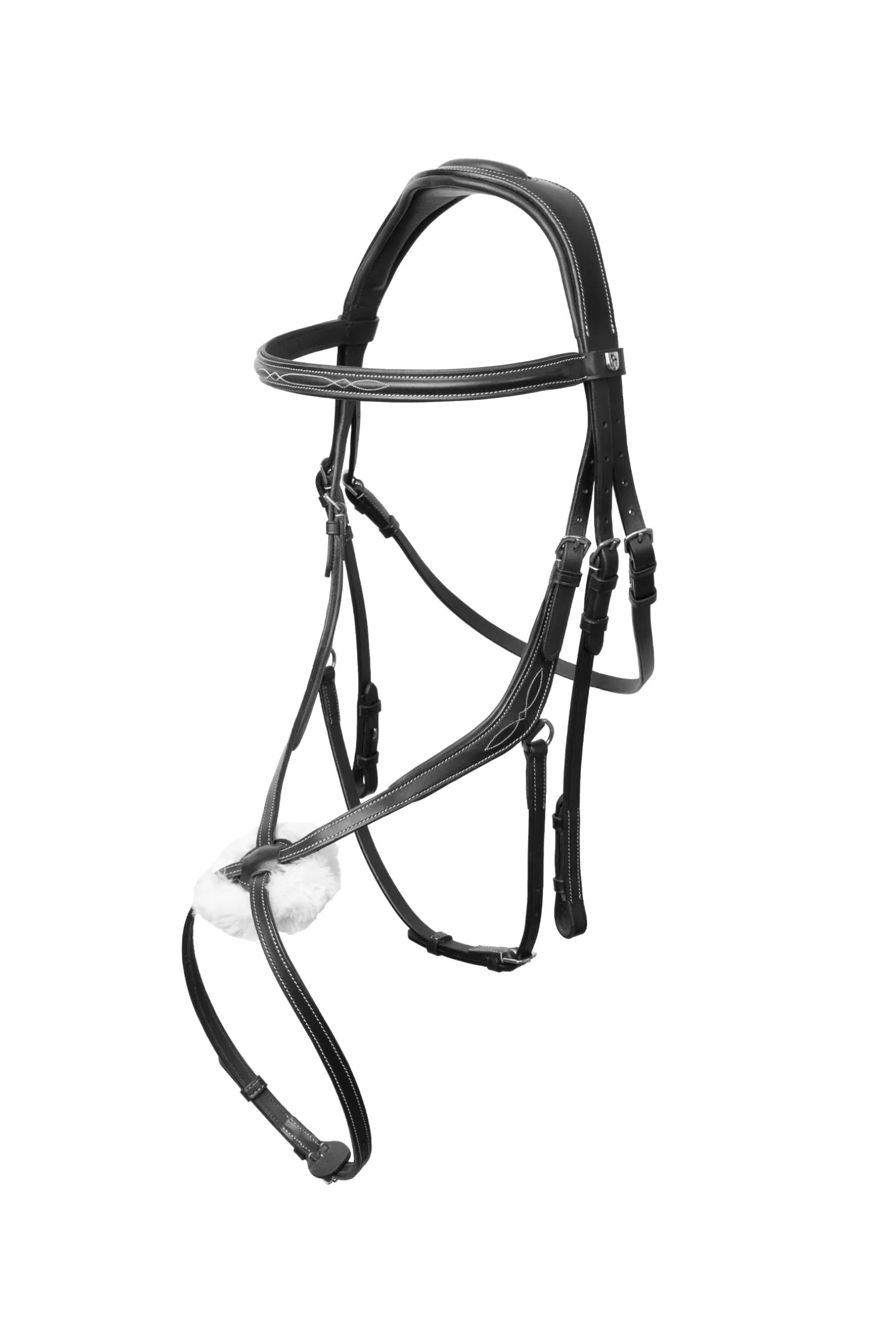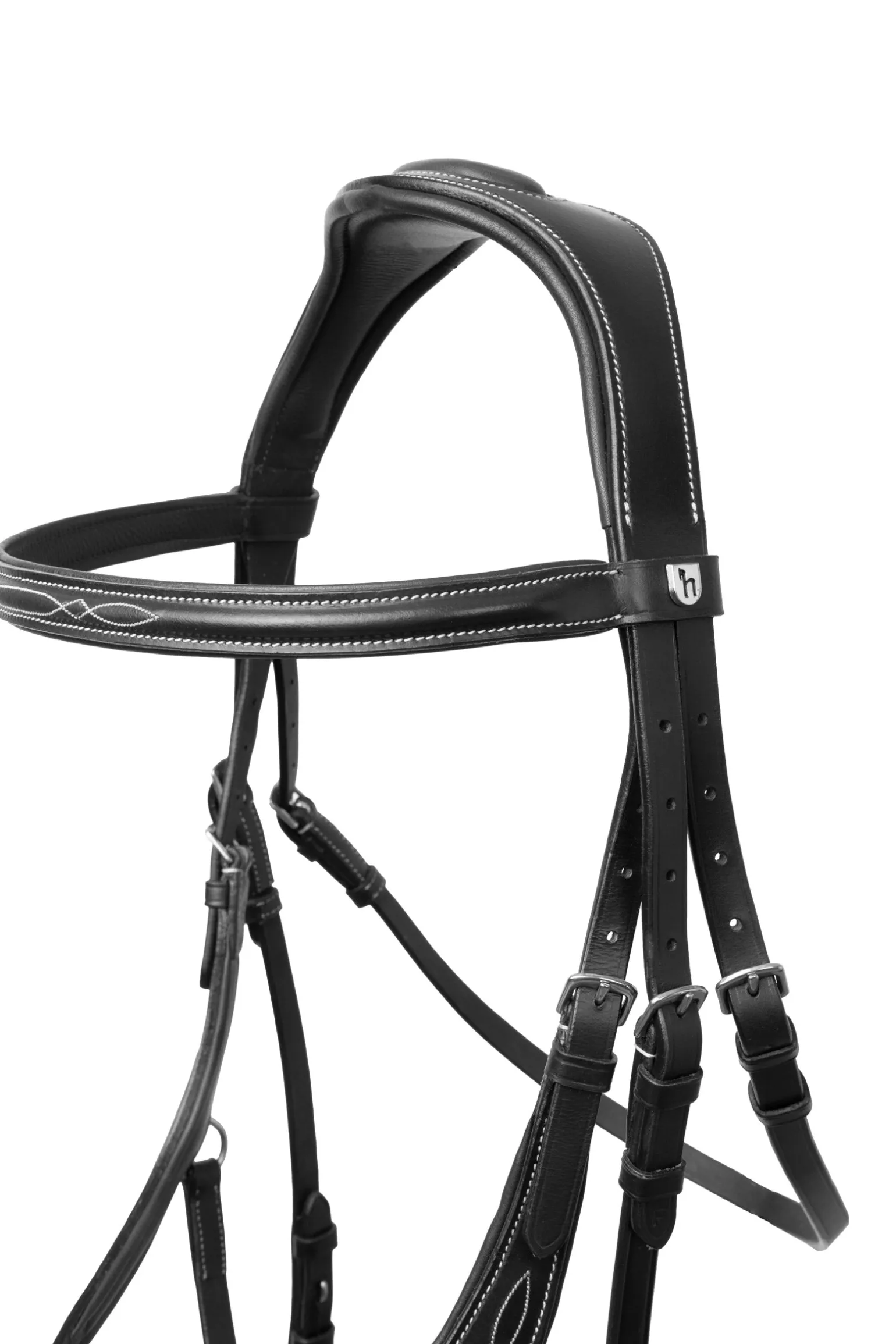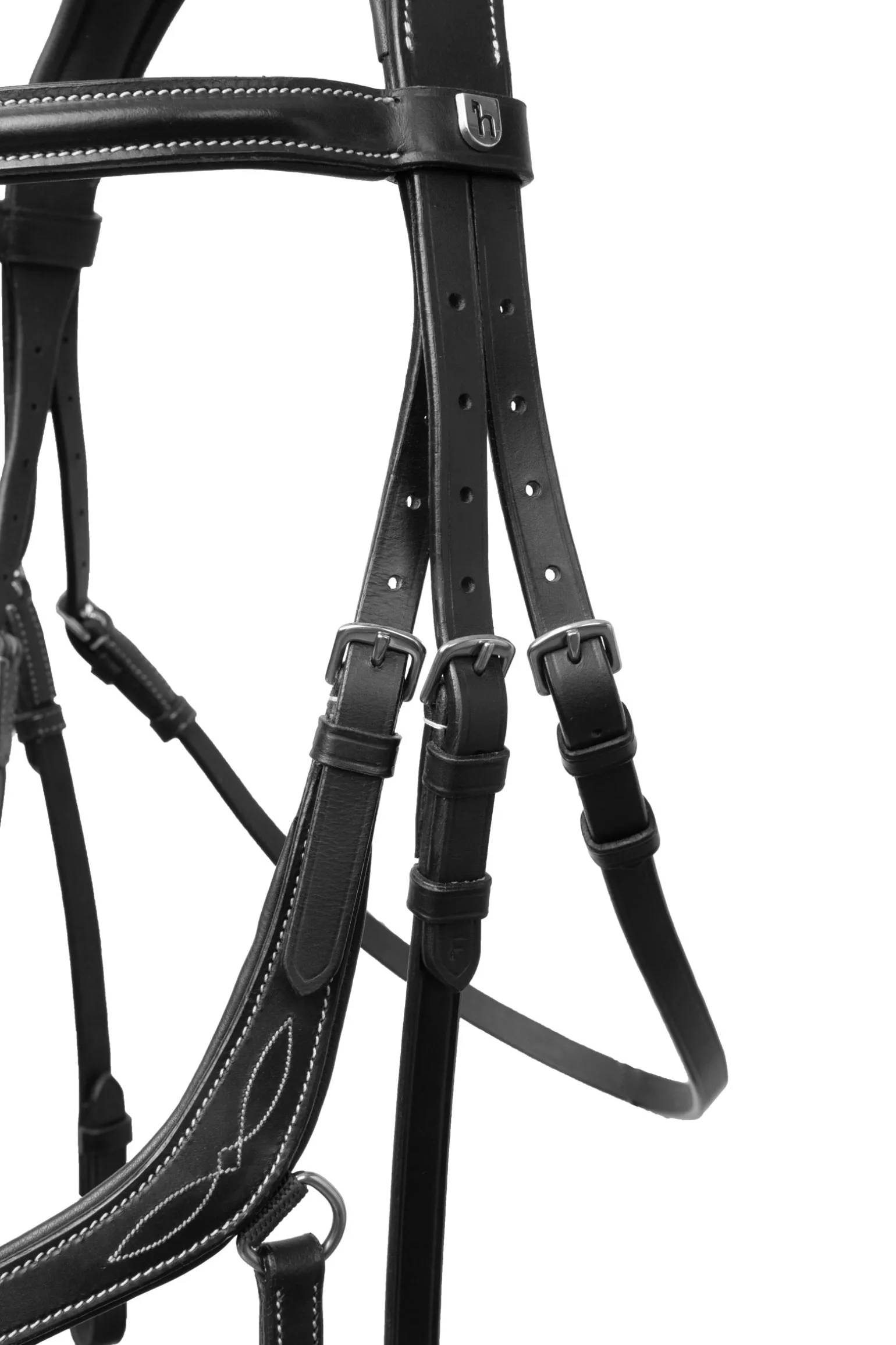 Das HZ Monterrey Mexikanische Reithalfter kombiniert stilvolles Design mit durchdachtem Komfort für dein Pferd. Das Reithalfter hat weiße Bestickungen, die ihm ein exklusives Aussehen verleihen. Das anatomisch geformte Genickstück ist weich gepolstert, um Druckstellen zu minimieren und maximalen Komfort zu gewährleisten. Der Nasenriemen ist mit Wolle unterlegt, um eine sanfte und angenehme Passform zu garantieren.