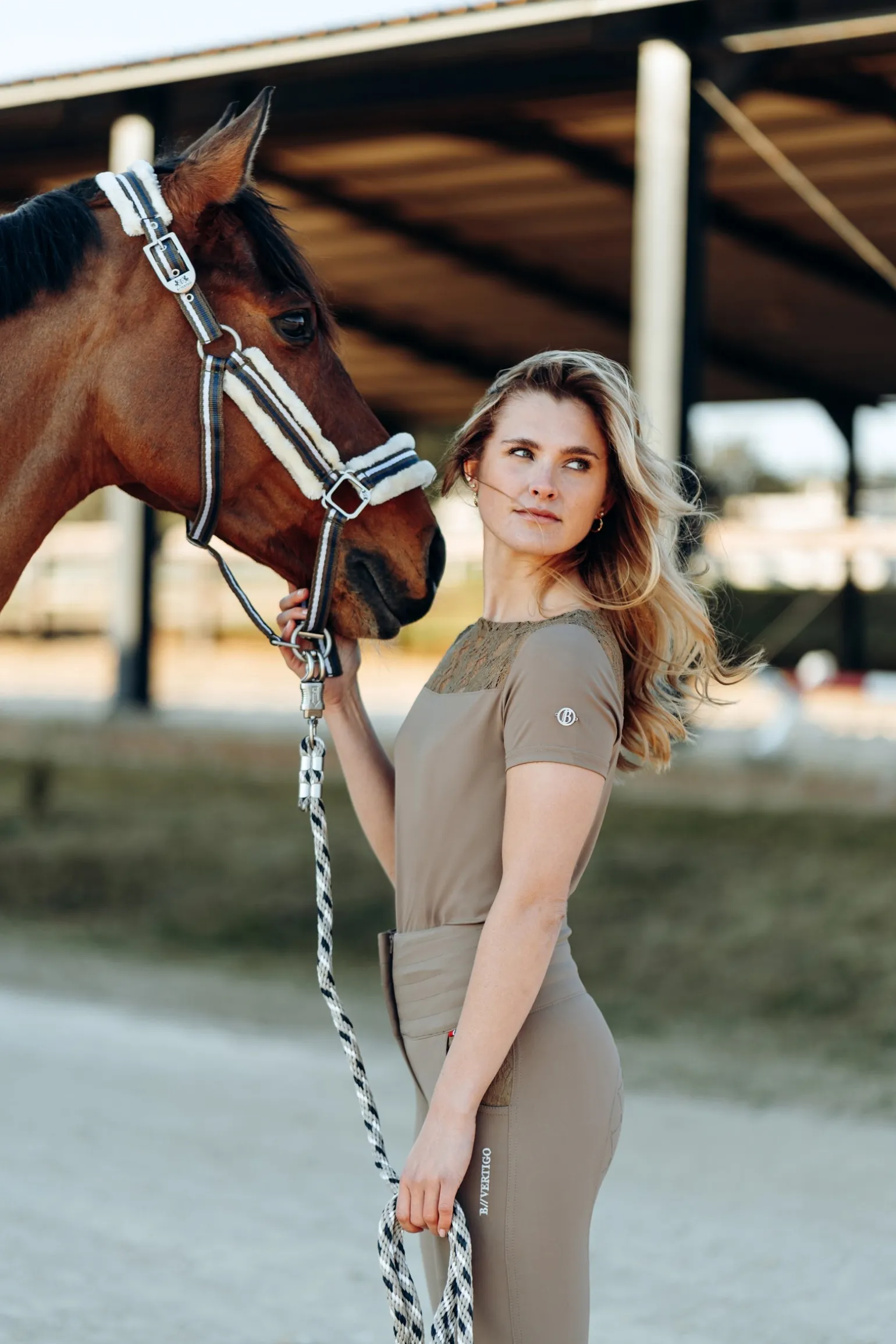 Unser B Vertigo Natalia Shirt ist leicht und atmungsaktiv, perfekt für das Training. Weiche Spitze um den Kragen macht es fast zu schön, um es nicht auch in deiner Freizeit zu tragen. Die dezente B Vertigo Stickerei sorgt für ein elegantes Detail. Kombiniere es mit unserer Natalia Reithose (#36720) für einen kompletten Look.