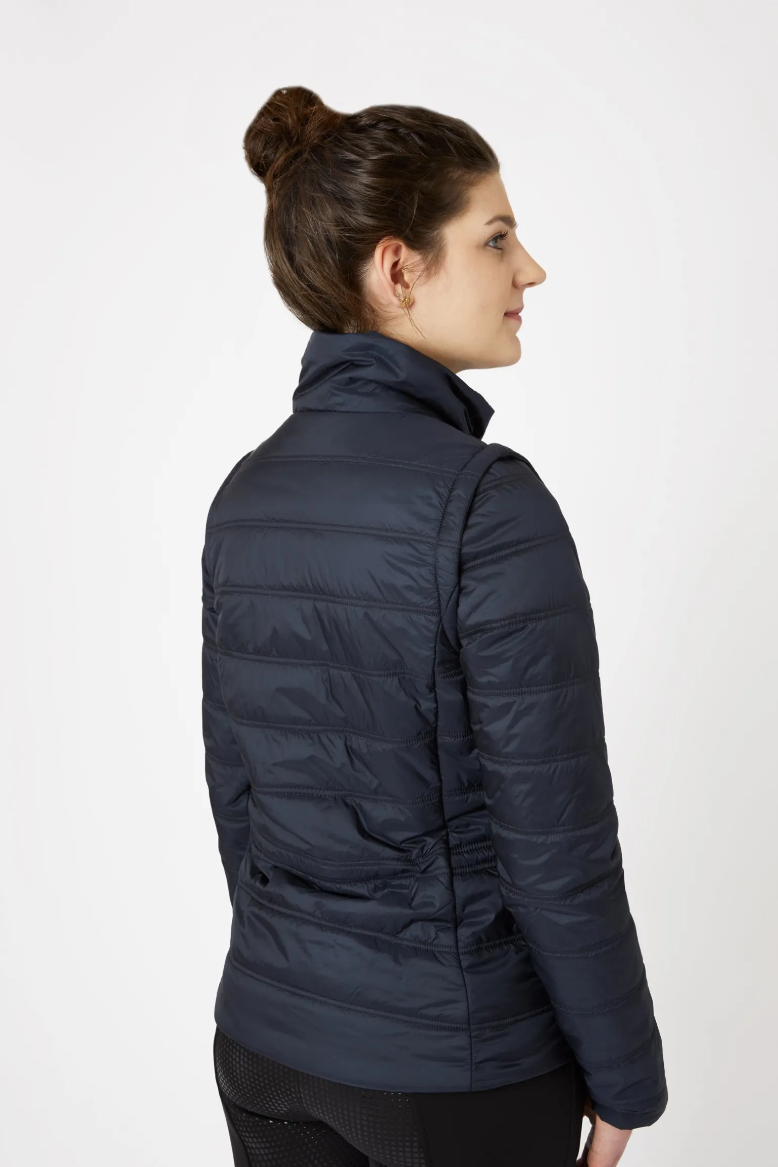 Die leichte Horze Natalie Jacke mit abnehmbaren Ärmeln kann einfach zu einer Weste umfunktioniert werden. Die Ärmel werden mit Reißverschlüssen befestigt. Die Jacke besteht aus atmungsaktivem, wasserabweisendem Material, das sie super praktisch macht. Passe sie mit dem verstellbaren Band an der Taille genau an deine Bedürfnisse an. Reißverschlusstaschen bieten genügend Platz für dein Handy und deinen Schlüssel.