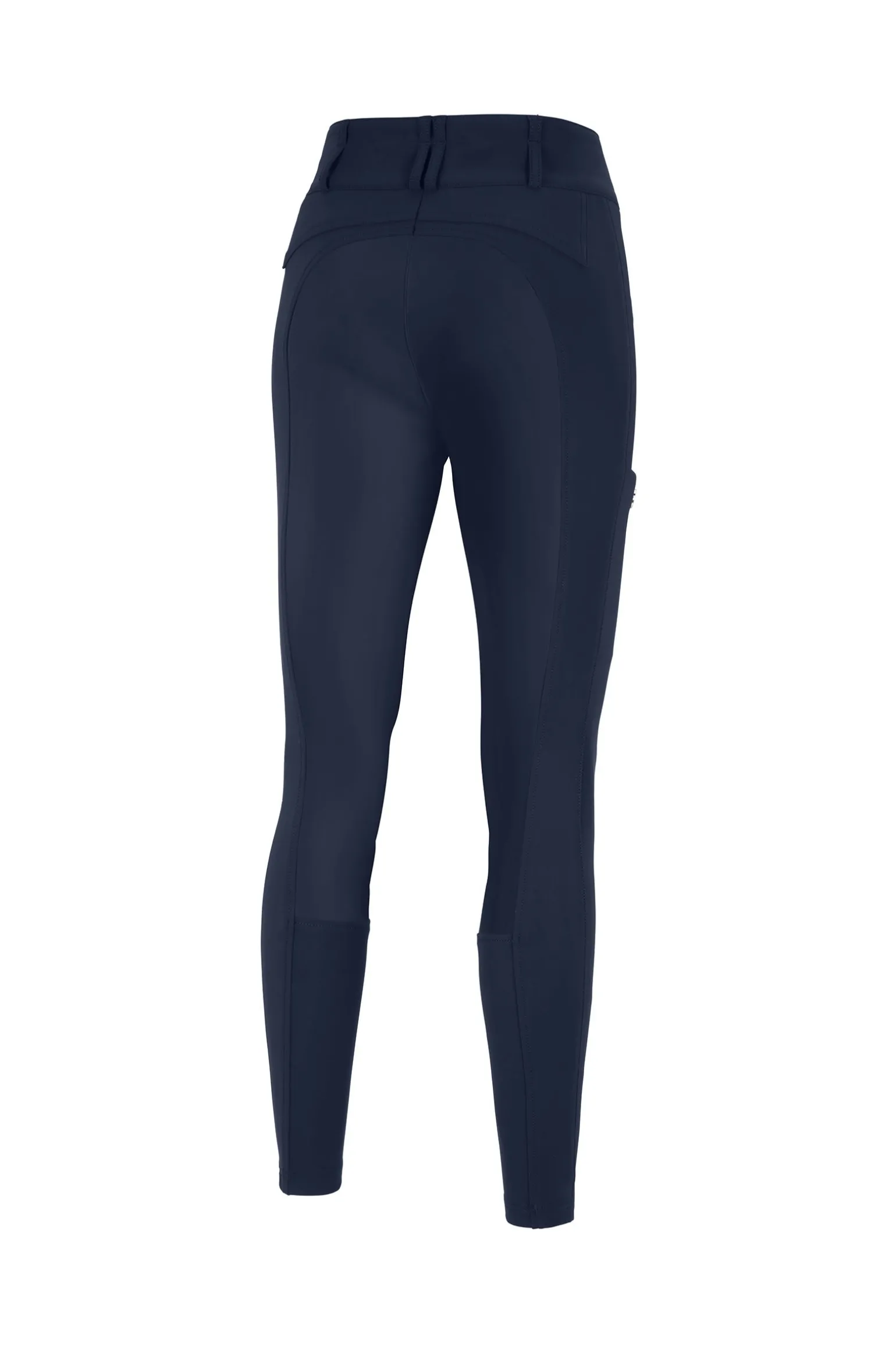 Die Candela-Reithose mit hohem Bund im beliebten Schnitt bietet Komfort und Stil mit einem Vollbesatz aus flexiblem Kunstleder. Entwickelt, um Hautunebenheiten zu kaschieren und einen leichten Shaping-Effekt zu bieten, bietet sie zudem ausgezeichnete Atmungsaktivität, Schweißabsorption und UV-Schutz. Diese Reithose verfügt über Verschlüsse am Bund, einen glänzenden Metallhaken mit PIKEUR-Icon und einen praktischen Seitenstreifen mit Handytasche (nicht in Weiß erhältlich). Der gerandete Beinabschluss sorgt für einen eleganten Look.