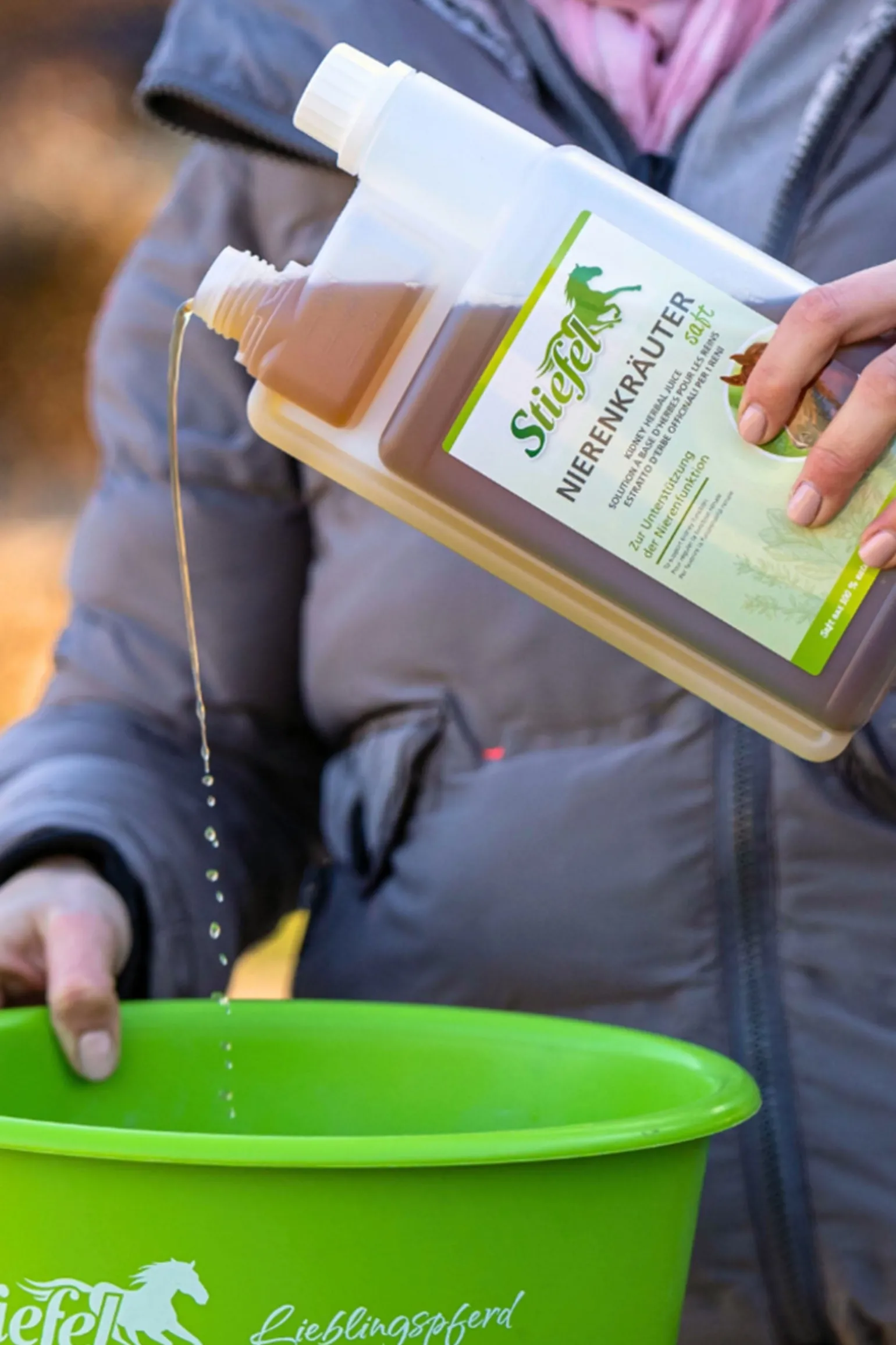 Stiefel Nierenkräutersaft ist ein Kräutersaft aus einer natürlichen Kräutermischung ohne künstliche Aromastoffe zur Unterstützung der Nierenfunktion. Die Wasserausscheidung kann auf natürlichem Wege reguliert und gefördert werden. Die Ausleitung über die Niere kann somit unterstützt werden. Hinweis: Anwendung bei trächtigen Stuten nur in Rücksprache mit dem Tierarzt. Stiefel Kräutersäfte sind vegan, ohne Zuckerzusatz, ohne Farbstoffe, ohne künstliche Aromastoffe und made in Germany. Fütterungshinweis: Großpferde (600 kg KGW) 70 ml / tägl., Kleinpferde 35 ml / tägl. Tagesdosis kann auf zwei Portionen pro Tag aufgeteilt werden. Fütterungsdauer: Mind. 14 Tage. Fütterungsdauer von bis zu 6 Wochen empfehlenswert.
