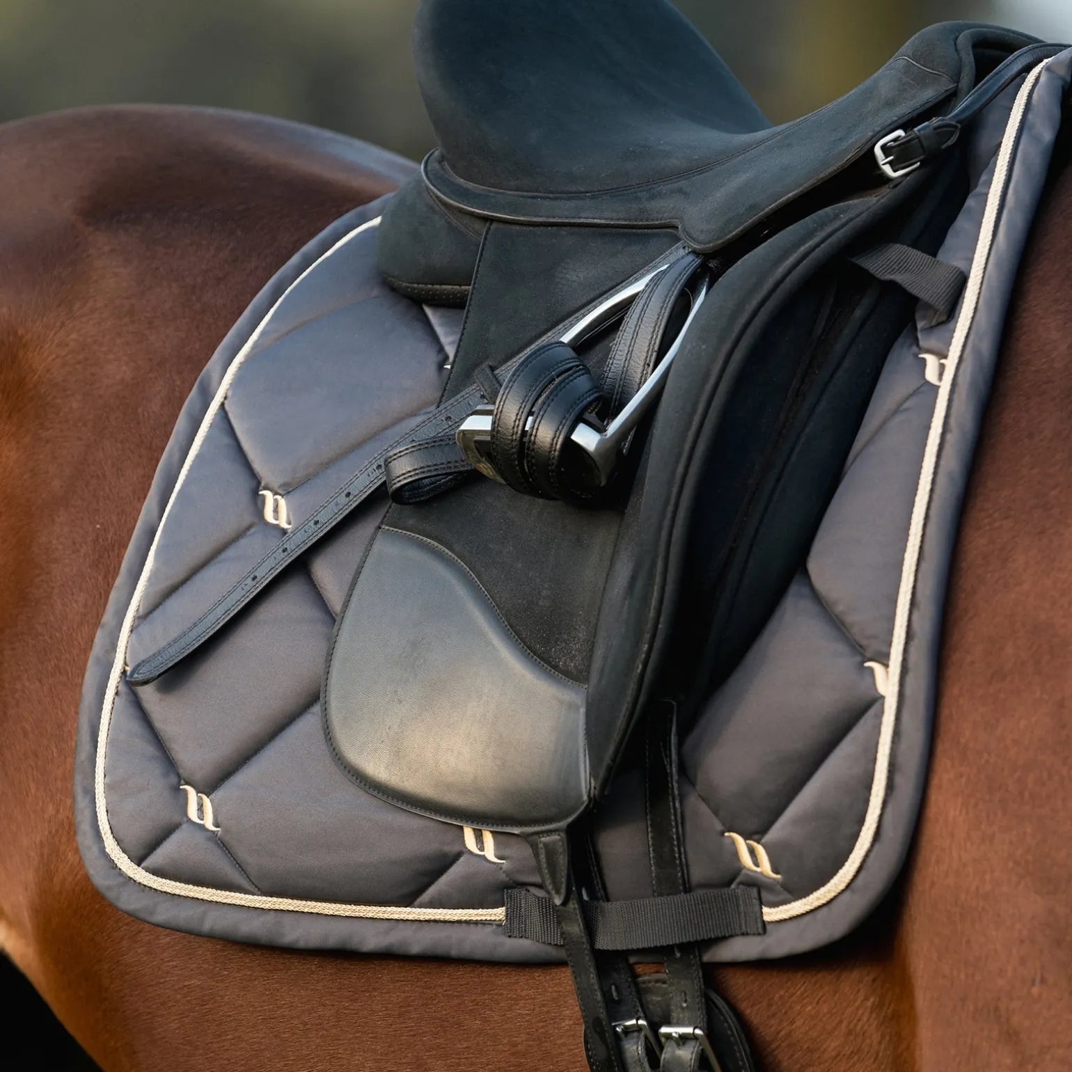 Fühlen Sie sich einzigartig, fühlen Sie den Unterschied mit der neuen Schabracke aus der Nights Collection. Neue, innovative Optik durch eine dick gesteppte Oberfläche zusammen mit unserer bewährten Welltex Technologie. Die von uns neu entwickelte Oberflächenstruktur der Schabracke sorgt für einen optimalen Wärmeausgleich. Die Leistungsfähigkeit und der Muskelaufbau Ihres Pferdes können dadurch positiv unterstützt werden. Die infrarote Strahlung durch unsere Welltexfasern kann die Blutzirkulation anregen und Verspannungen im Rückenbereich lösen. Wir hoffen, Sie und Ihr Pferd fühlen den Unterschied. Eine zweilagige Füllung sorgt für Atmungsaktivität und wirkt stoßabsorbierend. Die Passform basiert auf dem Design unserer No. I Schabracke, bietet viel Widerristfreiheit und verhindert Druckstellen.