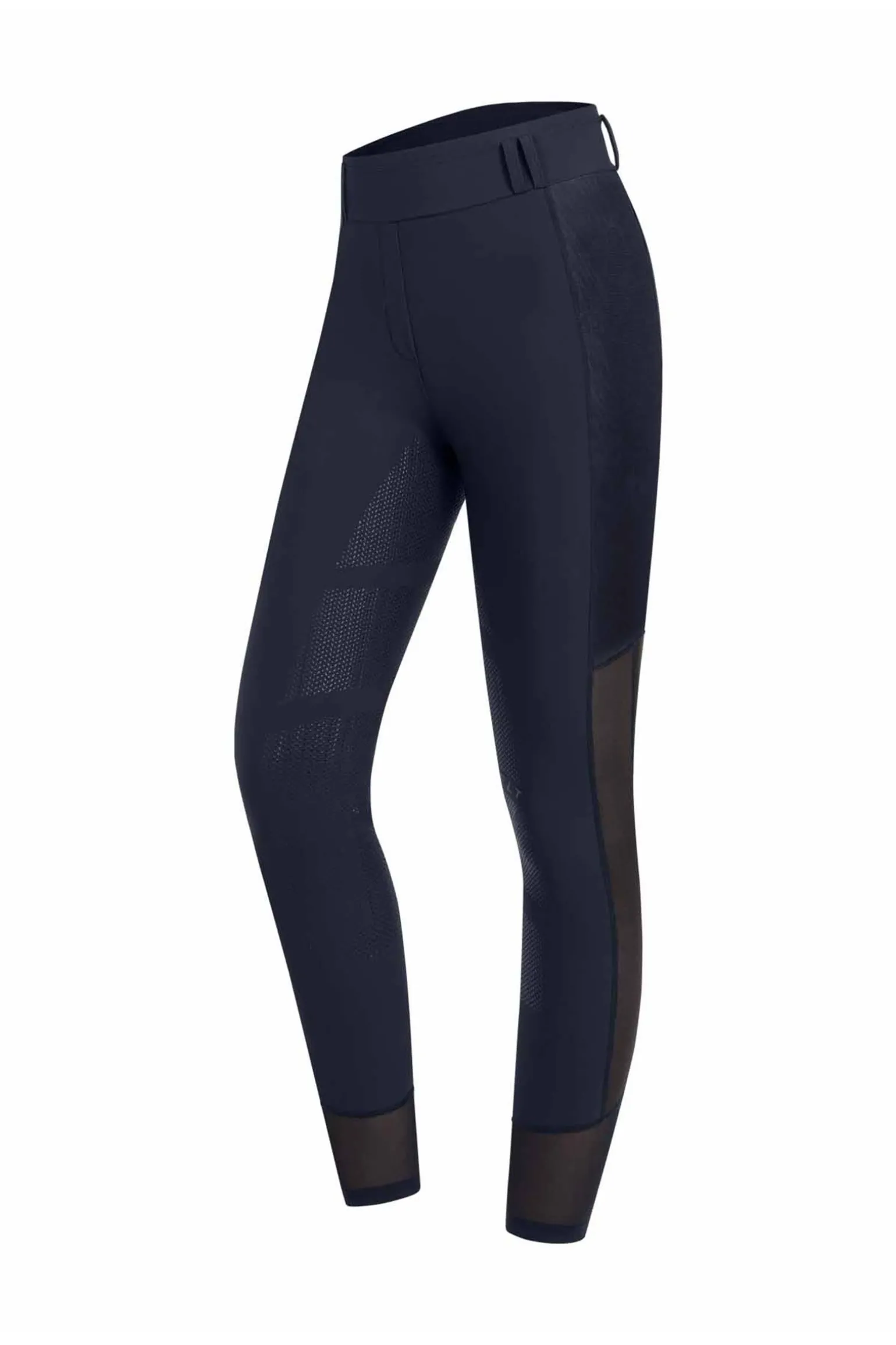 Diese Reitleggings verfügen über einen Silikon-Vollbesatz mit verschiedenen Grip-Zonen für mehr Stabilität. Die elastischen Beinbündchen bestehen aus atmungsaktivem Mesh-Material mit einem Silikonprint am inneren Saum. Das bi-elastische, atmungsaktive und wasserabweisende Material sorgt für Komfort und Langlebigkeit. Eine Handy-Einschubtasche auf der rechten Seite mit irisierendem E·L·T-Schriftzug verleiht einen stilvollen Akzent. Seitliche Einsätze aus zwei verschiedenen Mesh-Materialien und Gürtelschlaufen ergänzen das funktionale und trendige Design. Der E·L·T Logo-Silikonprint am hinteren Bund rundet den Look ab.