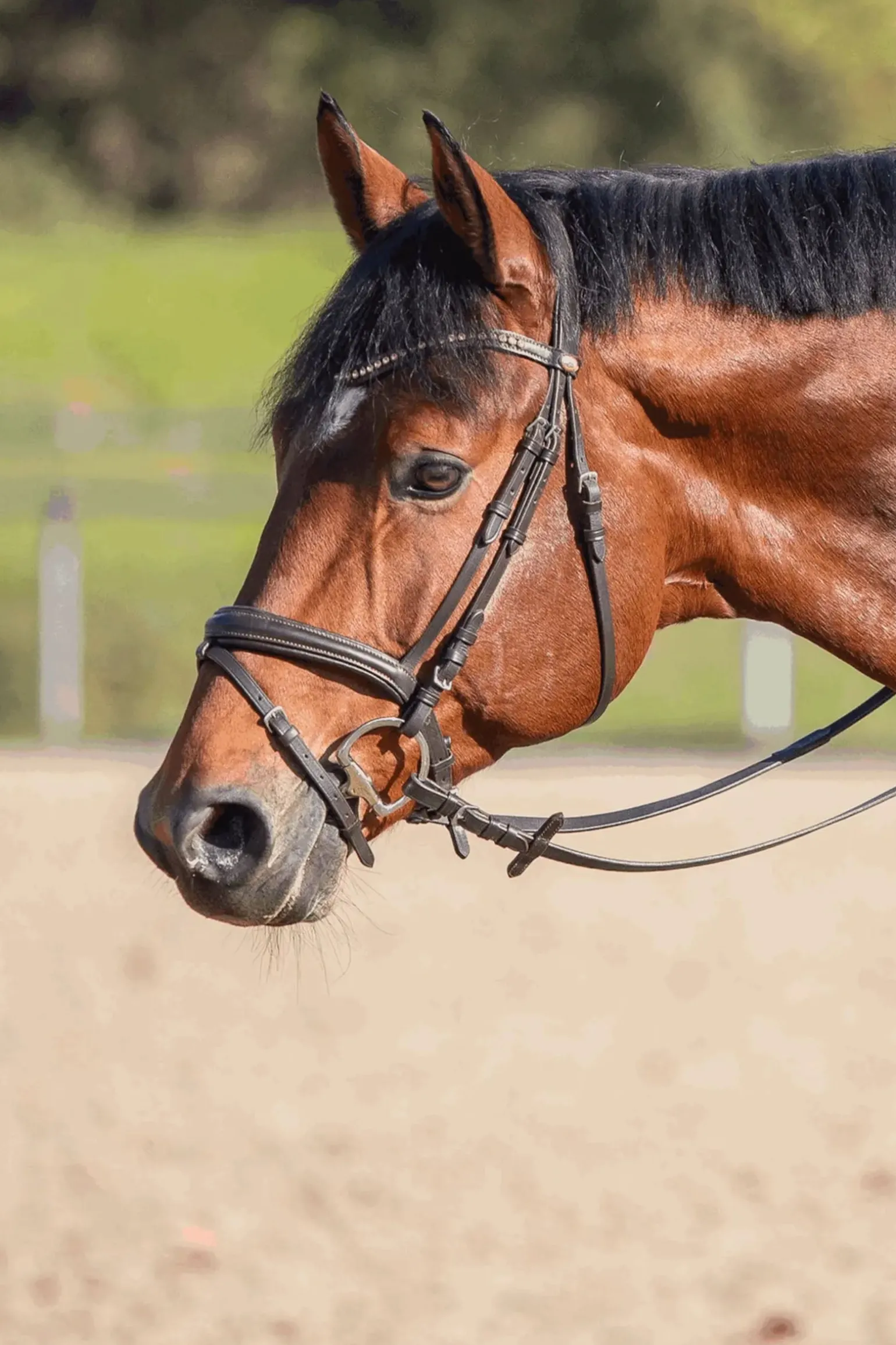 Novocontact Gebisse sind so konzipiert, dass sie eine einzigartige ovale Form erzeugen, die die Kontaktfläche auf der Zunge vergrößert, während der Reiter einen gleichmäßigen Kontakt hält. Erst wenn der Reiter eine verstärkte Zügelhilfe gibt, bewegt sich das Mundstück nach vorne und die Kontaktfläche wird schmaler, was eine präzisere und effektivere Kommunikation gewährleistet. So verbessern novocontact Gebisse die Interaktion zwischen Pferd und Reiter für einen besseren Kontakt und eine bessere Akzeptanz des Gebisses. Das einfach gebrochene Olivenkopfgebiss mit D-förmigen Ringen hat eine leichte begrenzende Wirkung und liegt ruhig im Maul. Gleichzeitig hilft es, die empfindlichen Maulwinkel zu schützen. Dieses Modell ermöglicht eine direkte Übertragung der Zügel. Tests haben gezeigt, dass einfach gebrochene novocontact Gebisse besonders für Pferde empfohlen werden, die den Kontakt noch nicht selbstbewusst annehmen. Sie bieten auch einen zusätzlichen Vorteil für Pferde mit einem empfindlichen Maul, da der Reiter präzise, aber sanfte Hilfen geben kann.