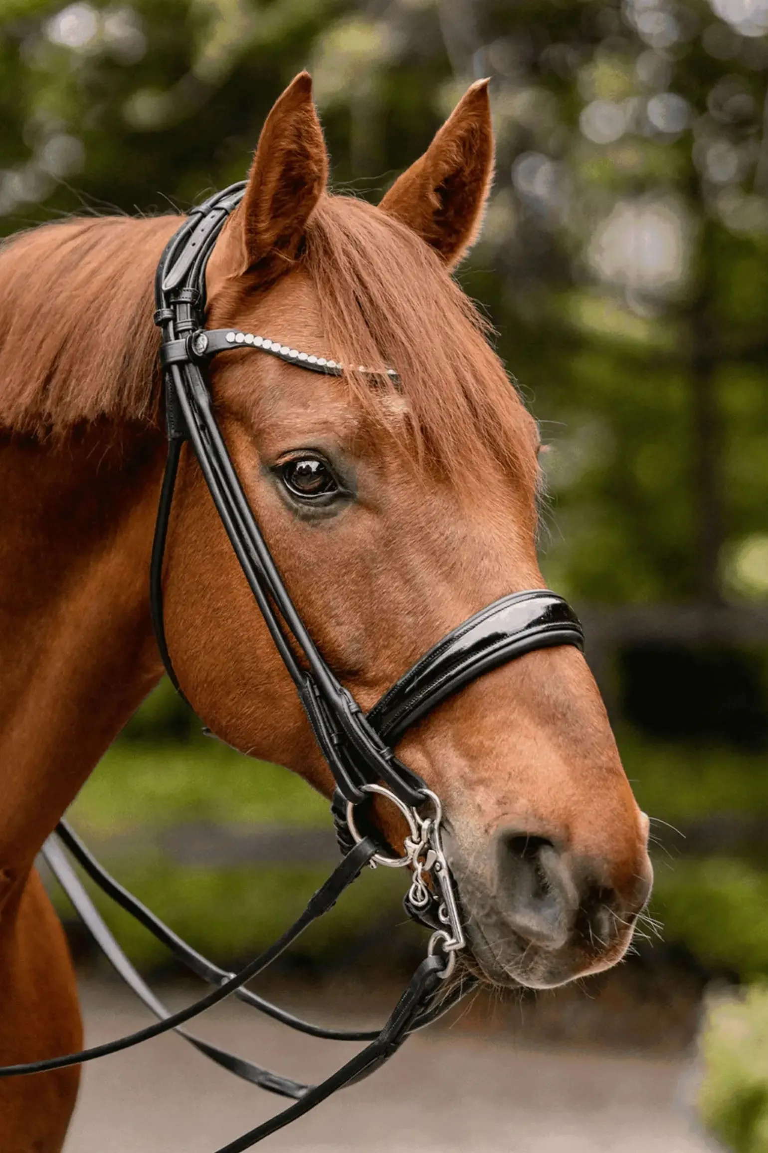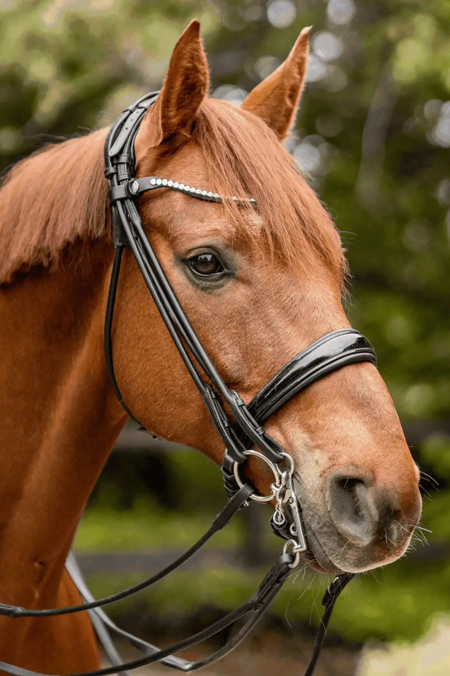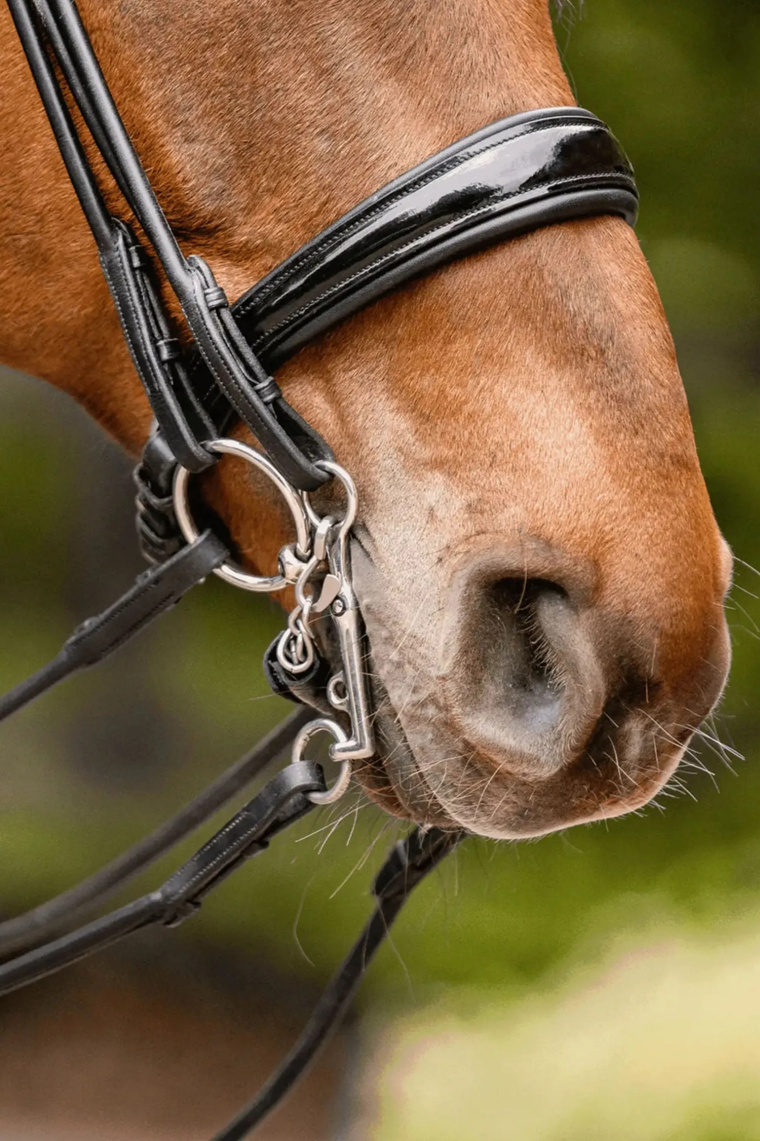 Bereit für den neuesten Standard pferdefreundlicher Gebisse? Die innovativen novocontact-Gebisse haben eine einzigartige Form und liegen mit einer vergrößerten Kontaktfläche auf der Zunge. Dies ermöglicht eine besonders weiche Druckverteilung im Pferdemaul bei optimaler Ausnutzung des verfügbaren Raumes. Aufgrund der modernen novocontact-Geometrie wird dieses Weymouth-Gebiss besonders für Pferde empfohlen, die dazu neigen, ihre Zunge hochzuziehen. In unseren Praxistests reagierten diese Pferde ebenfalls positiv auf das Gebiss. Die kurzen Schenkel sorgen für eine schnelle mechanische Wirkung, ohne starken Druck auf das Genick aufzubauen. Eine sensible Reiterhand ist unerlässlich. Das Pferdemaul ist tendenziell etwas schmaler an der Stelle, an der das Weymouth eingesetzt wird. Wir empfehlen daher, ein Weymouth zu wählen, das 0,5 bis 1 cm kleiner ist als die Unterlegtrense. Es ist wichtig, dass die Seiten des Weymouths nahe an den Maulwinkeln liegen. Wenn zu viel Platz zwischen den Maulwinkeln und den Seitenteilen vorhanden ist, kann das Weymouth klemmen oder kippen. Die Kinnkette sollte so befestigt werden, dass ein Winkel von etwa 30 bis 45 Grad zwischen dem Pferdemaul und dem unteren Schenkel möglich ist.