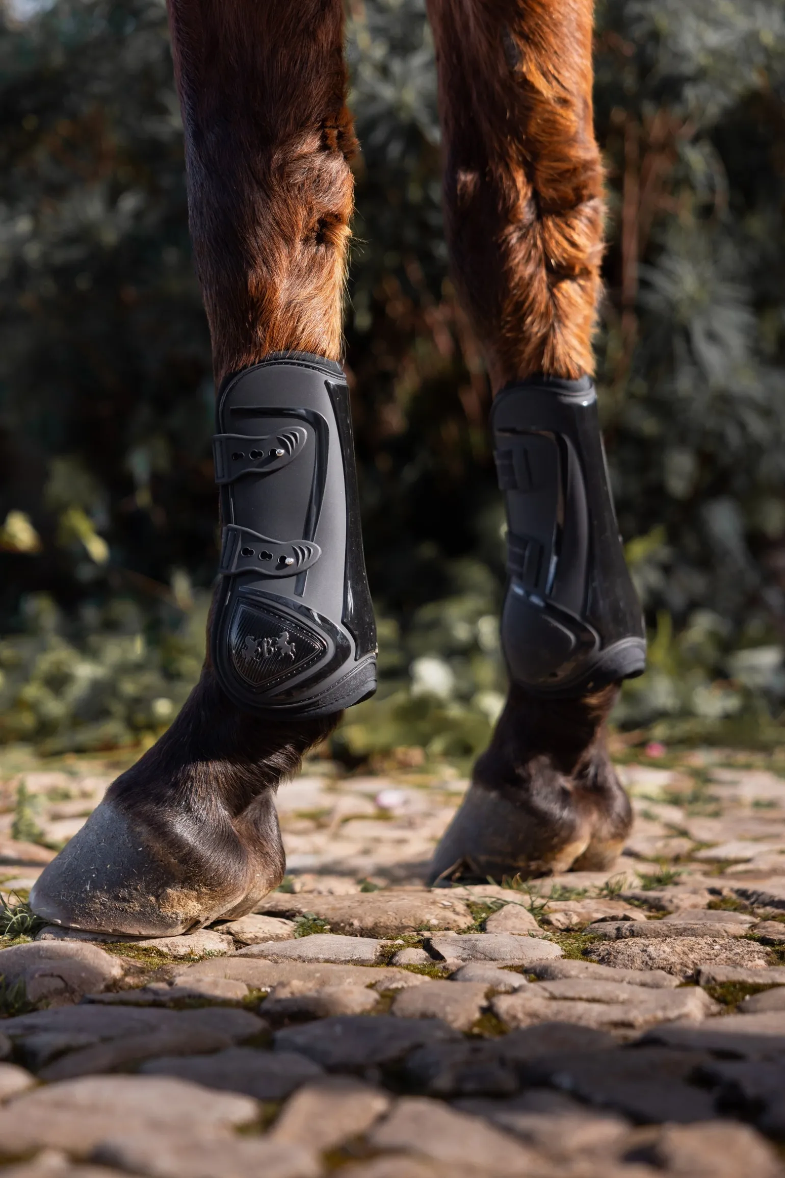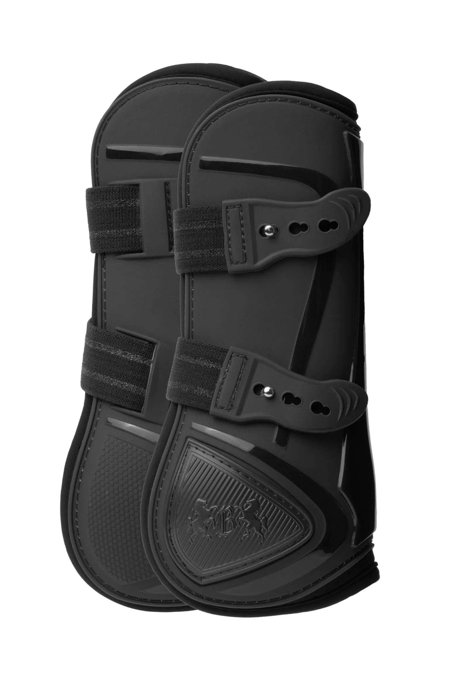 Springgamaschen mit zwei Riemen und elastischem Pin-Verschluss für sicheren Halt. Stoßabsorbierende PU-Außenschale für optimalen Schutz. Weiche Polsterung für maximalen Komfort. Silikon-Logo für eine stilvolle Optik. Pflegeleicht und schnelltrocknend.