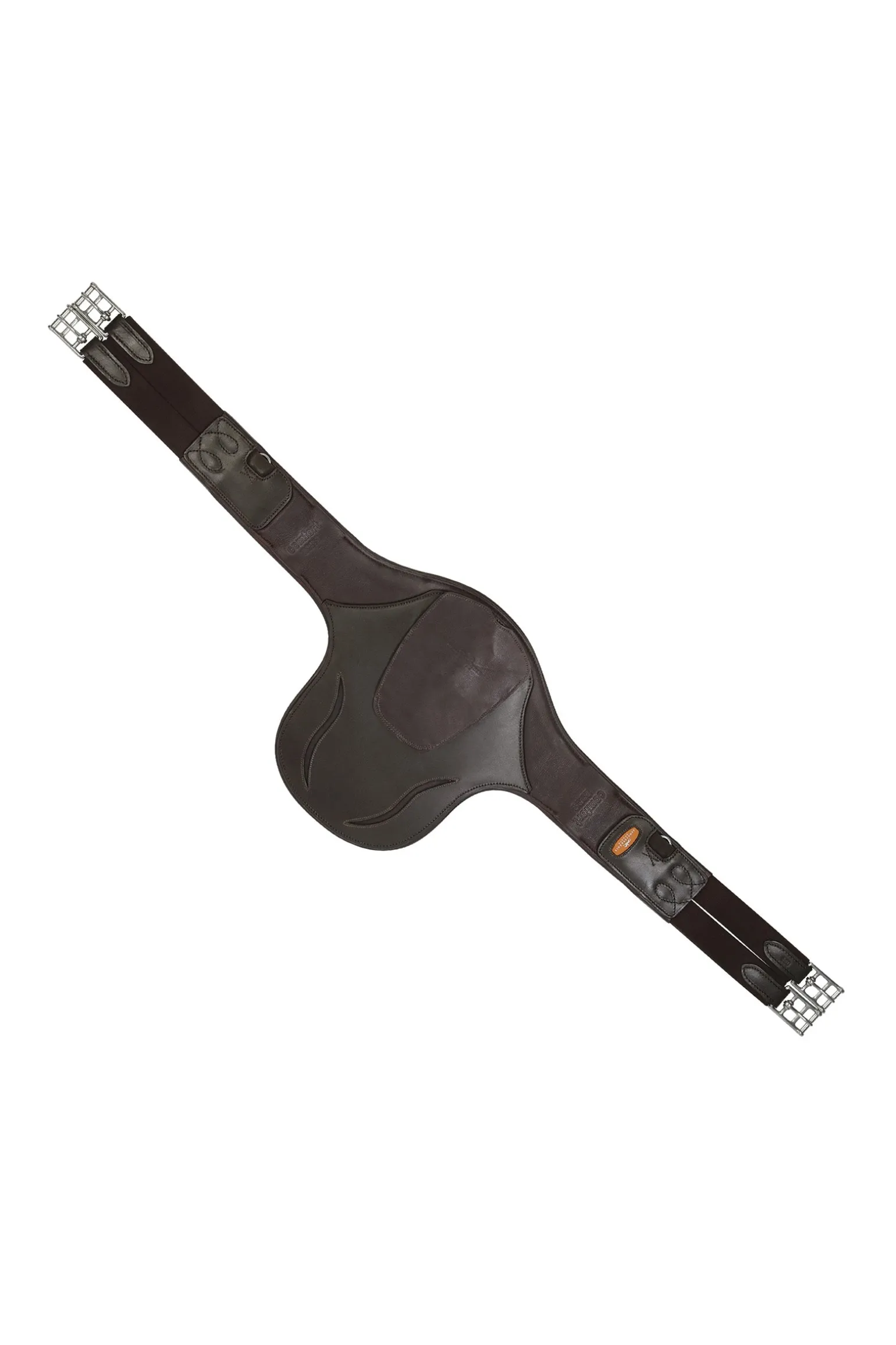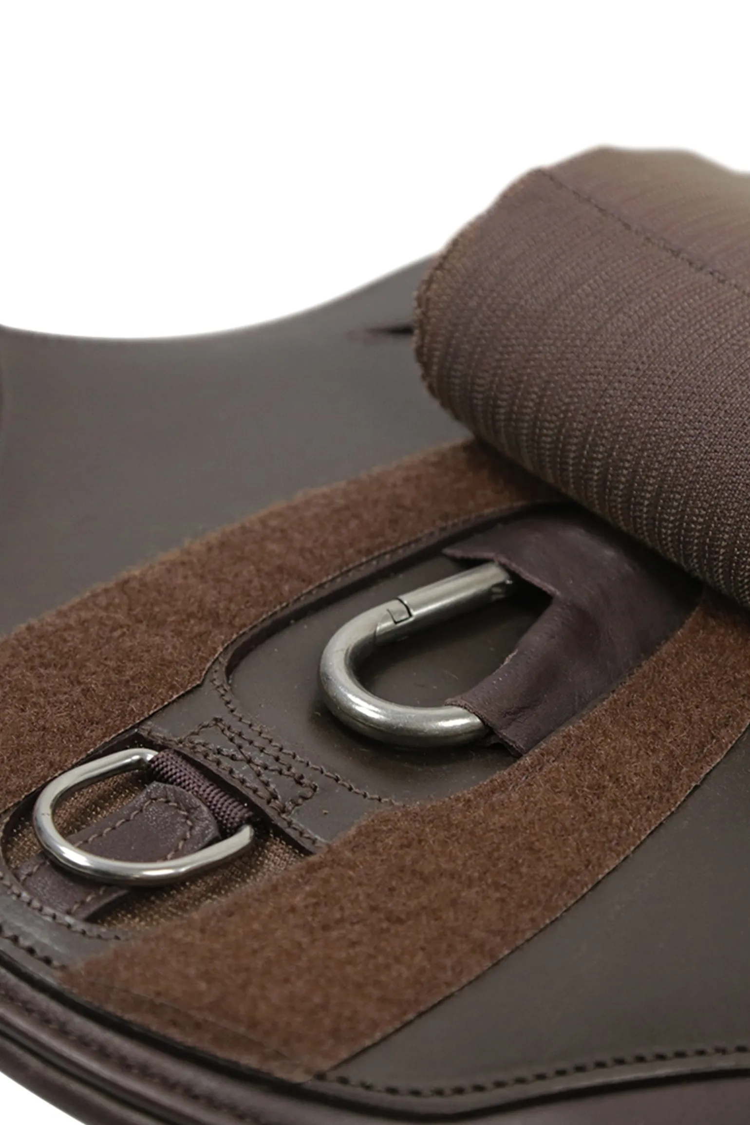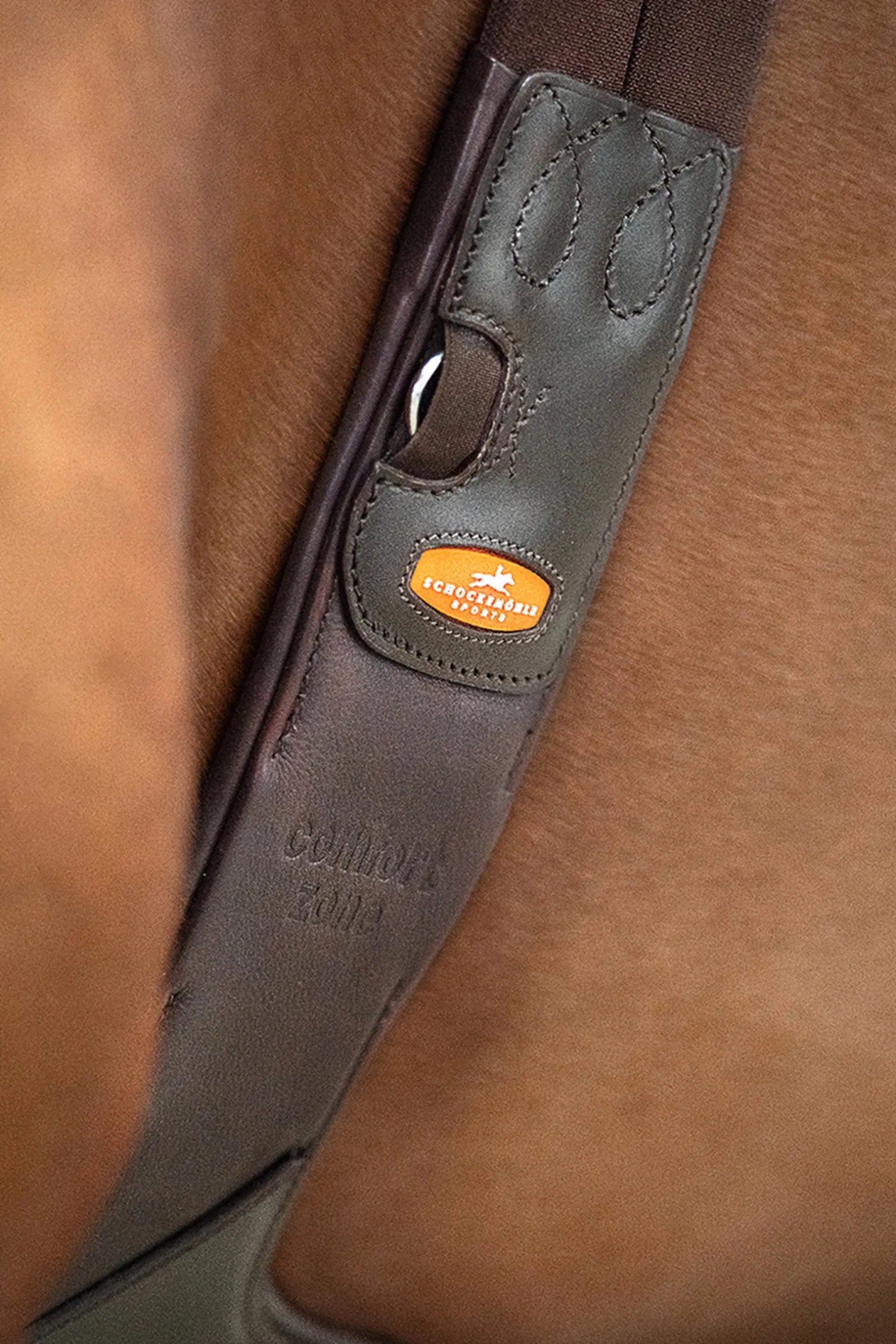 Mehr Bewegungsfreiheit dank optimaler Druckverteilung: Die innovative „Comfort Zone“ bei dem Stollenschutzgurt Oklahoma von Schockemöhle Sports setzt dafür neue Maßstäbe. Anatomisch geformt, ist der Sattelgurt im Bereich der Ellenbogen besonders flach gearbeitet. Gleichzeitig sorgt im Bereich des Brustkorbs die breitere Mittelplatte mit mehrlagigem Weichschaum für eine noch bessere Druckverteilung. Sie besteht aus festerem Leder und schützt damit auch vor Schlägen. Der große Karabiner erleichtert dem Reiter das Einschnallen des Vorderzeugs. Einmal befestigt, verhindert die Abdeckung mit der großen Lederklappe das gefährliche Hereintreten des Pferdes in beispielsweise ein Vorderzeug. Das beidseitige dreilagige Elastik sowie die weich gepolsterten Rollenschnallen heben den Komfort für das Pferd zusätzlich auf ein neues Level.