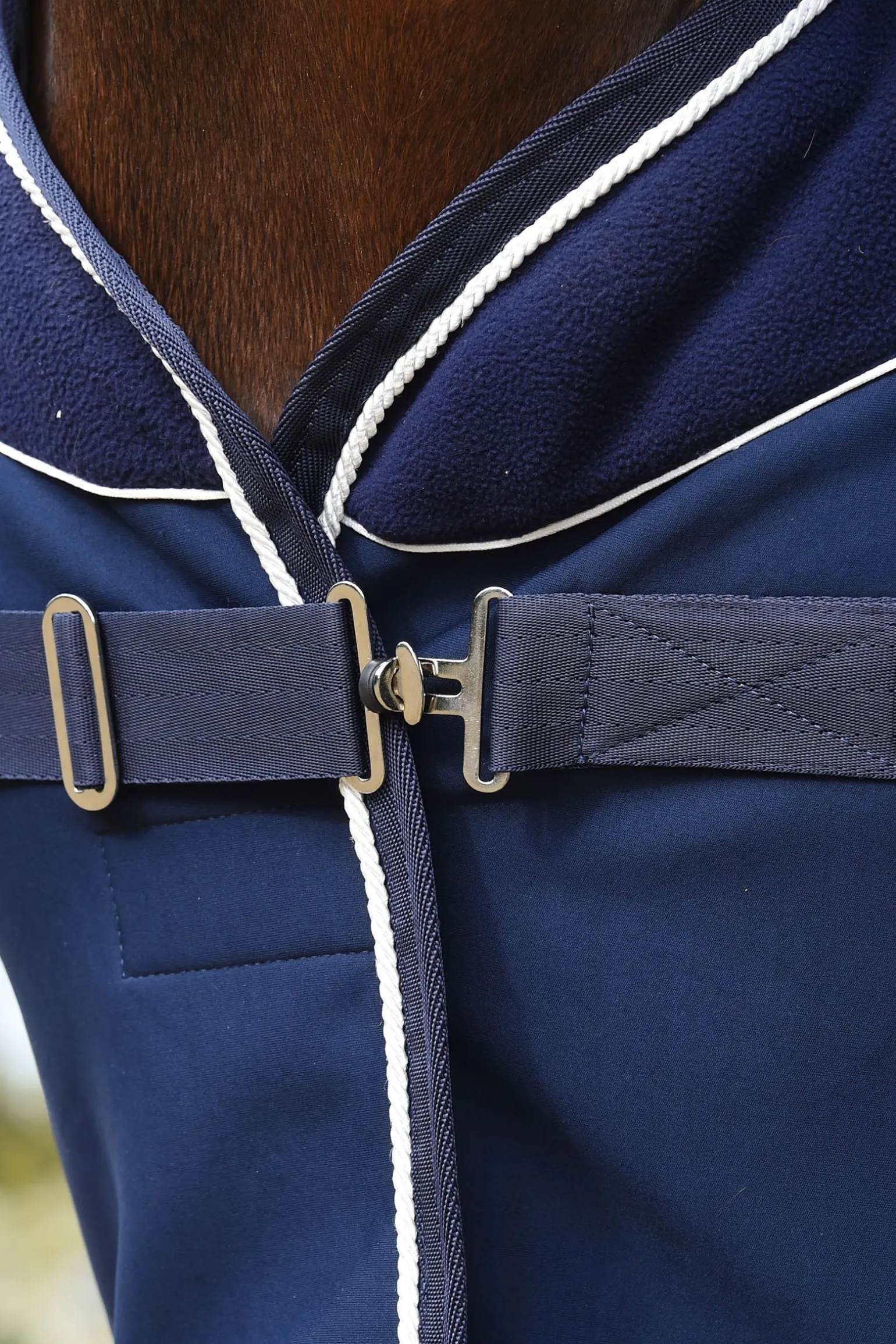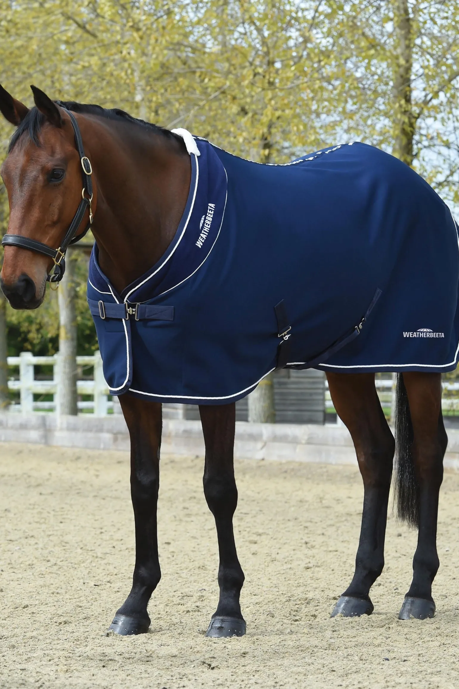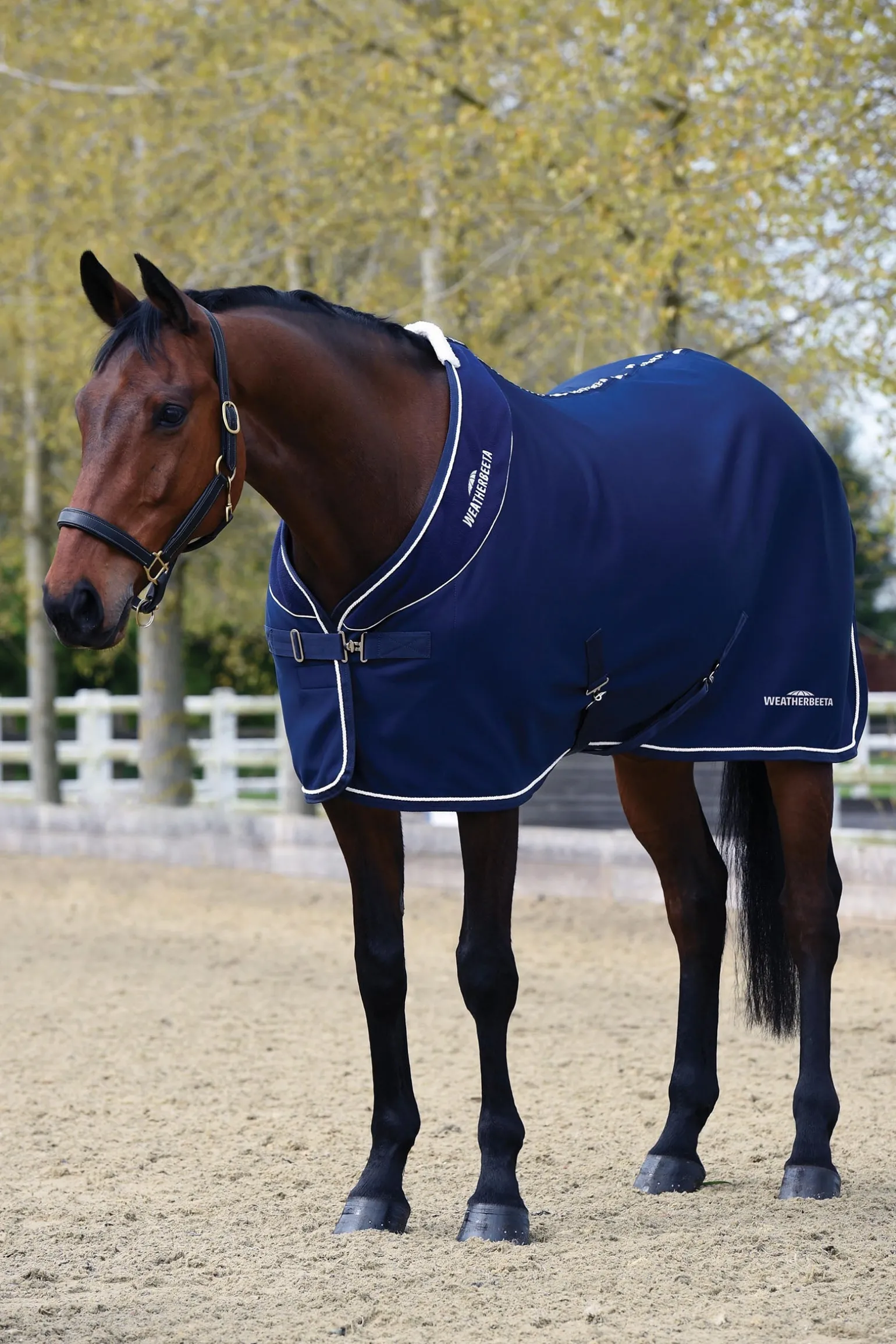 Die WeatherBeeta Opulence Decke mit Standardhalsausschnitt ist eine Turnierdecke, die nicht nur gut aussieht, sondern auch dafür sorgt, dass dein Pferd sauber, ordentlich und warm bleibt. Diese hochwertige Turnierdecke hat ein Fleece-Futter für mehr Komfort, während der äußere Stoff Schmutz und Heu abweist, damit die Decke bei Turnieren immer sauber bleibt. Der stilvolle Fleecekragen mit kontrastierenden Paspeln und dem gestickten WeatherBeeta-Logo am Halsausschnitt und am hinteren Teil gibt der Decke einen Hauch von Klasse. Diese Pferdedecke hat einen einfach verstellbaren Vordergurtverschluss mit Klettband, niedrige Kreuzgurte, Boa-Fleece am Widerrist für zusätzlichen Komfort und eine elastische PVC-Schweifkordel für einfache Reinigung.