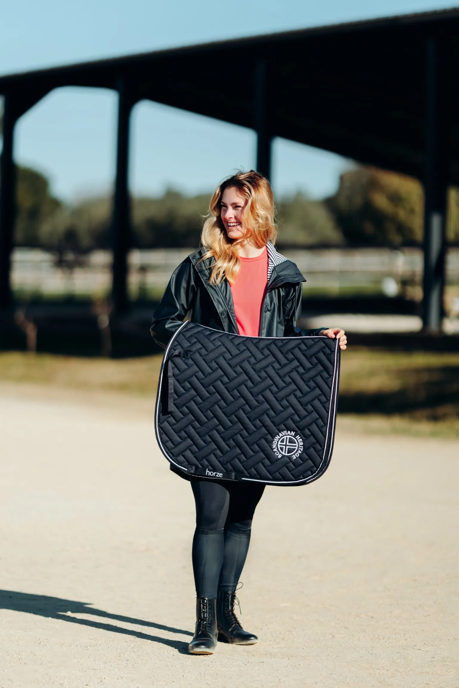 Unsere Horze Oslo Schabracke ist mit einem atmungsaktiven Futter ausgestattet, das dein Pferd im Sommer kühl hält, und mit einer gekreuzten Steppung, die für einen interessanten Look sorgt. Leuchtende Farben bringen Spaß in deine Reitausrüstung. Klett- und Gurtbandriemen halten die Schabracke an ihrem Platz. Kombiniere die Schabracke mit unseren Horze Olso Gamaschen und der Fliegenhaube für ein komplettes Outfit.