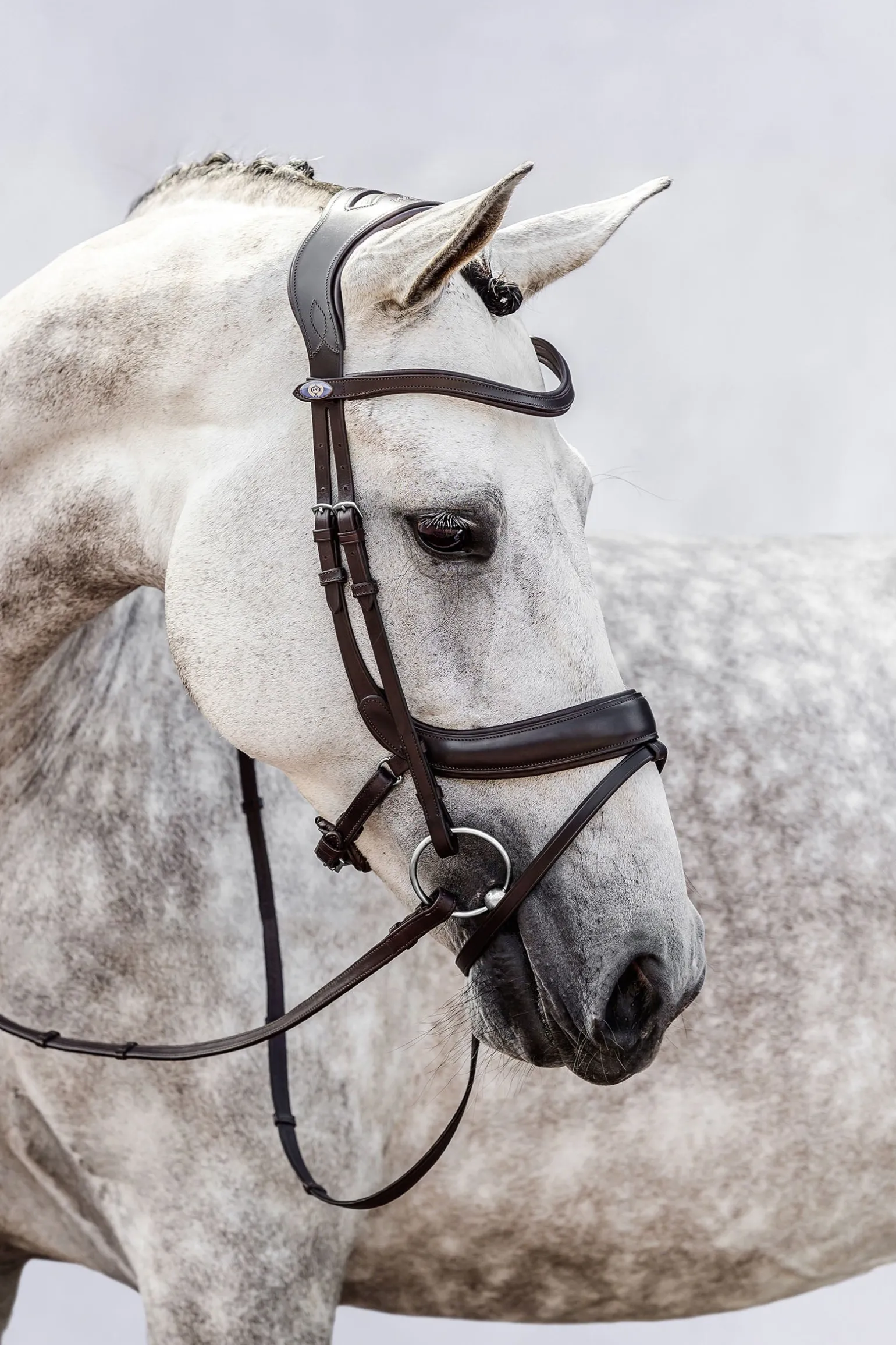 Diese Trense ist für das etwas sensiblere Dressurpferd konzipiert und teilt viele Merkmale mit der Paragon-Trense, wobei der größte Unterschied der Aachener Riemen an dieser Trense ist. Die Trense ist sowohl für Dressur als auch für Springen geeignet.