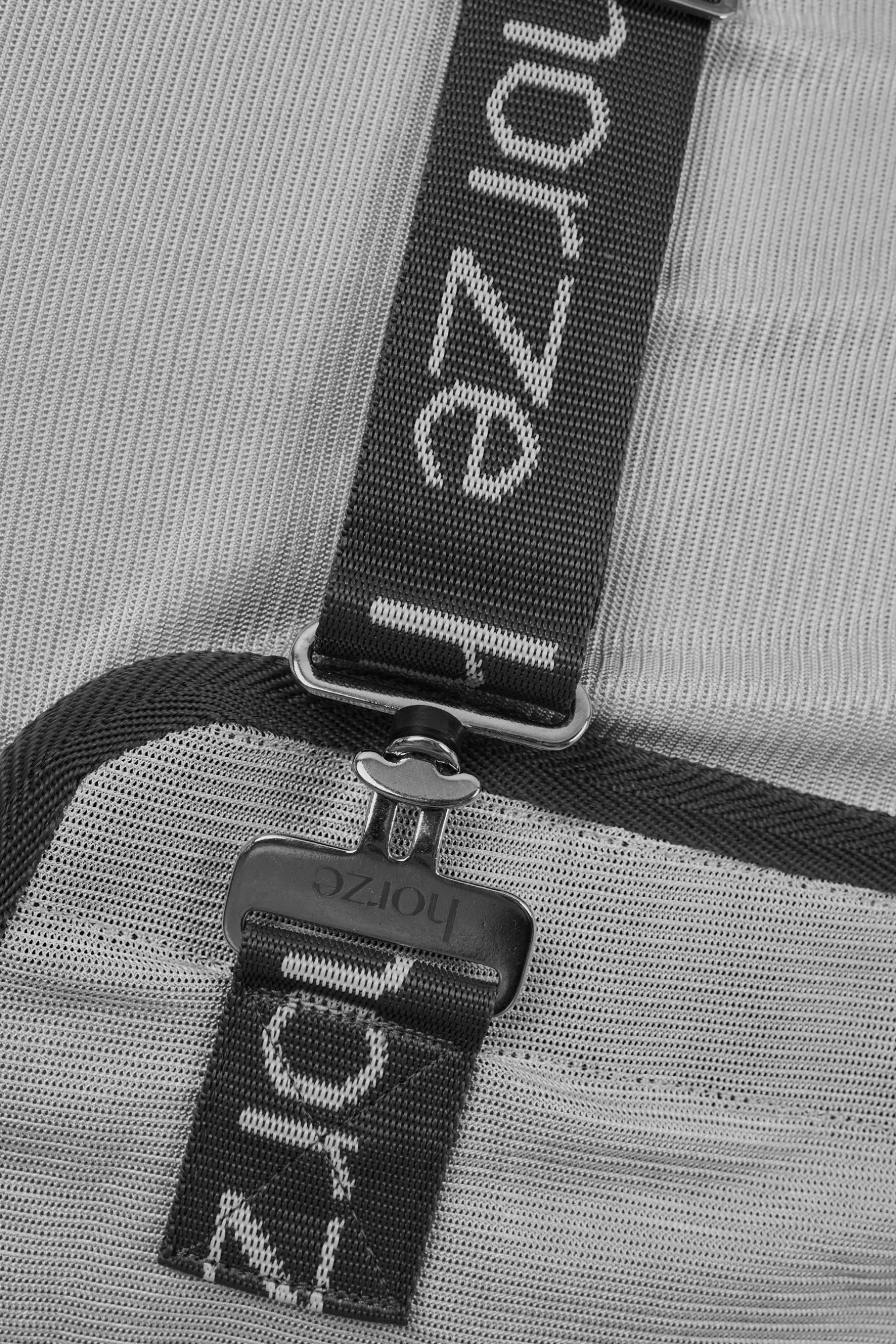 Die Paso Fino Fliegendecke mit Halsteil ist die perfekte Wahl, wenn dein Pferd besonders sensibel auf Fliegen reagiert. Das UV-schützende Netzgewebe ist atmungsaktiv und die helle Farbe verhindert, dass dein Pferd überhitzt. Das fixierte Halsteil reicht bis zu den Ohren und endet in einer „Kapuze“, um den Sitz des Halsteils zu sichern. Gehfalten erhöhen die Bewegungsfreiheit beim Laufen und das glatte Futter an Hals und Schultern verhindert Scheuerstellen. Der große Schweiflatz wird mit einem Schweifriemen gesichert und bietet maximale Abdeckung, genau wie der große Bauchlatz, der mit verstellbaren geraden Gurten und Klettverschluss geschlossen wird. Front- und Halsverschlüsse sind Zugverschlüsse mit starkem Klettverschluss. Das Logo-Tape entlang der Rückenlinie, der Frontverschlüsse und der Bauchgurte vervollständigt das Design dieser absolut durchdachten Fliegendecke.