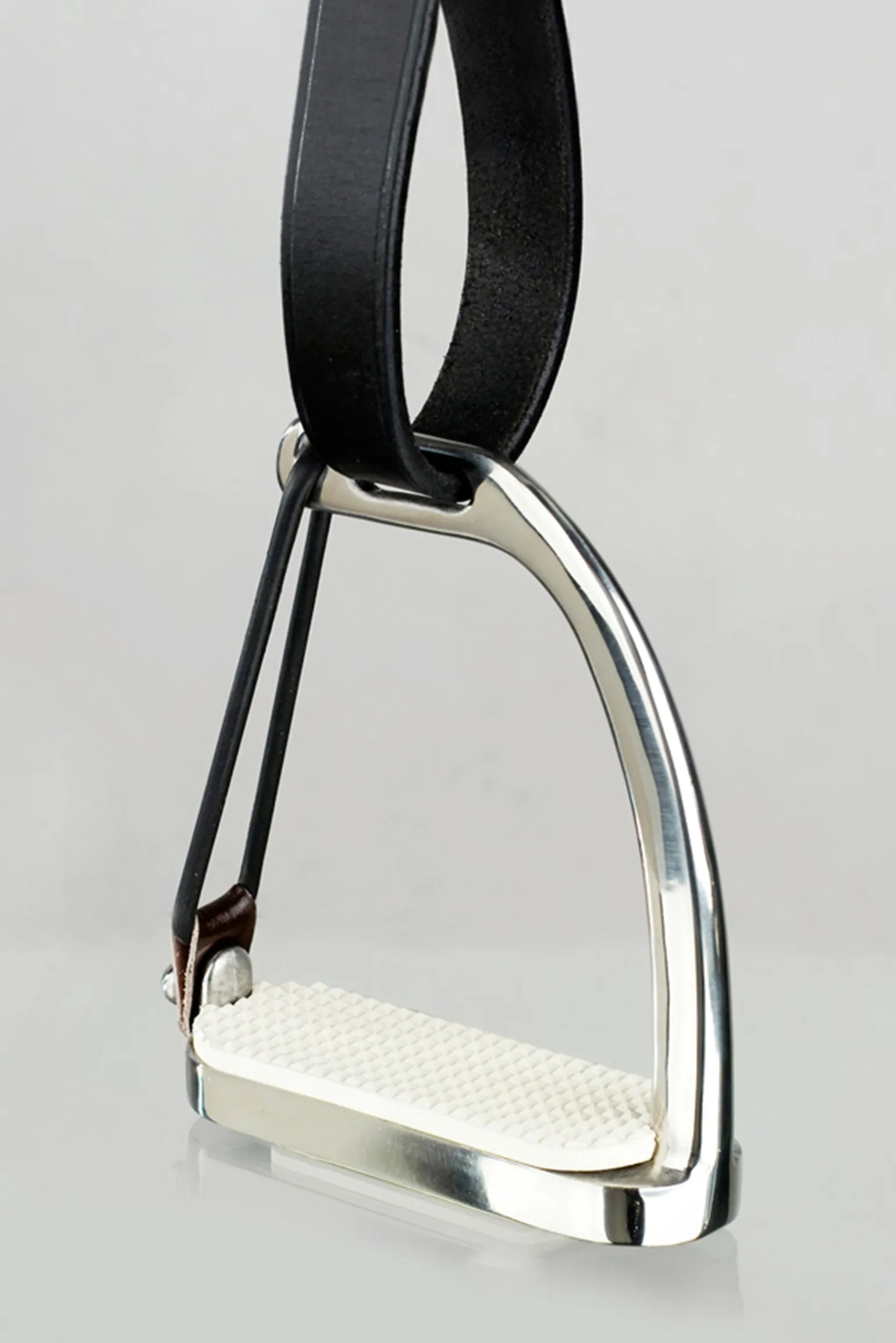 Sicherheitssteigbügel aus rostfreiem Edelstahl mit Gummi-Bändern und Gummi-Einlagen was ermöglicht, dass der Fuß beim Fallen schnell aus dem Bügel gezogen werden kann. Diese Steigbügel sind ideal für junge Reiter, Anfänger oder auch Springreiter. Das Gummiband löst sich und Ihr Fuß wird im Falle eines Unfalls freigegeben.