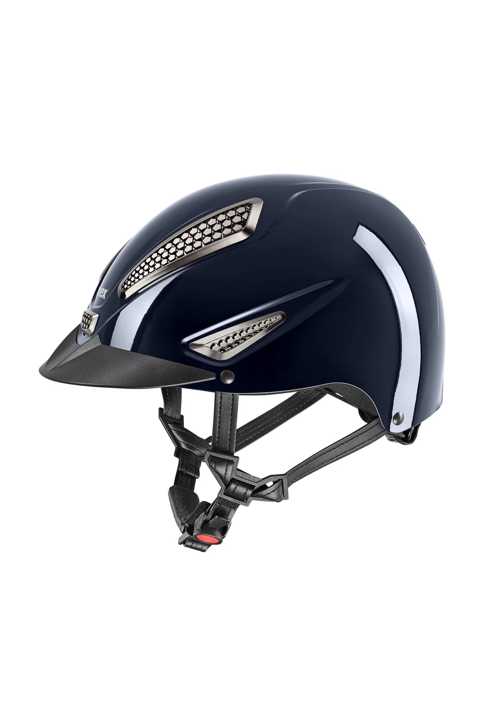 Vielseitig, elegant und super sicher. Die Weiterentwicklung des sportlichen Klassikers uvex perfexxion III xc setzt hohe Maßstäbe in Sachen Klimaregulierung, Sicherheit und Tragekomfort. Durch die schlanke, leichte und ergonomische Helmform eignet er sich perfekt für die Anforderungen sportlicher Reiter:innen. Besondere Bedeutung kommt dabei der innovativen, über den Nacken verlängerten Außenschale zu. Sie gewährleistet maximale Sicherheit am Hinterkopf – Dank Ponytail-Cut auch für Pferdeschwanz-Trägerinnen. Die uvex dynamic ventilation vereint zukunftsweisendes Design mit optimaler Klimaregulierung. Dank großer Luftkanäle in Kombination mit einer Wabenstruktur gewährleistet der Helm zu jedem Zeitpunkt ein optimales Klimamanagement. Die komfortable Innenausstattung unterstützt den Tragekomfort: Waschbare Pads aus soft-touch-Material und Memory Foam sowie die 3D IAS Größenregulierung garantieren jederzeit einen optimalen Sitz auf jedem Kopf.