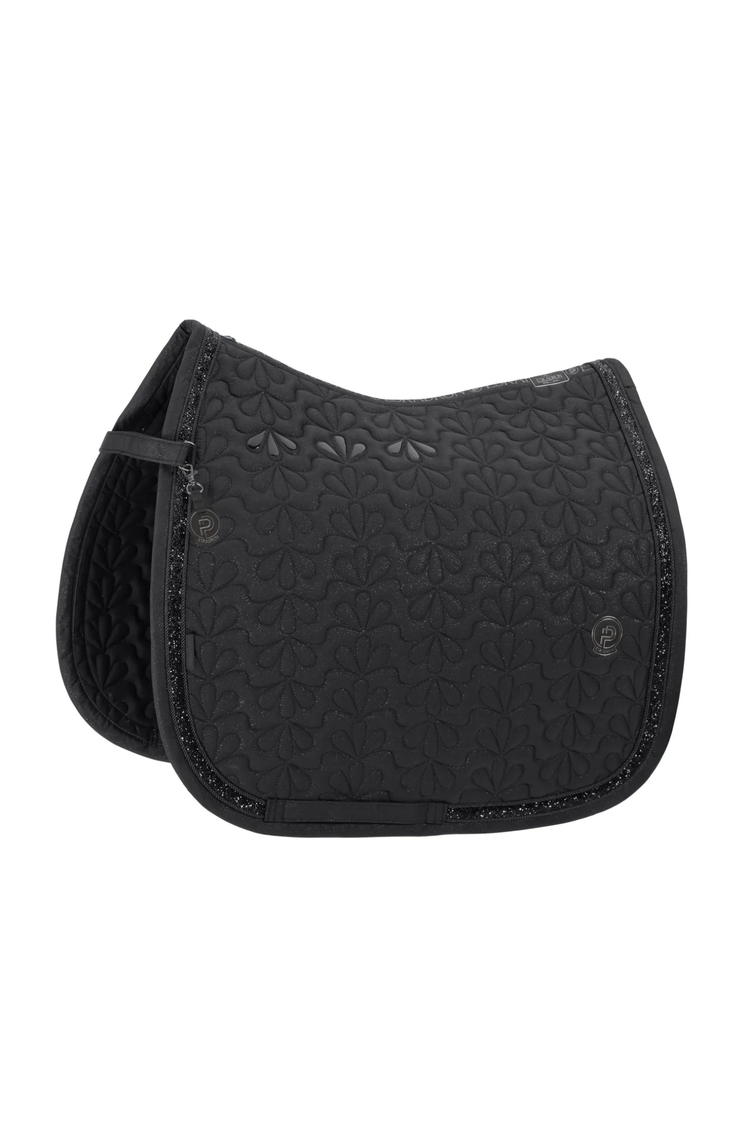 Diese elegante Schabracke verfügt über ein diskret funkelndes Außenmaterial und ein kühles, trockenes Innenfutter für ultimativen Komfort. Die detaillierte Steppung mit mitteldicker Füllung sorgt für Polsterung, während die Antirutsch-Silikonflächen im Sattelbereich für Stabilität sorgen. Eine edle Kordel- und Kristallkordel-Kombination an der funkelnden Einfassung verleiht der Schabracke Raffinesse. Das Platinum-Emblem auf beiden Seiten, der dekorative Schriftzug auf der Rückbinde und das Innostrap-System für eine optimale Frontfixierung vervollständigen das raffinierte Design. Der Gurtstrick mit dreifacher Fixierung sorgt für eine präzise Positionierung.