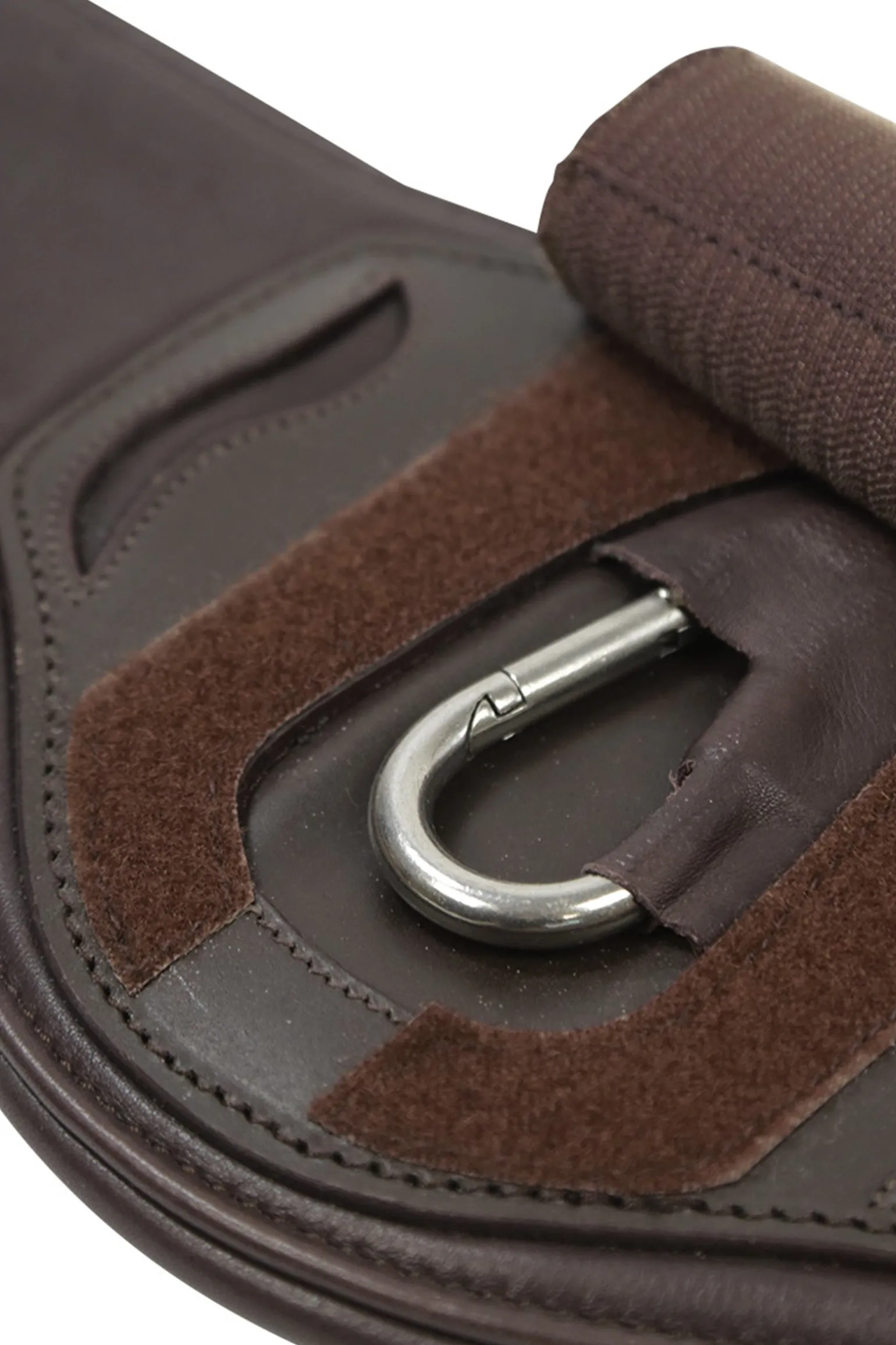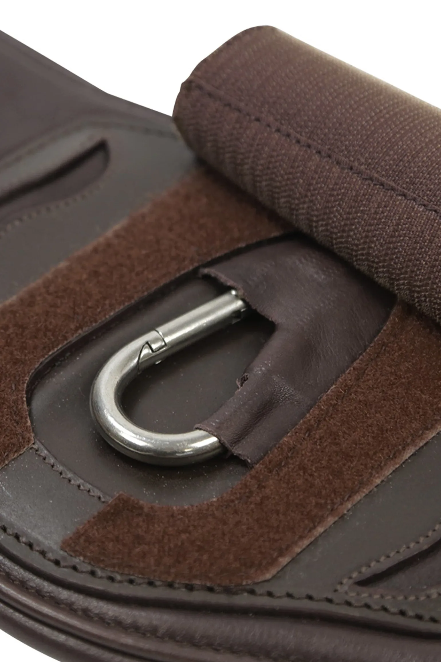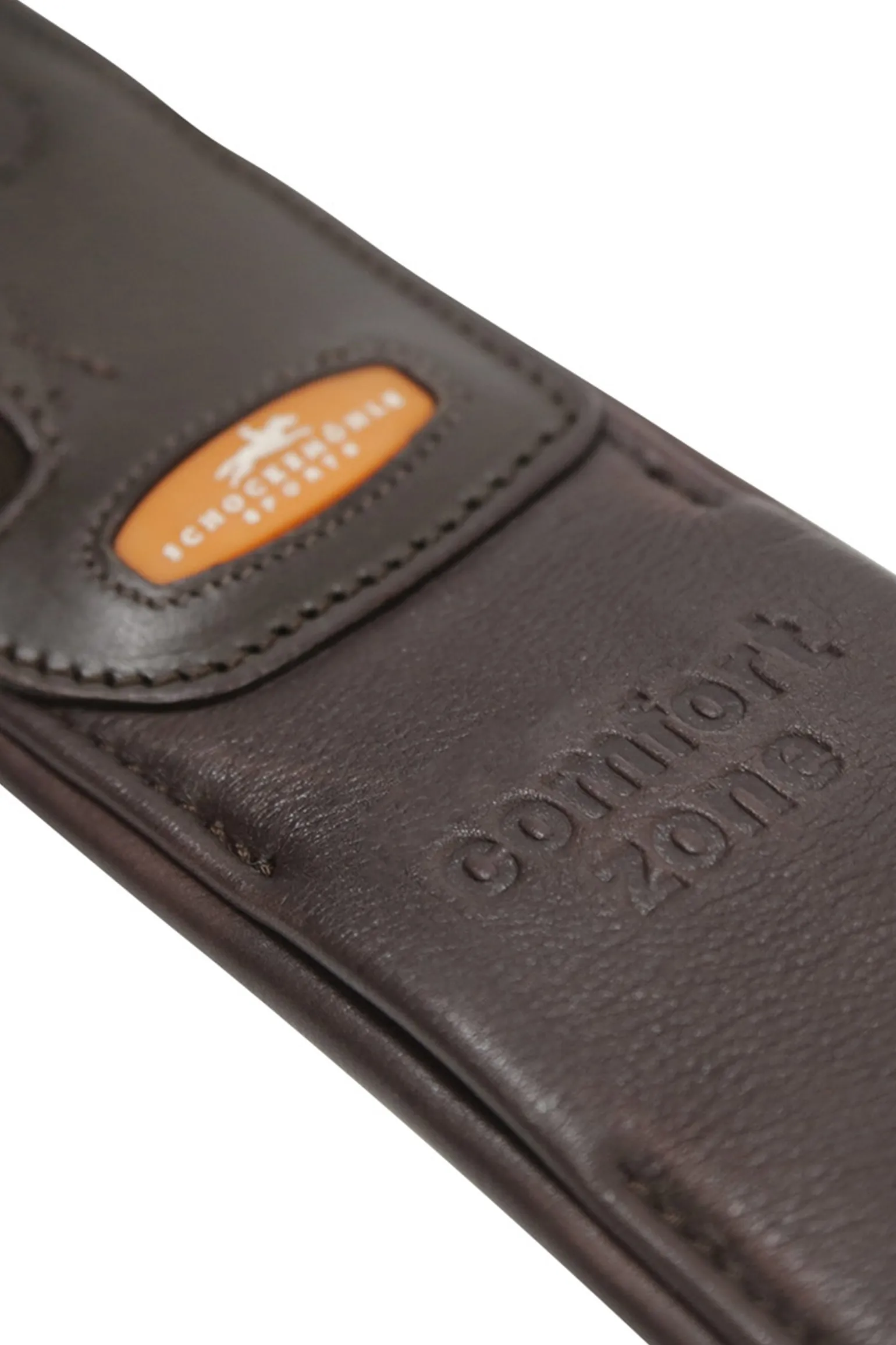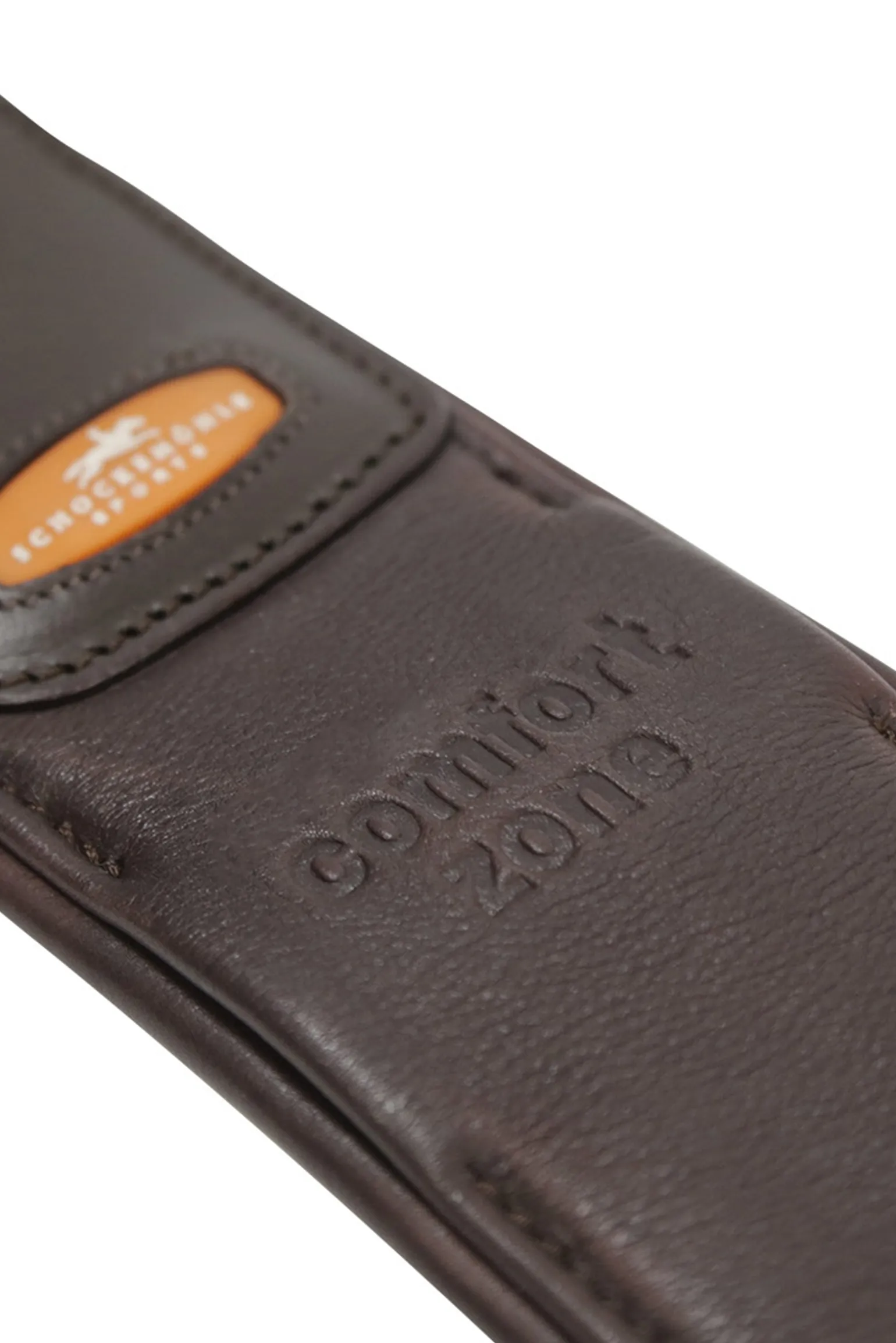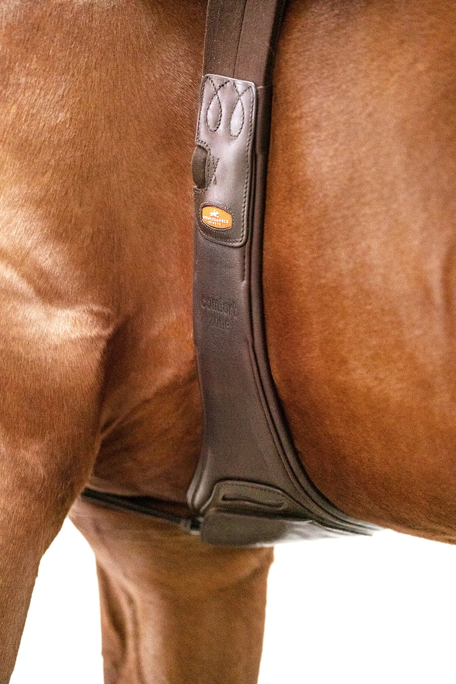 Portland ist ein neuer, anatomisch geschnittener Langgurt von Schockemöhle Sports. Der flach gearbeitete Teil des Gurtes im Bereich der Ellenbogen des Pferdes ermöglicht maximale Bewegungsfreiheit. Zudem verteilt der breitere, etwas festere Mittelteil des Gurtes den Druck am Brustkorb jetzt noch besser. Der Langgurt Portland besteht aus genarbtem Softleder und verfügt in der Mitte über einen großen Karabiner, der das Einschnallen des Vorderzeugs erleichtert. Für noch mehr Sicherheit abgedeckt werden kann der Karabiner mit der großen Lederklappe. Zwei seitliche D-Ringe bieten noch mehr Optionen zum Verschnallen von Hilfszügeln. Der in black/silver und brown/silver verfügbare Sattelgurt kommt mit beidseitigem dreilagigen Elastik und massiven Rollenschnallen mit weicher Polsterung daher.