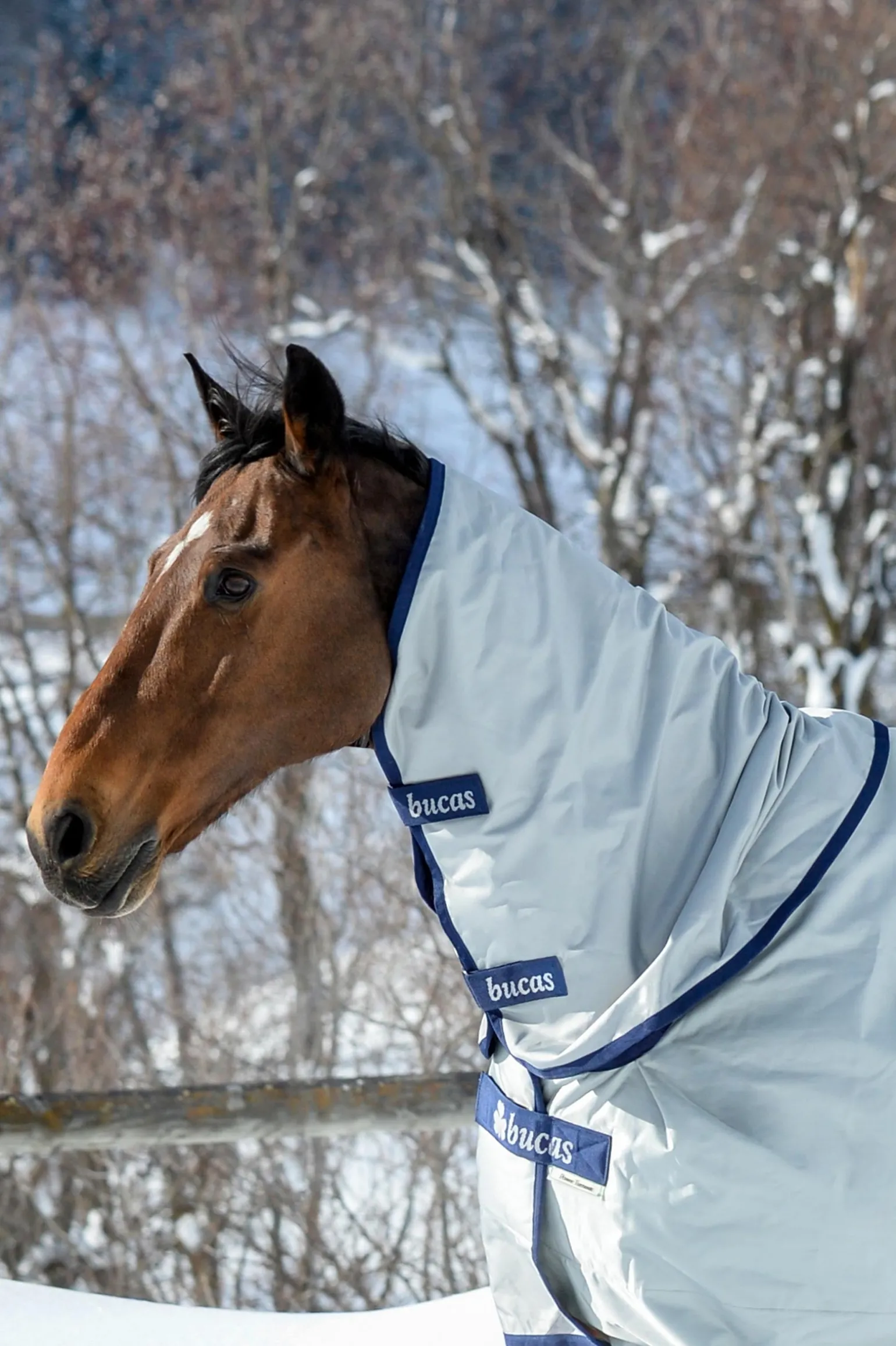 Das Bucas Power Halsteil ist mit einem glatten Futter zum Schutz der Mähne ausgestattet und enthält zusätzlich das spezielle Bucas Stay-dry Fleece. Es kann wie eine Abschwitzdecke auf ein nasses Pferd gelegt werden, wodurch ein Deckenwechsel vermieden wird.