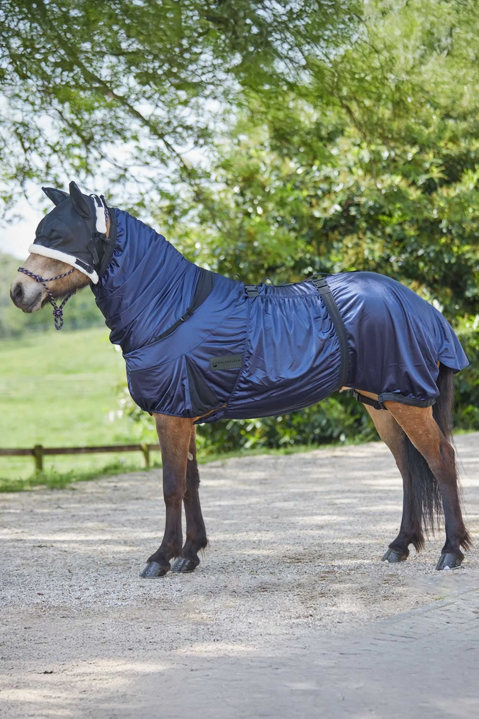 Sicherer Rundum-Schutz für Ekzemerpferde aus speziellem atmungaktivem Funktions-Faserstoff mit fixiertem Halsteil und breitem Bauchlatz. Ausreichend Bewegungsfreiheit durch elastischen Einsatz im Schulterbereich und am Halsansatz. Lieferung ohne Maske. Inklusive Reparatur-Set.