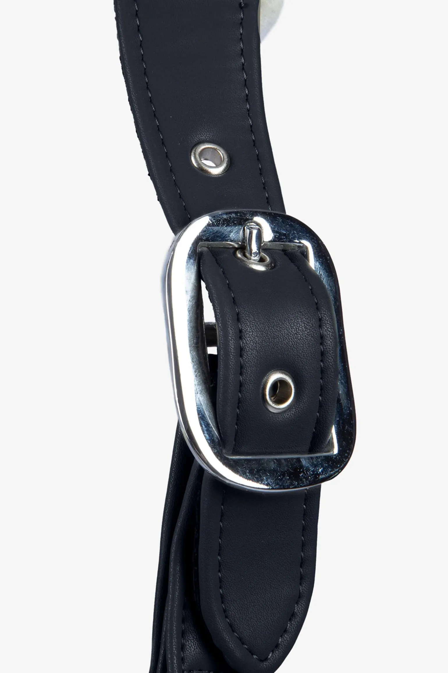 Hochwertiges Halfter aus PU-Leder, passend zu deinen Gamaschen und Hufglocken. Anatomisch geformt, gepolstert für hohen Tragekomfort und mit Nylon-Gurtband verstärkt. Ausgestattet mit langlebigen Edelstahl-Schnallen und einem gestickten PS-Logo.