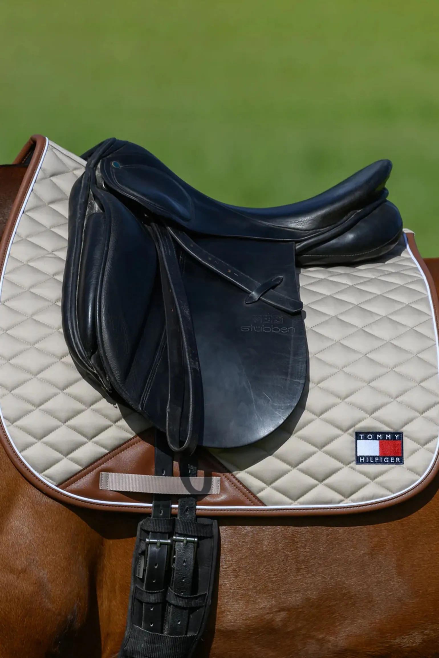 Die Tommy Hilfiger Equestrian Princeton Dressurschabracke vereint Eleganz mit Funktionalität. Mit einer edlen Kunstlederverzierung und klassischer Rautensteppung bietet sie einen stilvollen und zugleich praktischen Look. Das Tommy Hilfiger Logo auf beiden Seiten setzt einen markanten Akzent, während das waffelstrukturierte Innenfutter für Atmungsaktivität und Feuchtigkeitsregulierung sorgt. Hergestellt aus veganem Material, garantiert diese Schabracke Komfort und Nachhaltigkeit bei jeder Reiteinheit.
