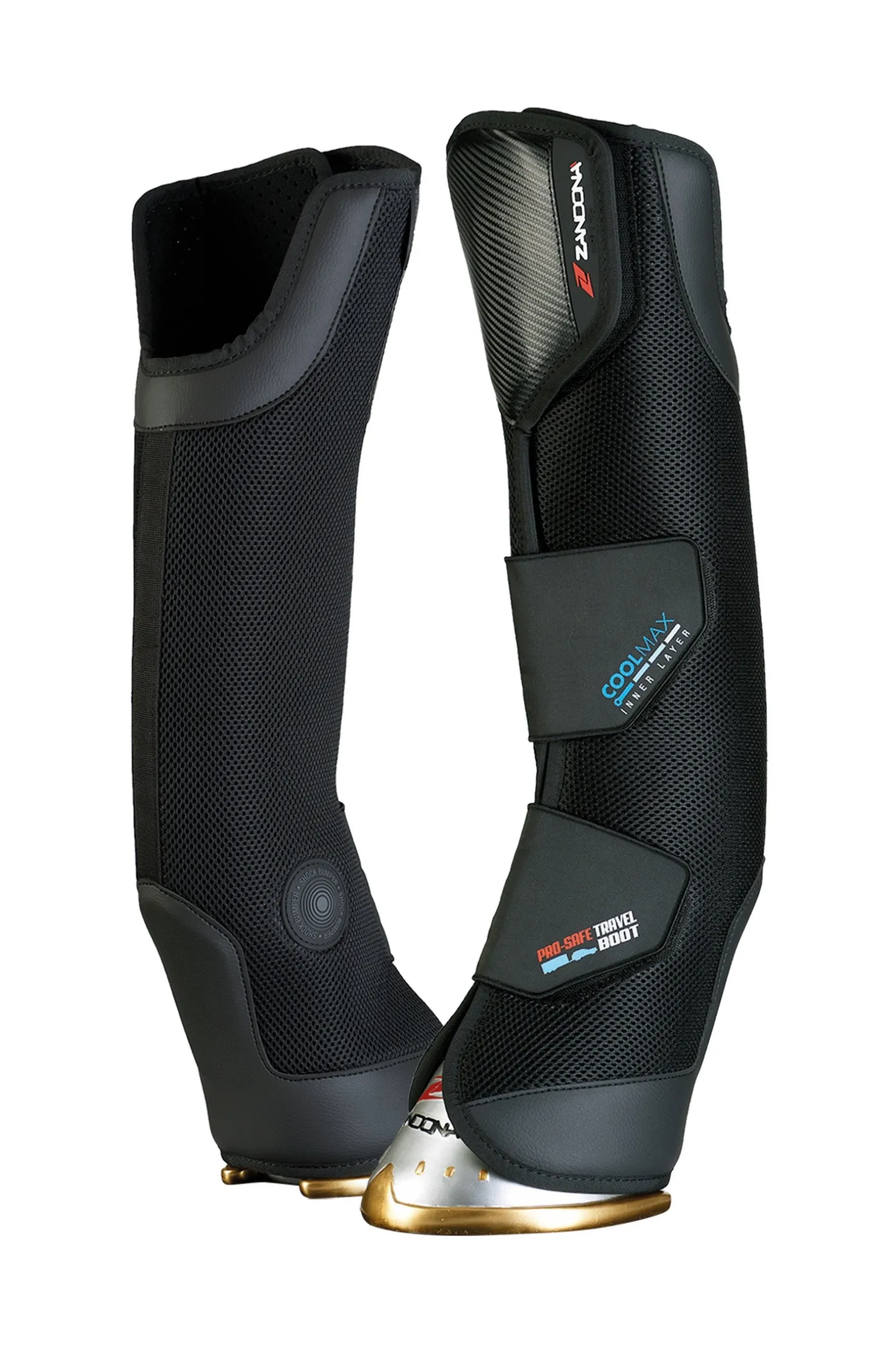 Dank der inneren Beschichtung aus Coolmax®, das Schweiß ableitet, garantieren die Pro-Safe Transportgamaschen eine hohe Atmungsaktivität, um die Gliedmaßen des Pferdes während des Transports immer gut belüftet zu halten.
