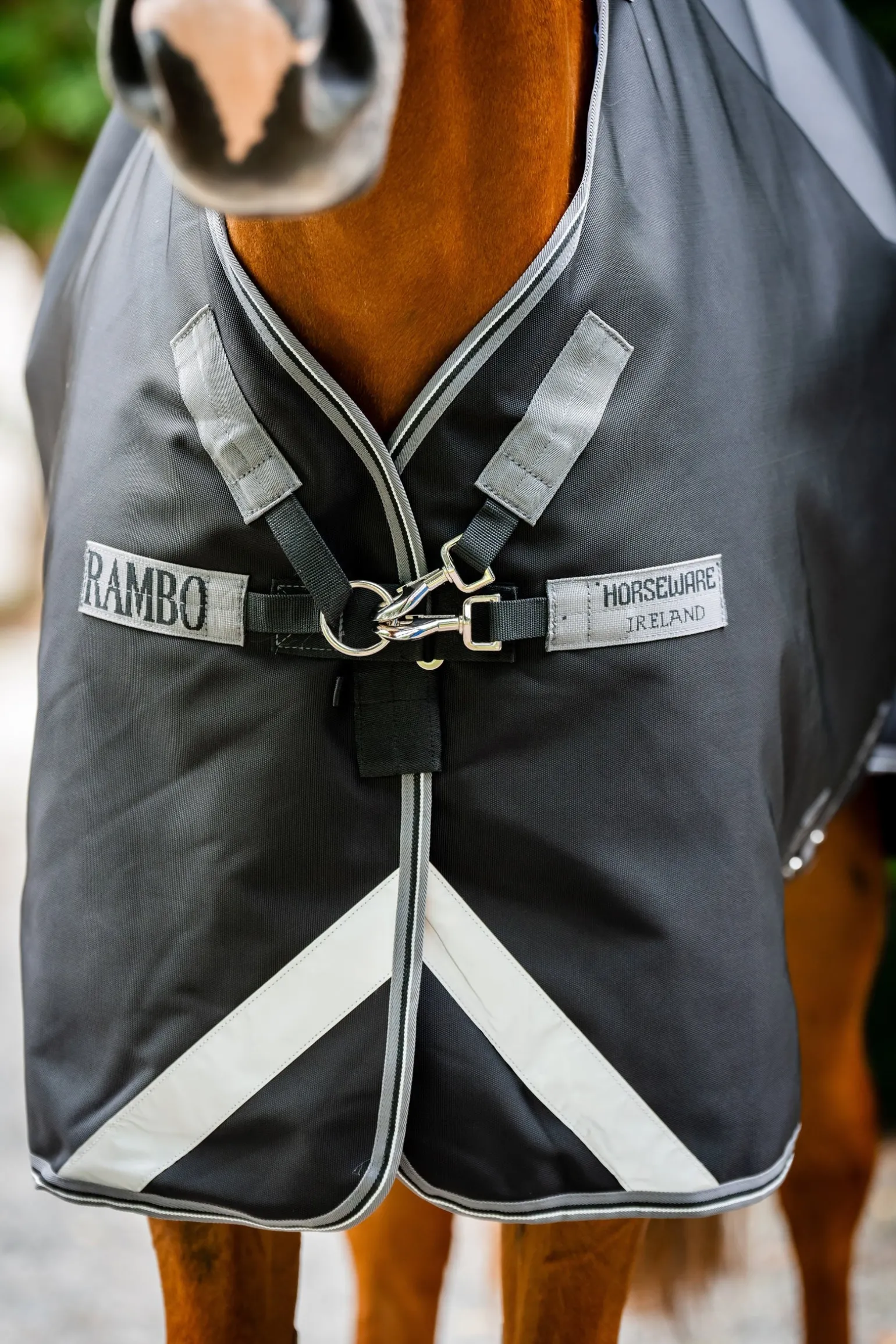Die Rambo® 1680D Plus Turnout 100 g macht ihrem Namen und ihrer Leistung alle Ehre! Die ultimative wasserdichte Outdoordecke mit abnehmbarem Halsteil ist jetzt noch robuster. Das strapazierfähige Außenmaterial bietet zuverlässigen Schutz vor den Elementen, während die 100 g thermogebundene Faserfüllung leichte Wärme mit außergewöhnlicher, langanhaltender Wärmespeicherung bietet, um dein Pferd oder Pony bei milderen Bedingungen angenehm zu wärmen. Unser Surefit-Halsausschnitt mit V-Verschluss und Vorderbeinausschnitten ermöglicht uneingeschränkte Bewegungsfreiheit. Drei sichere Kreuzgurte mit unserem bewährten Rambo® Safety Surcingle System sorgen weiterhin für sicheren und bequemen Sitz. Das antistatische und antibakterielle Innenfutter erhöht sowohl den Tragekomfort als auch die Hygiene. Mit reflektierenden Streifen, leicht zu reinigendem Schweifriemen, wasserdichter Schweifabdeckung und glanzverstärkendem Polyesterfutter ist diese Outdoordecke zudem mit unserem Liner-System für noch mehr Vielseitigkeit kompatibel. Das abnehmbare Supreme-Halsteil mit Klettverschluss bietet zusätzliche Flexibilität und Schutz bei wechselhaftem Wetter.
