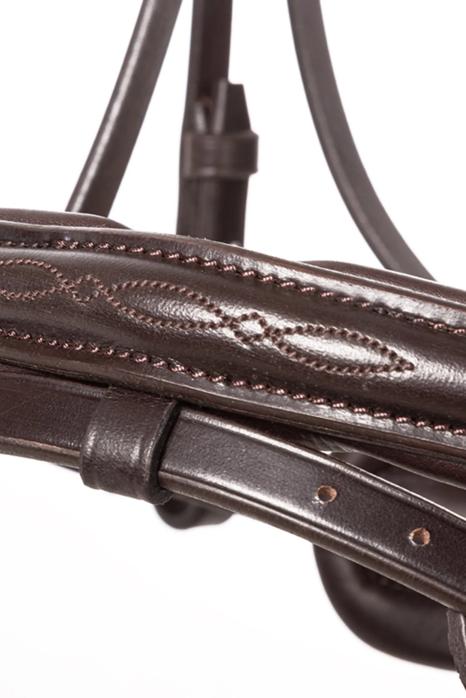 Die Dressurtrense Robin besteht aus hochwertigem deutschen Qualitätsleder sowie einem besonders weichen Genickstück, welches stark anatomisch geformt ist mit Einschnitt. Die weiche Polsterung vom Nasenriemen und Stirnband bieten ebenfalls einen besonderen Komfort für das Pferd. Das Reithalfter ist beidseitig verstellbar. Der Trensenzaum wird ohne Zügel geliefert.