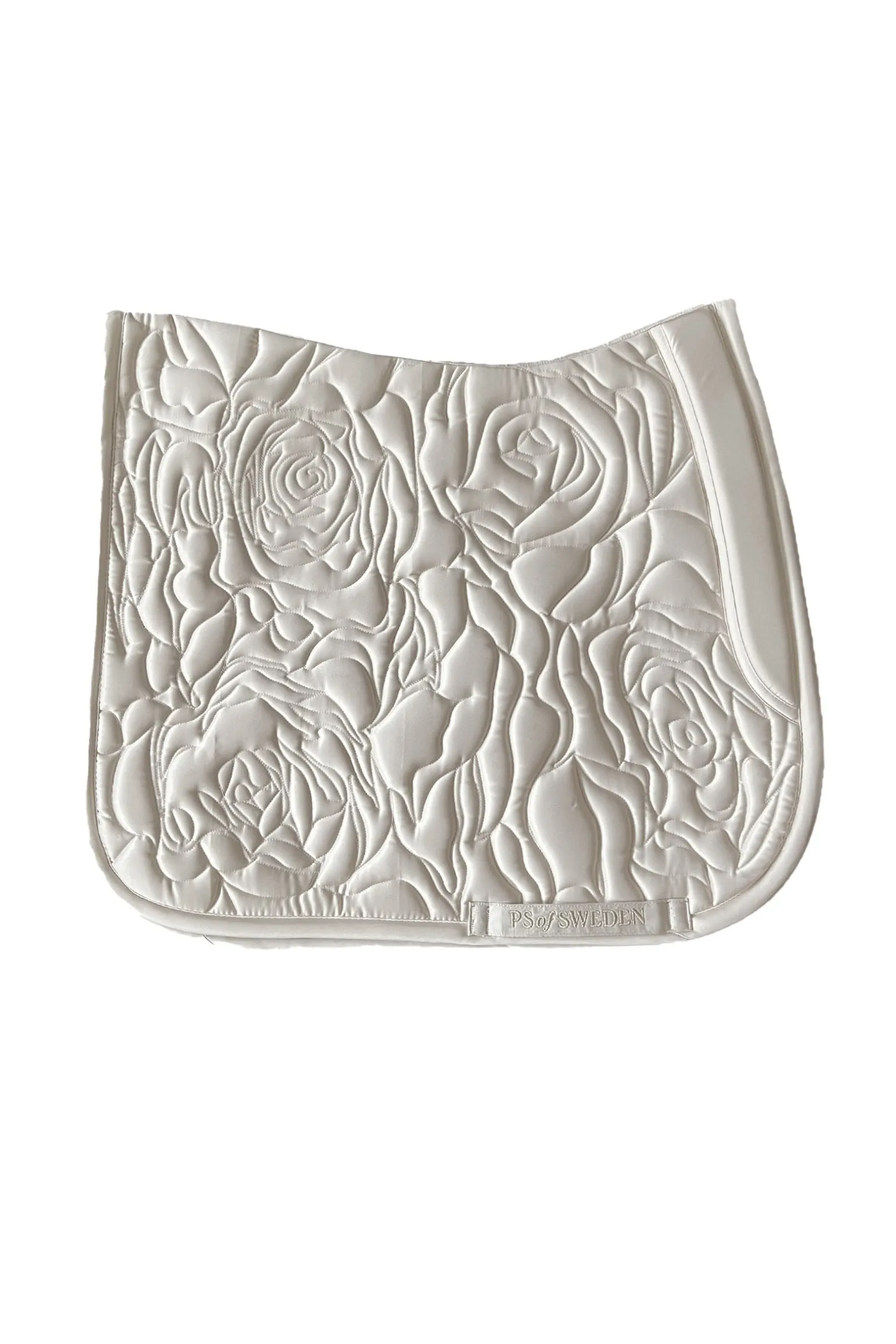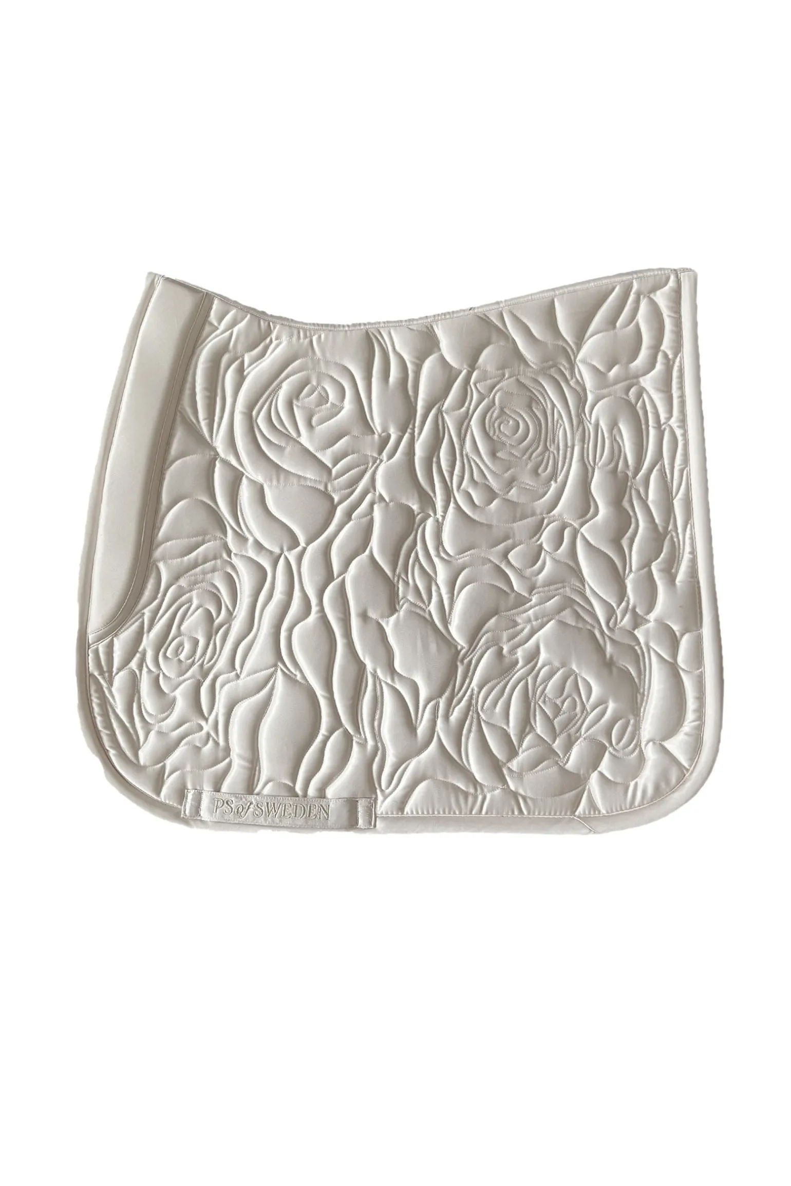 Die PS of Sweden Rose Quilt Dressage Saddle Pad vereint Eleganz und Funktionalität. Mit einem einzigartigen, handgezeichneten Rosensteppmuster bietet sie ein anatomisches Design mit zusätzlichem Platz für den Widerrist, um eine optimale Passform zu gewährleisten. Stopppolster verhindern das Verrutschen, während das weiche Mesh-Futter Luft und Feuchtigkeit durchlässt und so für optimale Atmungsaktivität sorgt. Die hochwertige glänzende Oberfläche verleiht einen luxuriösen Look, und das schmutzabweisende Obermaterial erleichtert die Pflege. Schnell trocknend nach jeder Reiteinheit ist diese Schabracke sowohl stilvoll als auch praktisch für das tägliche Training und den Wettkampf.