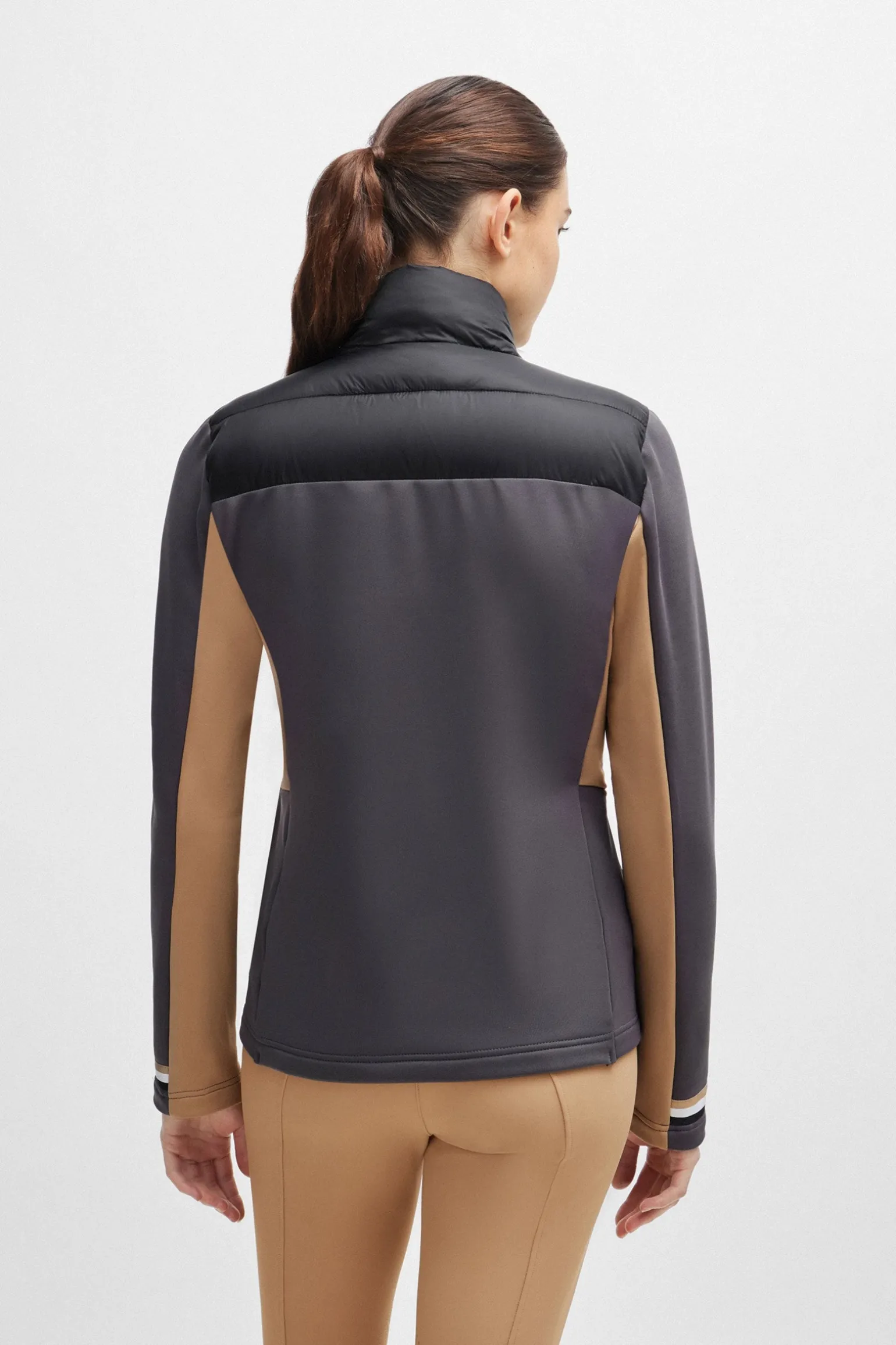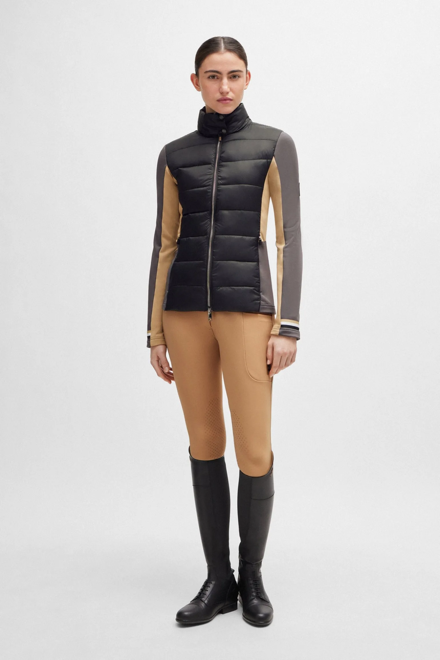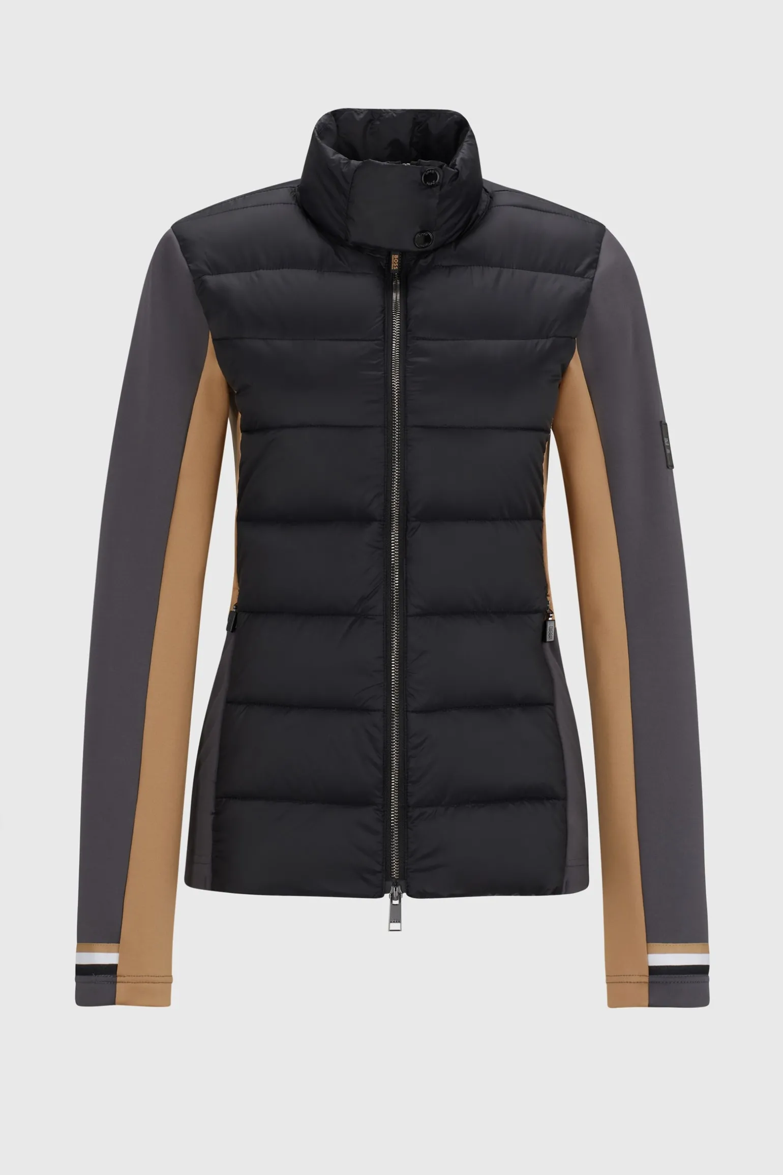 Leichter 2nd Layer Mix aus Puffer- und Softshelljacke. Softshell-Faser an Ärmeln und Seitenteilen, Vorderteil und oberer Rücken aus Puffer-Nylon mit Füllung.