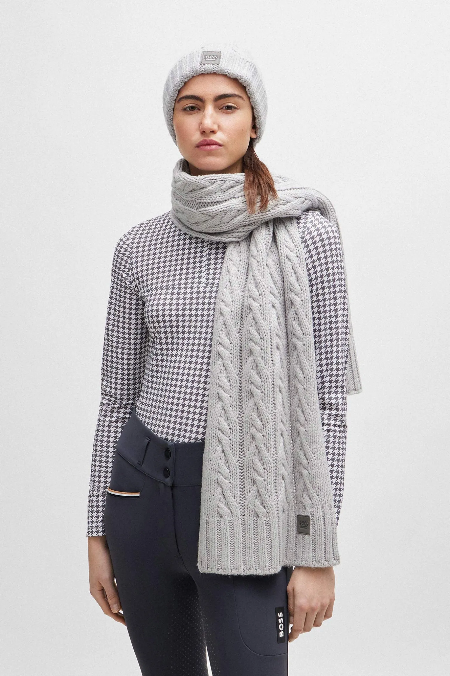 Der Schal in Zopfstrick ist superweich, ultraleicht und warm mit zusätzlichem Fleece auf der Innenseite, das wie ein Stirnband gearbeitet ist, für maximalen Komfort.