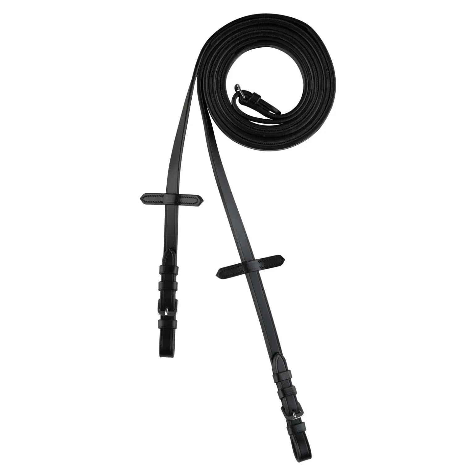 Diese schmalen Zügel bestehen aus Leder mit Gummi auf der Innenseite, das für einen sicheren Halt und einfaches Säubern sorgt. Die rostfreien Stahlschnallen sind robust und leicht an jeder Trense zu befestigen.