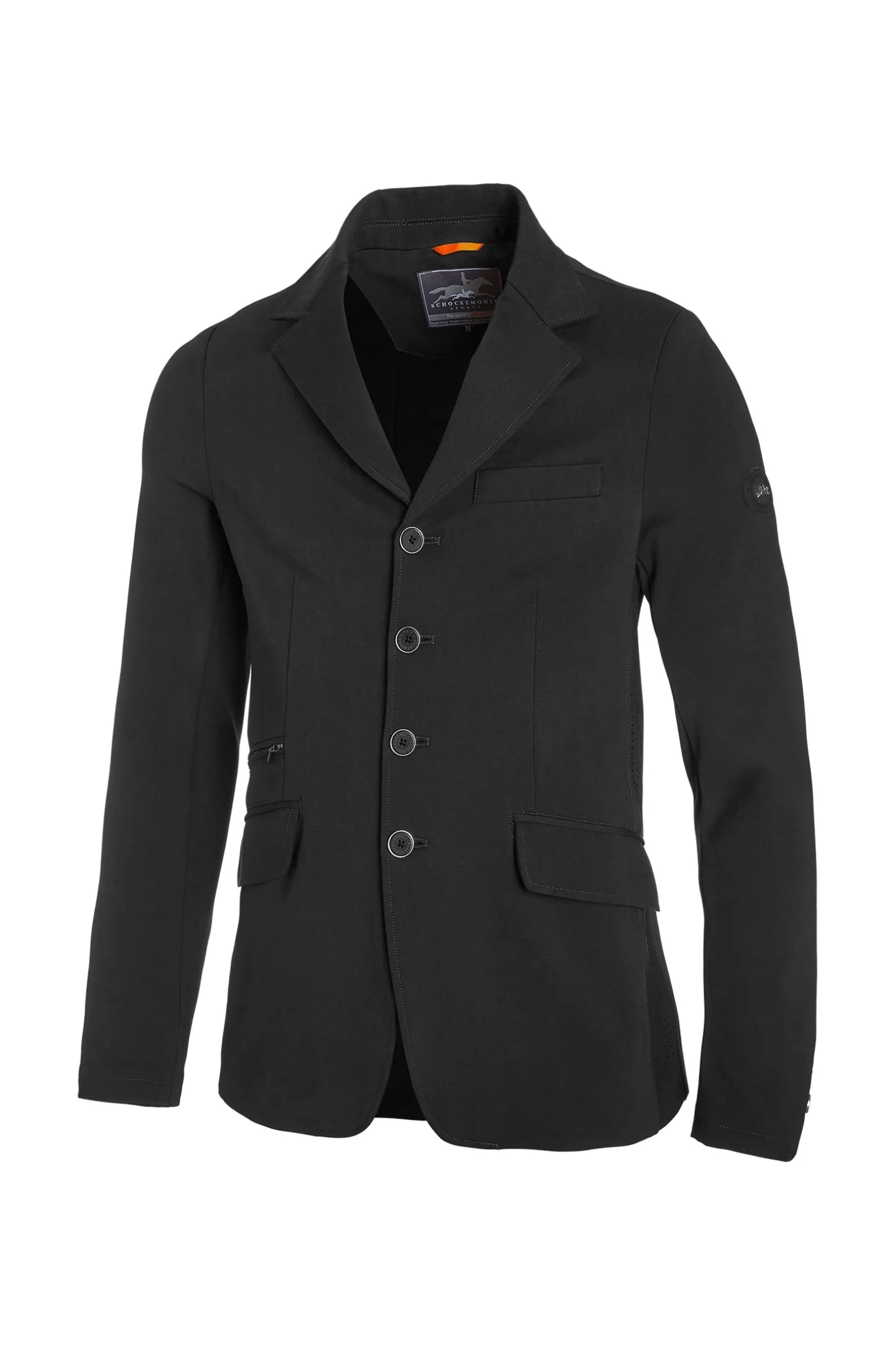 Schlicht, schön und funktional ist das Herren Jacket Ringo Show Jacket von Schockemöhle Sports. Neben seinem atmungsaktivem und schnelltrocknenden Material verfügt das Sakko über praktische Details wie perforierte Seitenteile und Bewegungsschlitze am Rückenteil. Auch optisch macht das Sakko Ringo Show Jacket richtig was her: Die körpernahe Form schmiegt sich dank elastischem Material optimal an. Der Reverskragen und die Brustleistentasche links sind ebenso schön anzuschauen. Die Verschlussleiste mit Logo Knöpfen und einem verdeckten Reißverschluss sorgen mit Rubber Badge auf dem linken Ärmel und den Pattentaschen für einen stylischen Auftritt auf dem Turnier.