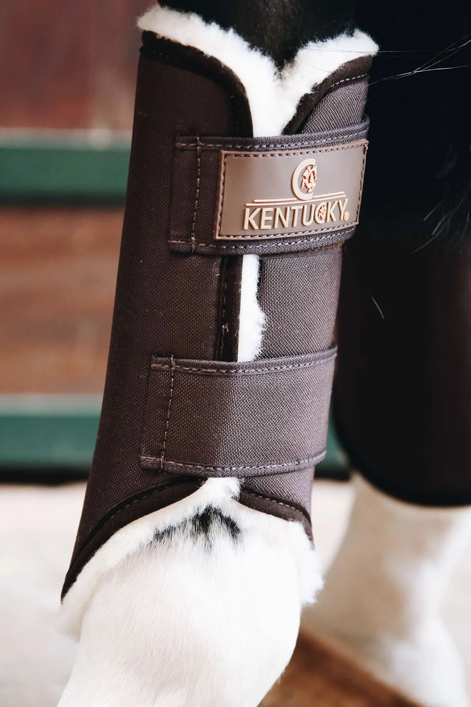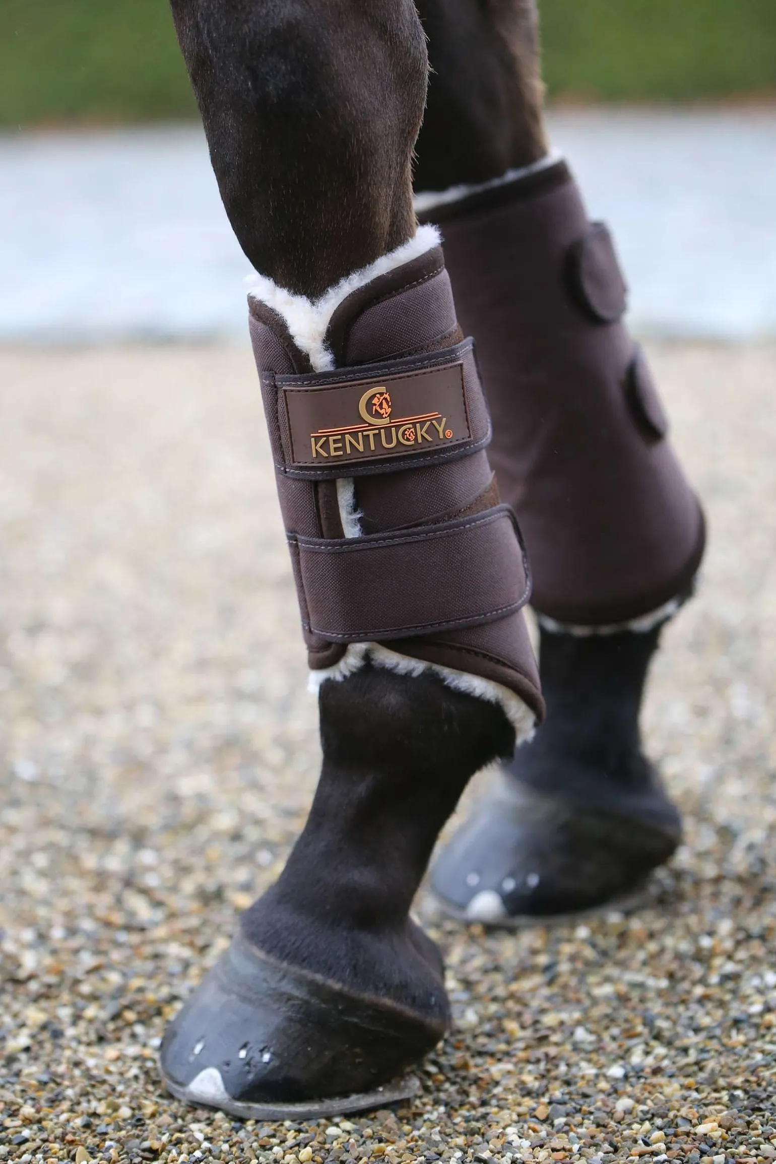 Wenn es um brilliantes Design in Verbindung mit überragender Performance geht, sind die Kentucky Horsewear Gamaschen führend bei Top Reitern weltweit. Diese Arbeitsgamaschen sind brandneu – sie bestechen durch eine klassische Optik und feinste Verarbeitung. Die Kentucky Solimbra Turnout Boots Arbeitsgamaschen bestehen aus dem starken 100%ig wasserdichten Solimbra Material mit Kunstlammfell-Innenfutter und EVA Schutz. Sie sind die Lösung für Reiter, die qualitativ hochwertige Gamaschen für den täglichen Gebrauch benötigen ohne allzu tief in die Tasche greifen zu müssen. Die Kentucky Solimbra Turnout Boots Arbeitsgamaschen sind anatomisch geformt, haben 2 große, sichere Klettverschlüsse, sind 100% atmungsaktiv und leicht zu reinigen. Einfach die ideale Wahl für Reiter aller Diziliplinen und Levels. Die hinteren Gamaschen sind etwas länger, als die voderen.