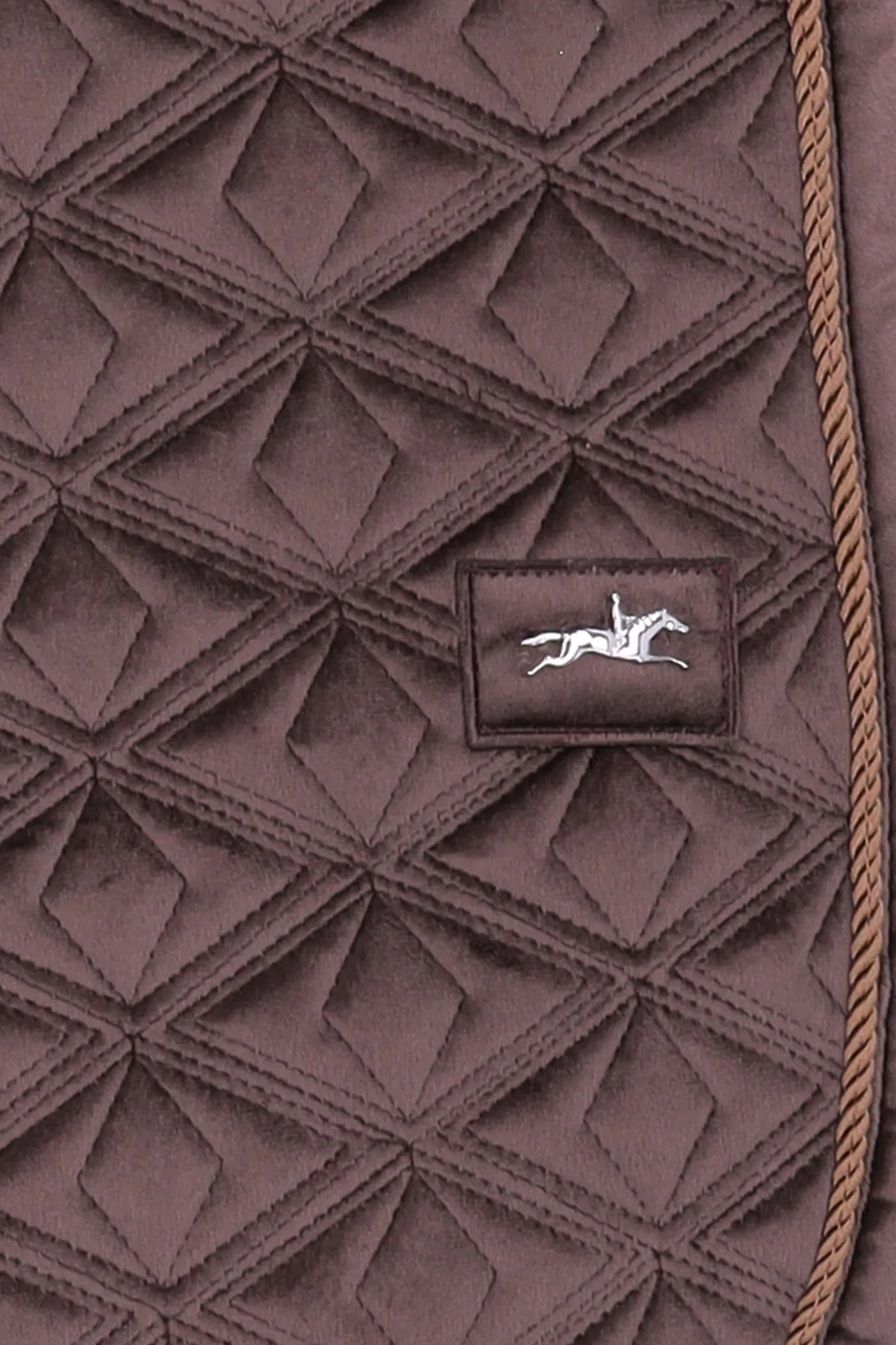 Die Saddle Pad Velvet Style ist eine edle Samt-Schabracke mit einer schnell trocknenden Rückseite, die für optimalen Komfort sorgt. Dezent dekoriert mit einer Kordel und einem hochwertigen Logopferd aus Metall, besticht sie durch modernes Steppmuster und elegantes Design.