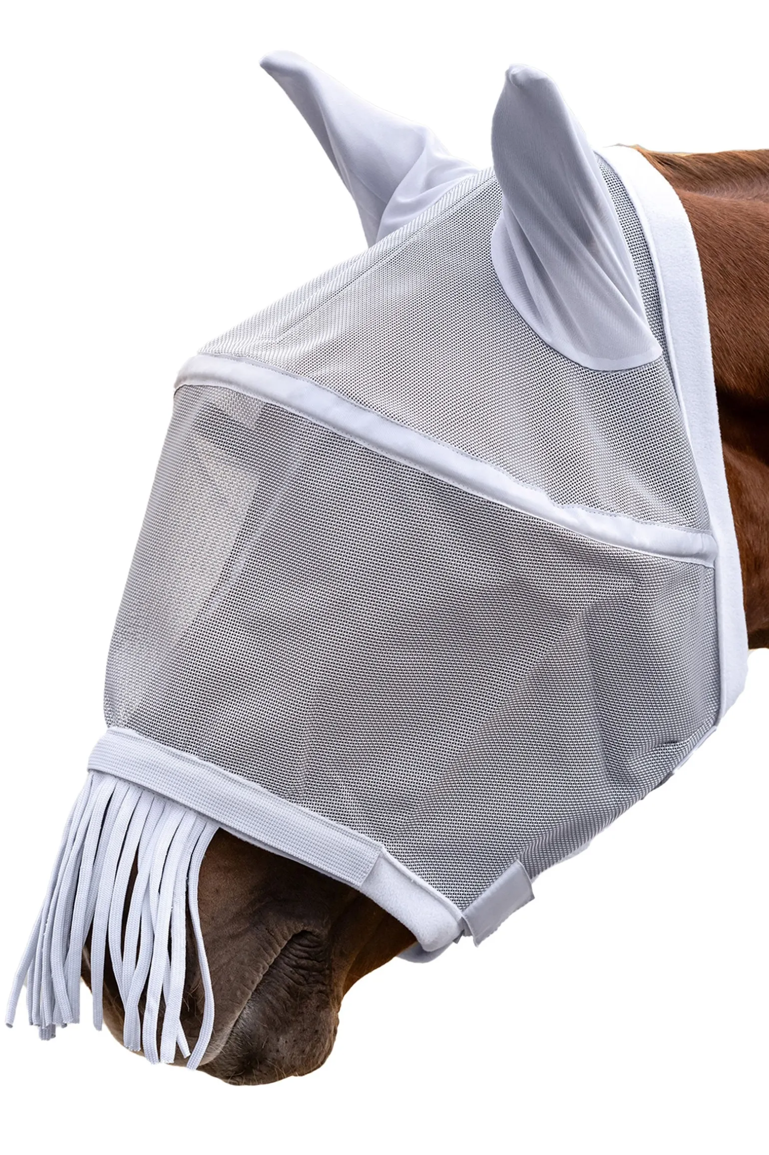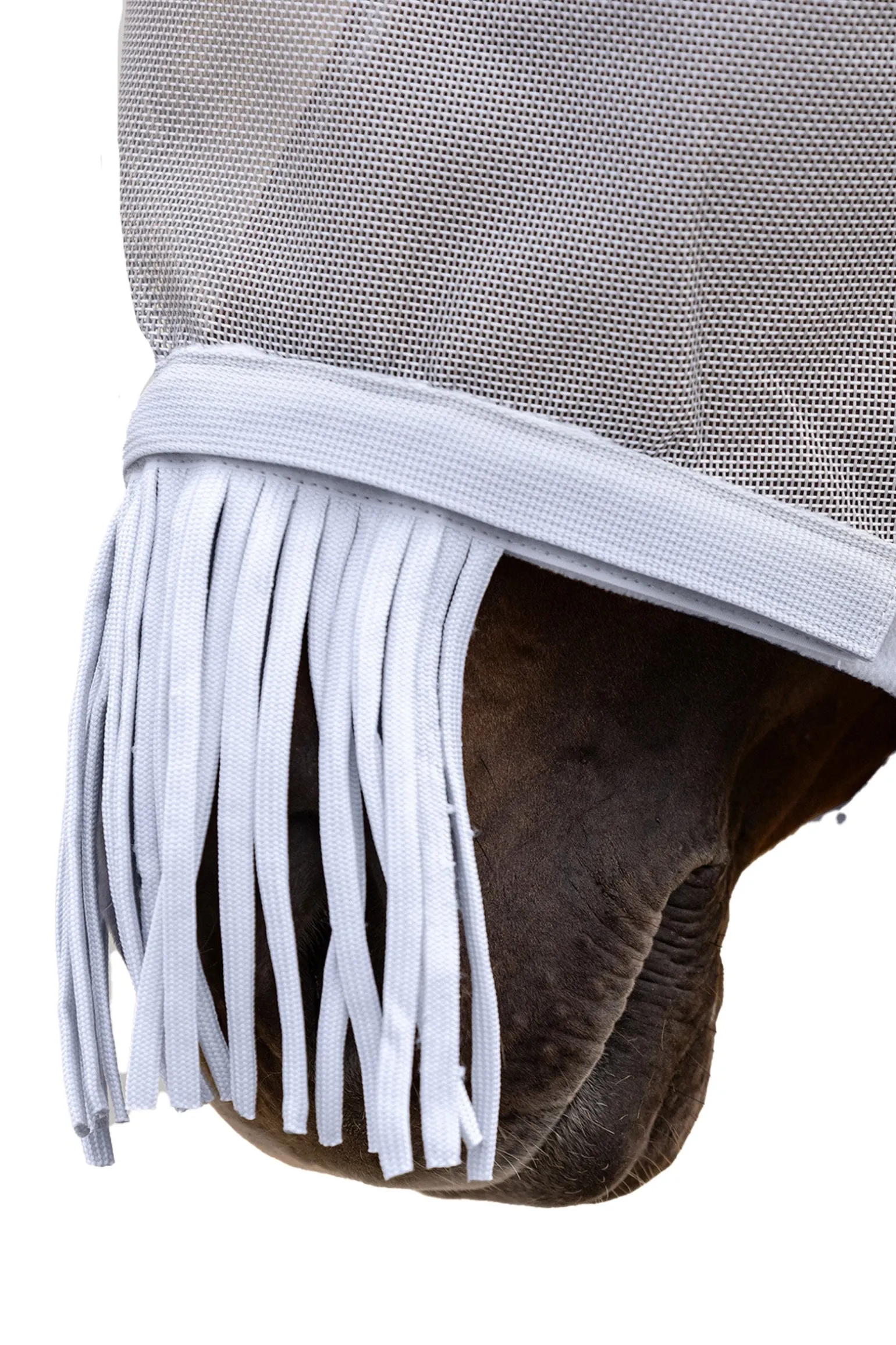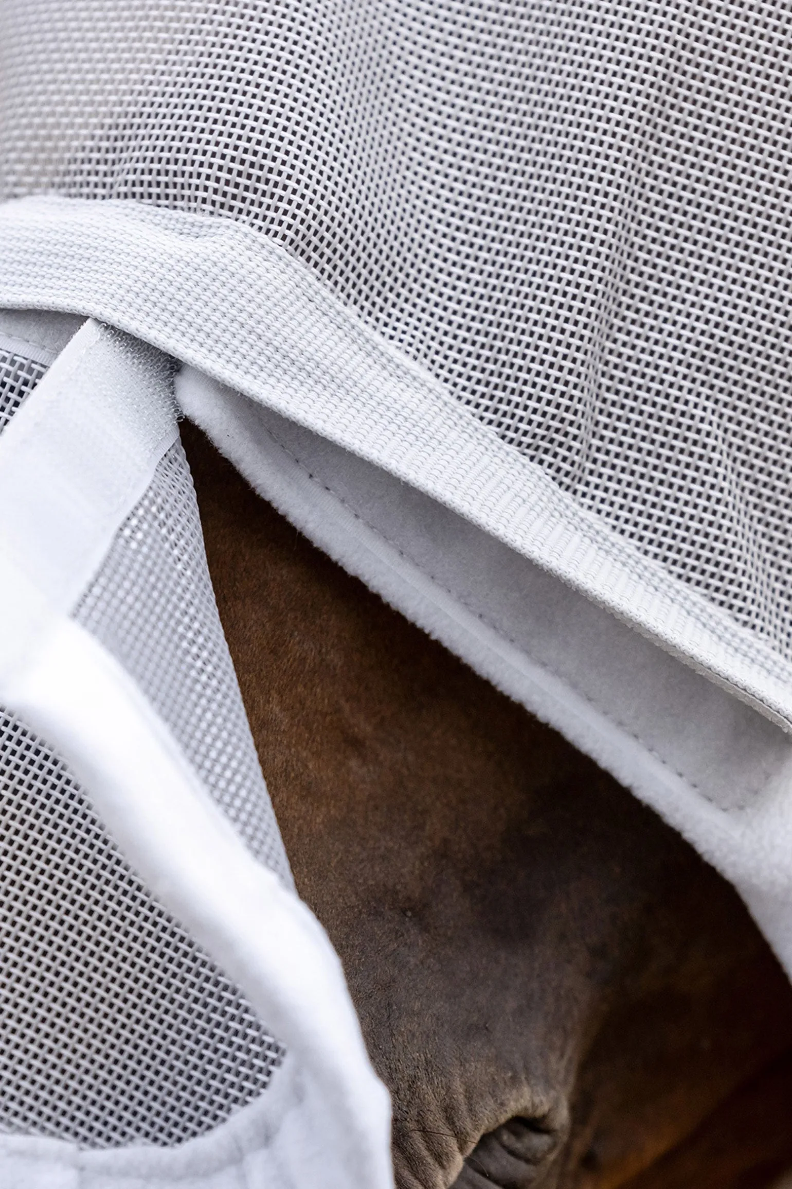 Der ideale Schutz vor lästigen Insekten. Optimale Passform durch Elastikeinsätze und Klettverschluss. Mit flexiblem, abstandshaltendem Ring für mehr Freiraum um die Augen. Die Ohren sind aus einem luftdurchlässigen Meshgewebe. Mithilfe eines Klettverschlusses, kann der Nüsternschutz einfach abgemacht werden.