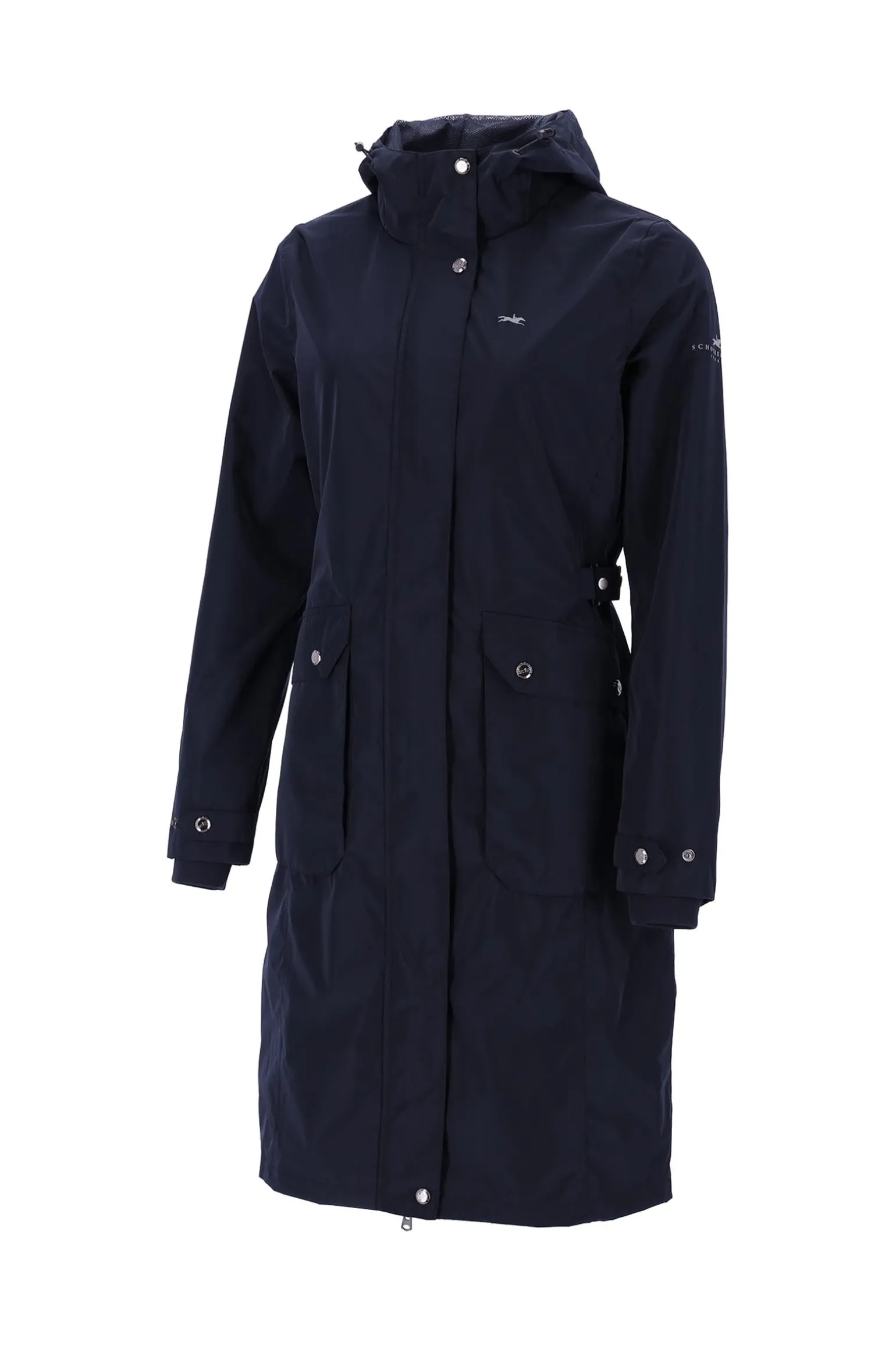 Entdecke den SPKarla Regenmantel – deine perfekte Begleitung für regnerische Tage! Dieser funktionale Regenmantel hält dich dank seiner wasserdichten Beschichtung (5000 mm Wassersäule) und getapten Nähten selbst bei starkem Regen trocken. Mit einer Atmungsaktivität von 5000 g/m²/24 Std bietet er dabei hervorragenden Tragekomfort. Die weitenverstellbare Taille lässt sich individuell anpassen, während die großen aufgesetzten Taschen mit Patten nicht nur stylisch, sondern auch praktisch sind. Ein verdeckter 2-Wege-Reißverschluss schützt dich zusätzlich vor Wind und Wetter, und der lange Reißverschluss auf der Rückseite sorgt für optimale Bewegungsfreiheit. Der verstellbare Ärmelsaum mit Jersey-Manschette sowie die reflektierenden Logos an Brust, Ärmel und Kapuze verleihen dem Mantel einen sportlichen Look und dich bei Dunkelheit besser sichtbar.
