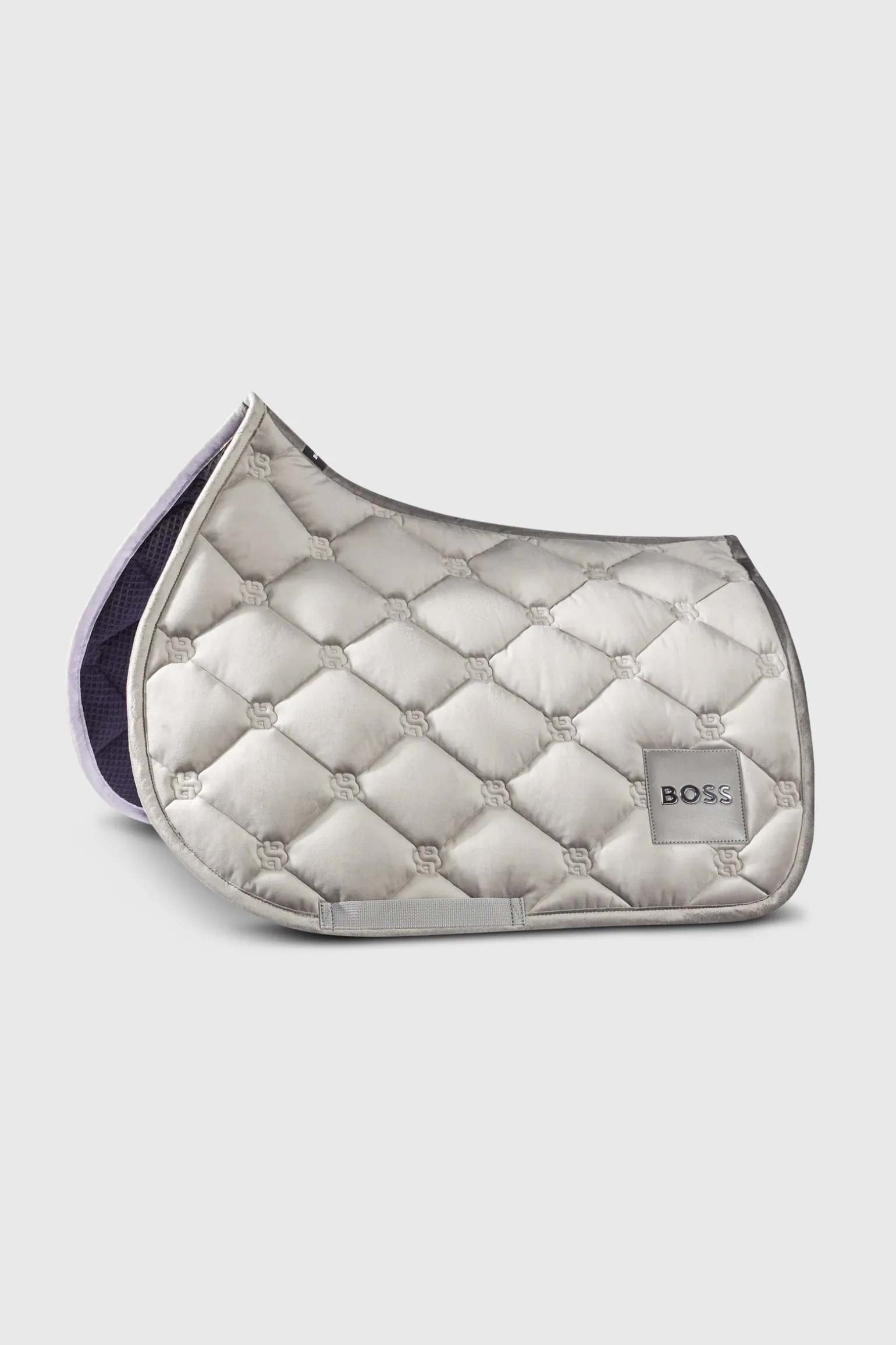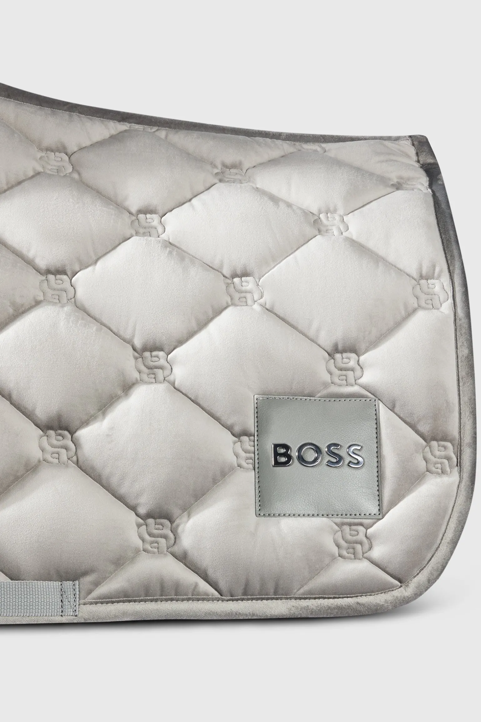 Qualitativ hochwertige Samt Springschrabracke mit extra dicker Steppung und Füllung. BOSS-Logo-Stickerei in der Steppung, Schnitt mit hohem Baum, Schulterfreiheit für optimale Sattellage, kein Verrutschen. Innen mit natürlicher Hightech-Faserfüllung, die Feuchtigkeit optimal ableitet. Großer BOSS Logo Kunstleder-Aufnäher.