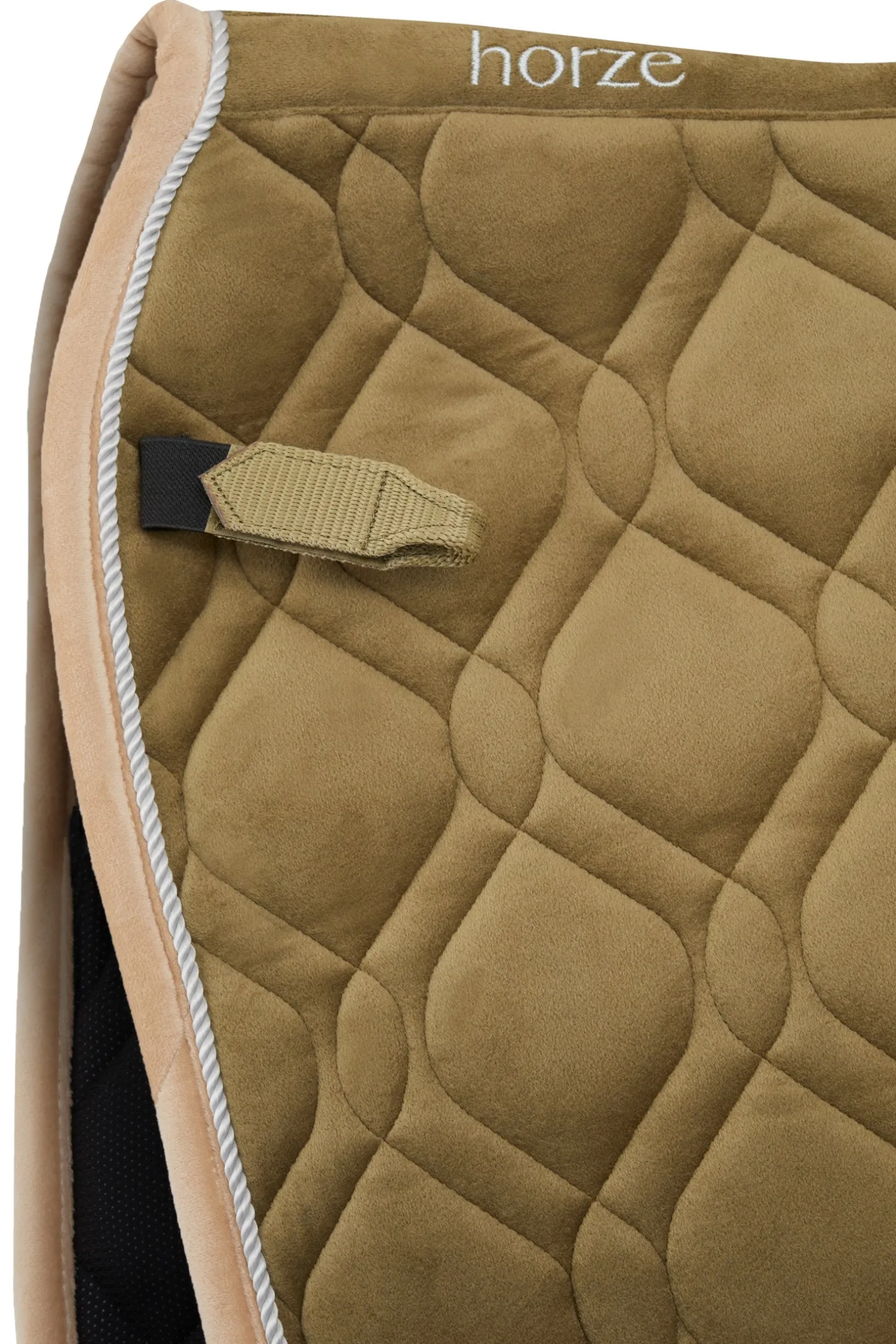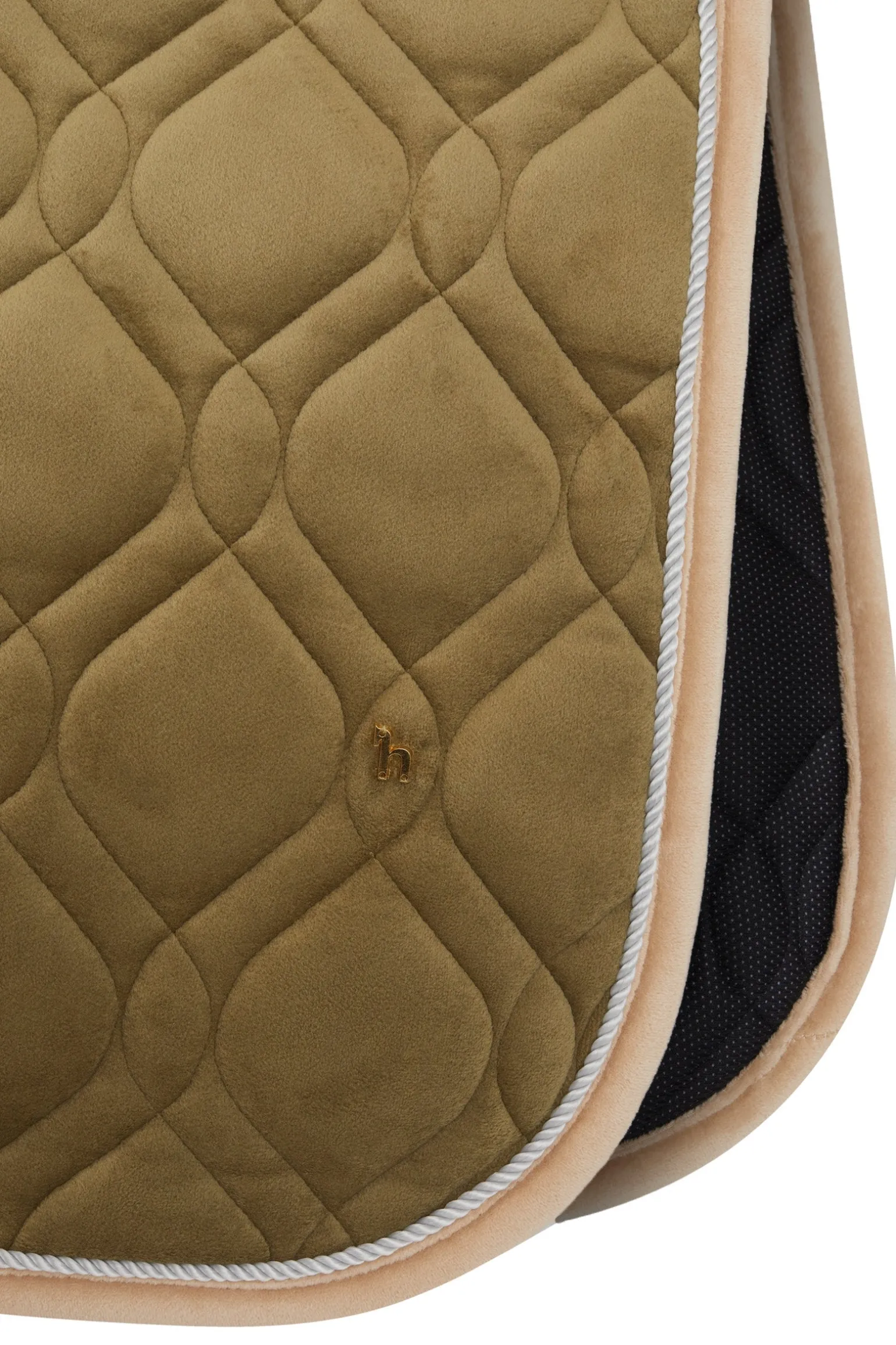 Diese Schabracke ist mit einem neuen Steppmuster versehen, das deinem Reitsport-Equipment einen Hauch von Eleganz verleiht. Das Coolmax-Futter sorgt für hervorragende feuchtigkeitsableitende Eigenschaften und hält dein Pferd auch bei intensiven Ritten trocken und komfortabel. Der Samtstoff sorgt nicht nur für eine ansprechende Optik, sondern verringert auch das Verrutschen des Sattels und bietet einen sicheren Sitz. Ausgestattet mit einer D-Ring-Befestigung und einer verstellbaren Gurtschlaufe, bietet diese Schabracke Komfort und Stabilität. Die Stickerei entalng der Wirbelsäule und das kleine goldene „h“ machen die Schabracke zu einem echten Unikat.