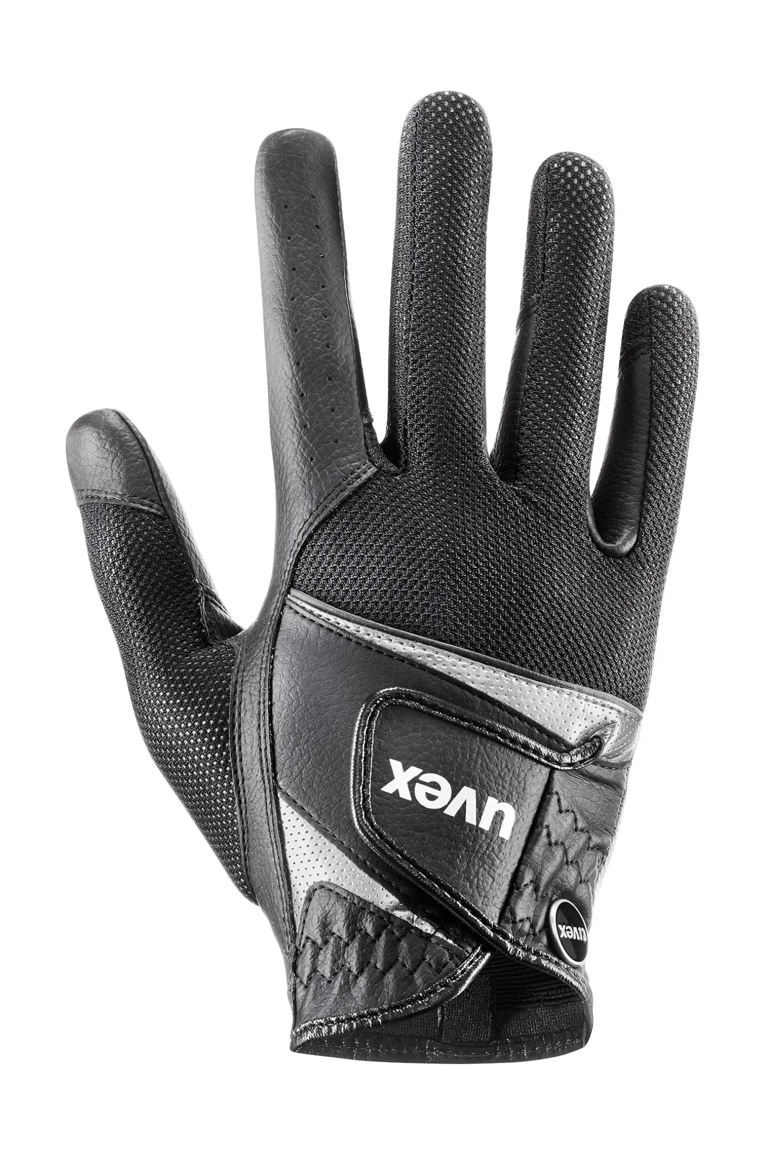 Feuchtigkeit, rutschige Zügel, hohe Intensität bei Ross und Reiter – genau dafür sind die uvex sumair Handschuhe gemacht. Der hochabriebfeste Innenhandbereich besteht aus rutschfestem und besonders haltbarem PU-Material für maximalen Grip bei feinem Zügelgefühl. Das atmungsaktive Mesh-Material auf der Rückhand und am Daumen transportiert Feuchtigkeit schnell nach außen und sorgt so für eine optimale Belüftung. Die Komposition aus hochfunktionalen Materialien lässt gleichzeitig einen einzigartigen Look entstehen: Glänzendes Kunstleder, PU und Mesh geben dem Handschuh in allen Farbvarianten einen hohen Stylefaktor. Schwarze Lackdetails und eine cleane, sportliche Linienführung machen ihn zur Stilikone. Mit seinem kurzen Schnitt ist der uvex sumair auch bei hohen Temperaturen der ideale Handschuh für eine stylishe Perfomance im Sattel.