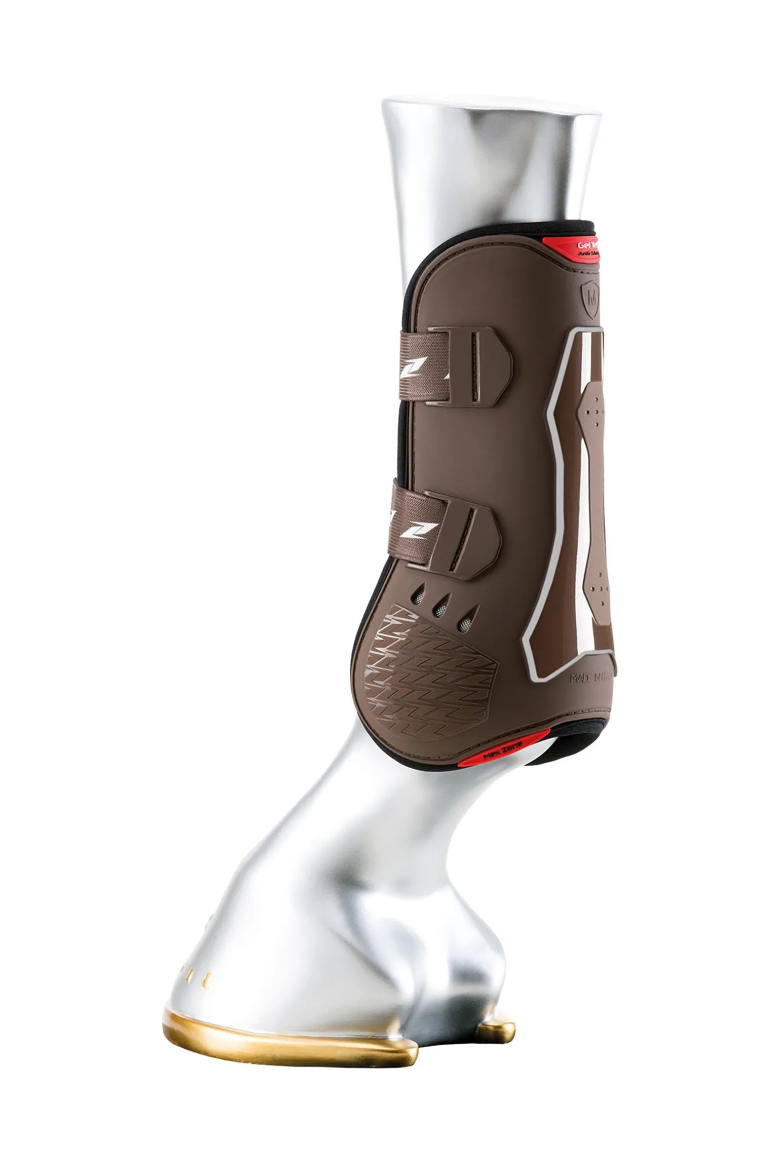 Die in Italien hergestellten Gamaschen „SUPERIOR Tendon“ wurden speziell entwickelt, um bei Springpferden Ergüsse und Prellungen im Fesselbereich der Vorhand und am Röhrbein zu vermeiden und die Sehnen zuverlässig zu schützen. Sie setzen sich zusammen aus äußeren TPU-Schichten mit unterschiedlichen Stärken und sind atmungsaktiv dank des perforierten Neoprengewebes. Zudem werden sie durch 6 Luftöffnungen, die über der Fessel angeordnet sind, belüftet. Gel-Tech befindet sich an den erforderlichen Bereichen zwischen dem TPU-Gewebe und der Neopren-Schutzschicht und wirkt hier als Stoßdämpfer und bequeme Polsterung. An der Innenseite, nahe am langen Fesselknochen, wurde eine Flex-Zone eingearbeitet, die notwendig ist, um der Gliedmaße eine maximale Bewegungsfreiheit zu garantieren. Die elastischen Bänder mit Schnellverschluss-Spitze wurden so justiert, dass ein sicherer Verschluss stets gewährleistet ist. Sie sind eigens zu diesem Zweck mit einem doppelten Verschlusssystem ausgestattet (horizontal und vertikal). Die Abmessungen und die perfekte ergonomische Form wurden entwickelt, indem man die tatsächliche Struktur der Gliedmaße kopierte – dies garantiert eine perfekte Anpassung und verhindert Beanspruchungen jeglicher Art..