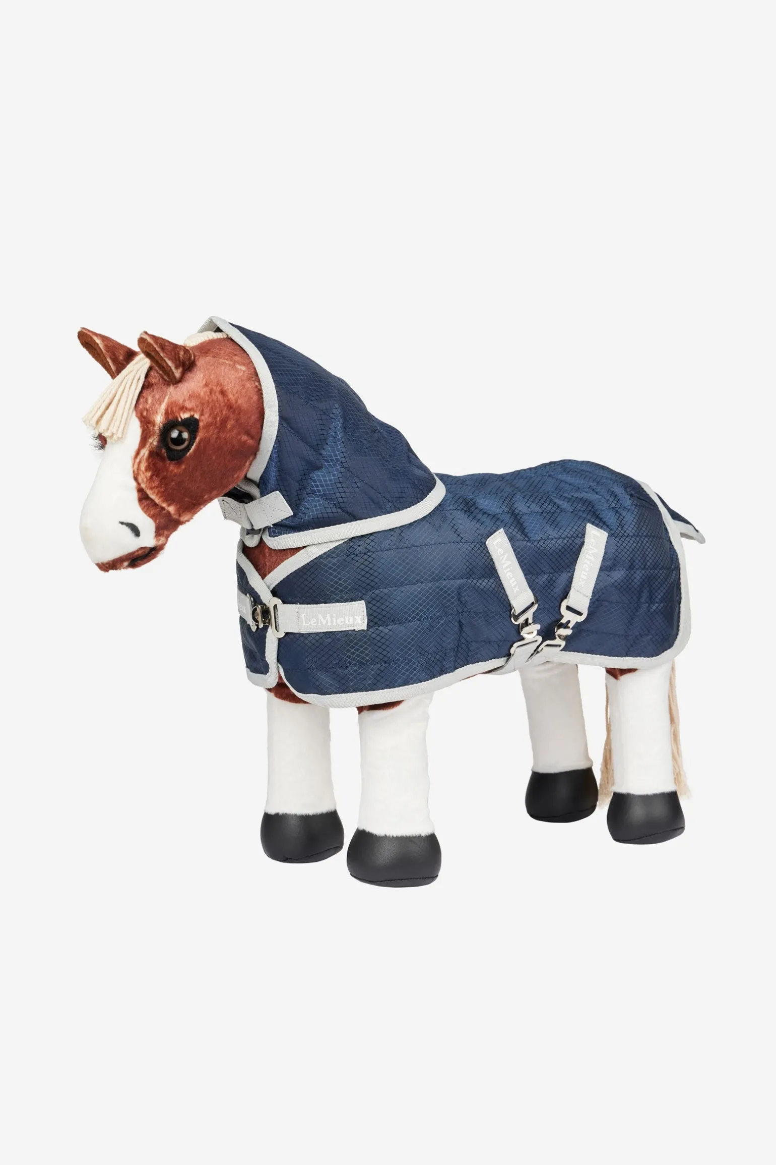 Diese süße Decke verfügt über voll funktionsfähige T-Verschlüsse und einen abnehmbaren Hals, das perfekte Outfit für dein LeMieux Toy Pony, um gemütliche Nächte im Stall zu verbringen.